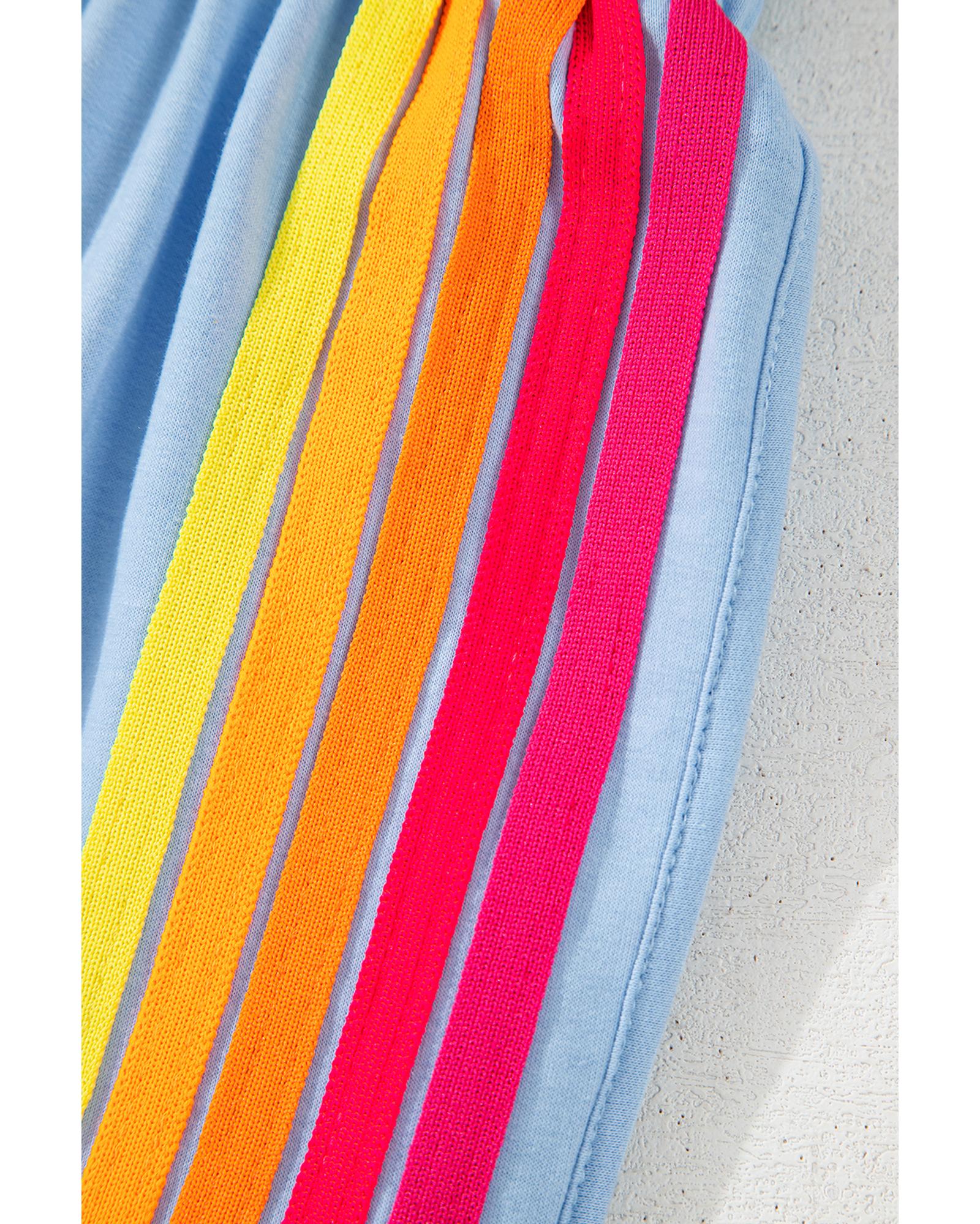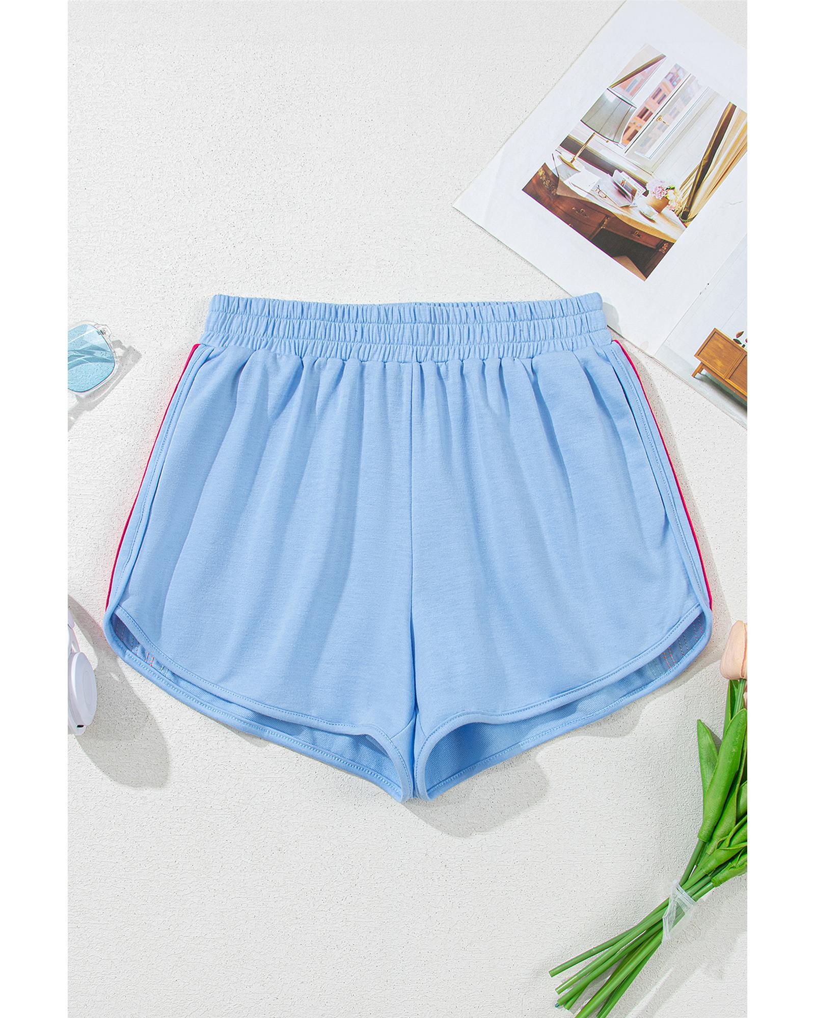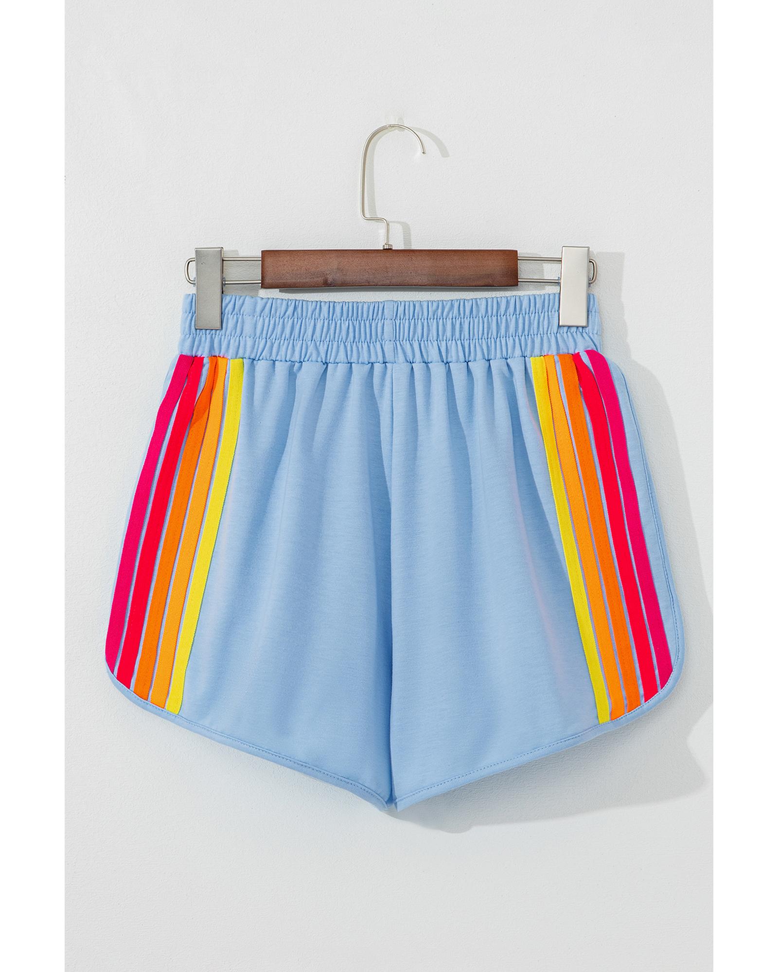 Beau Blue Color Block Stripes Elastic High Waist Active Shorts – L