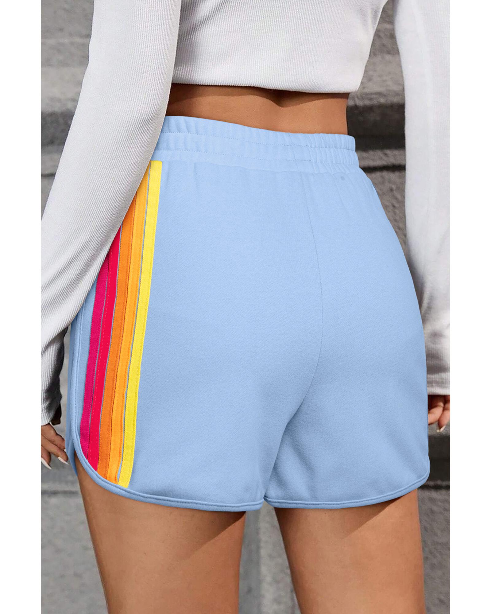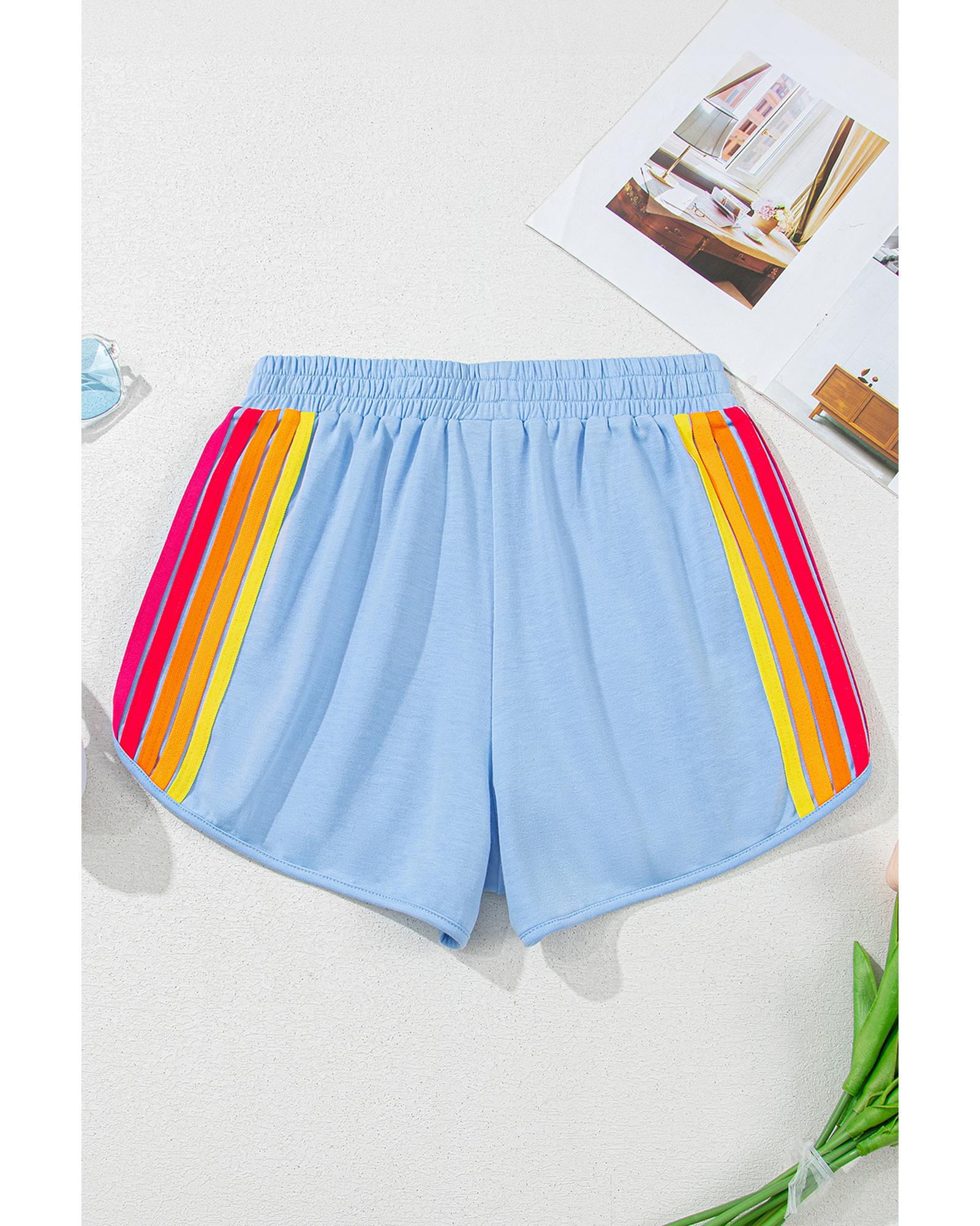 Beau Blue Color Block Stripes Elastic High Waist Active Shorts – S