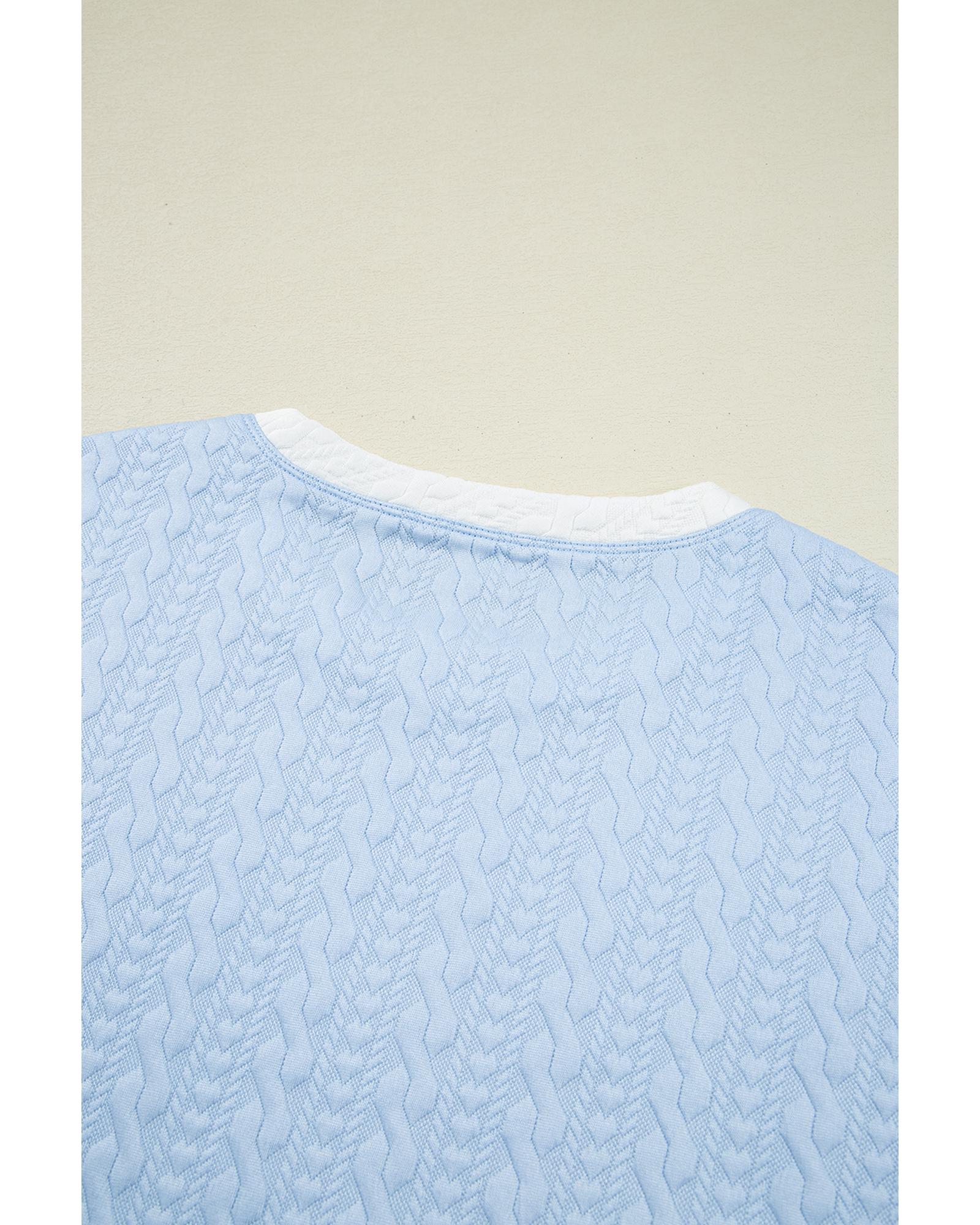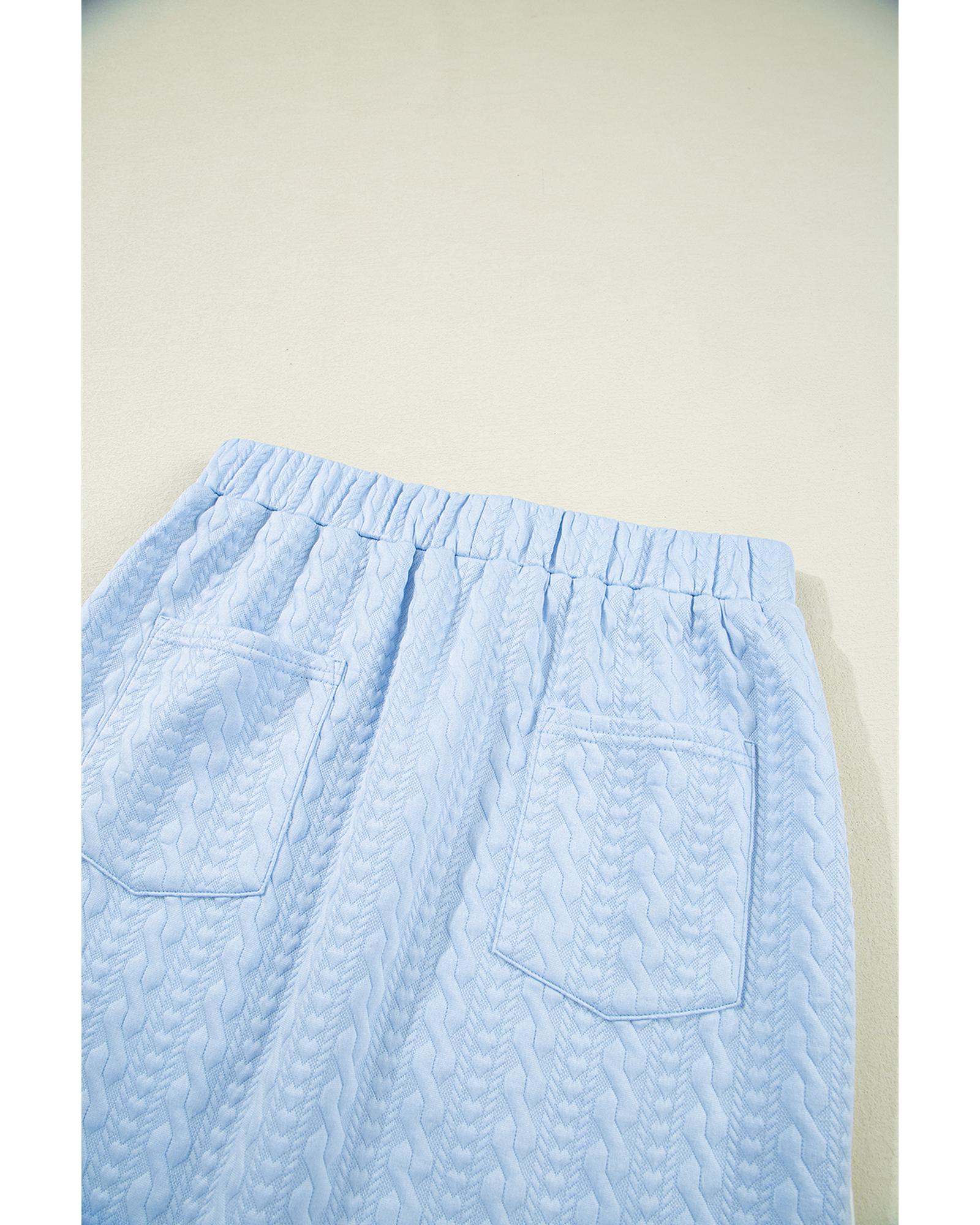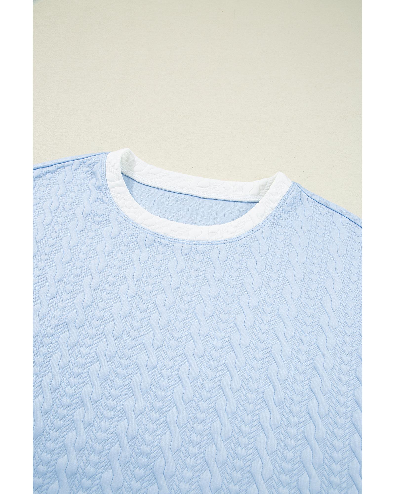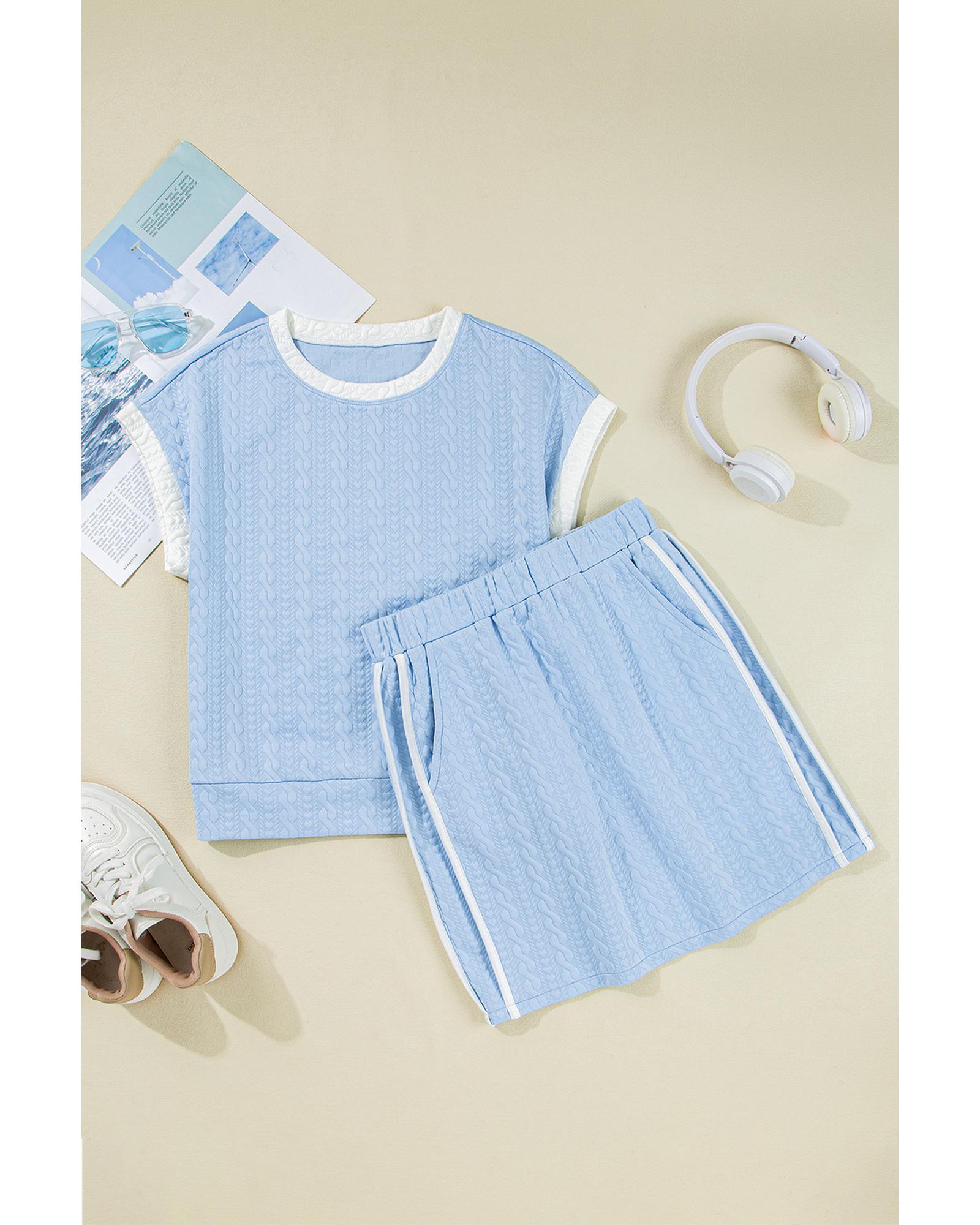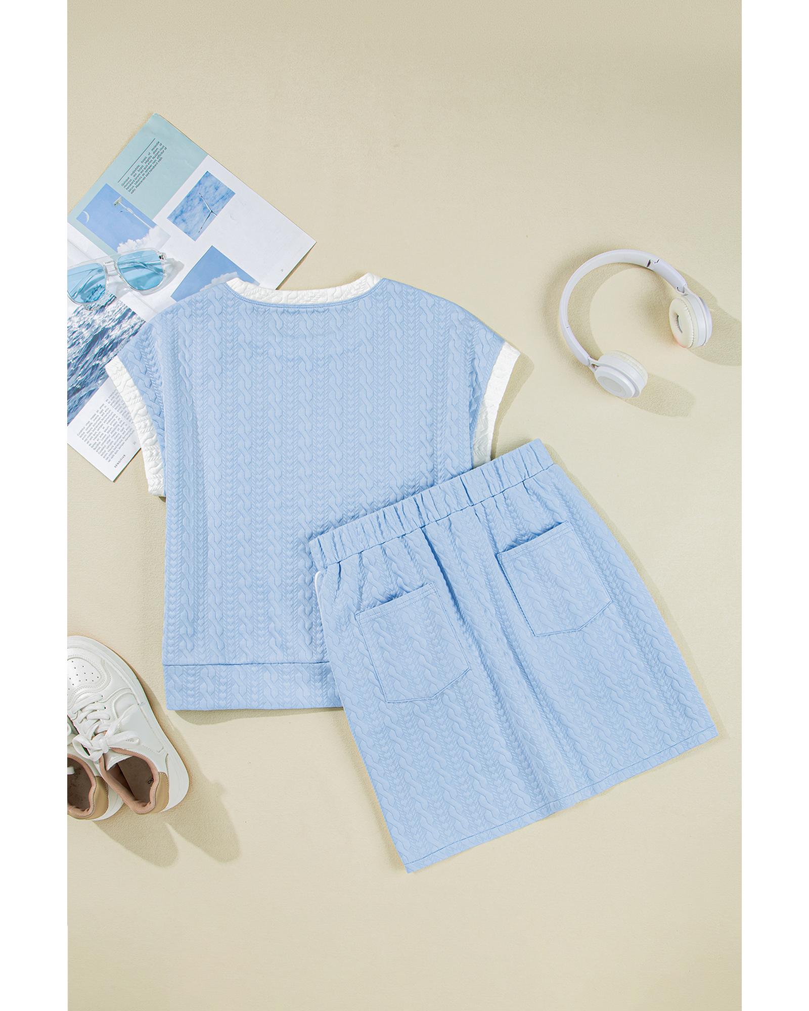 Beau Blue Contrast Trim Textured Crewneck Tee and Pocketed Skirt Set – L