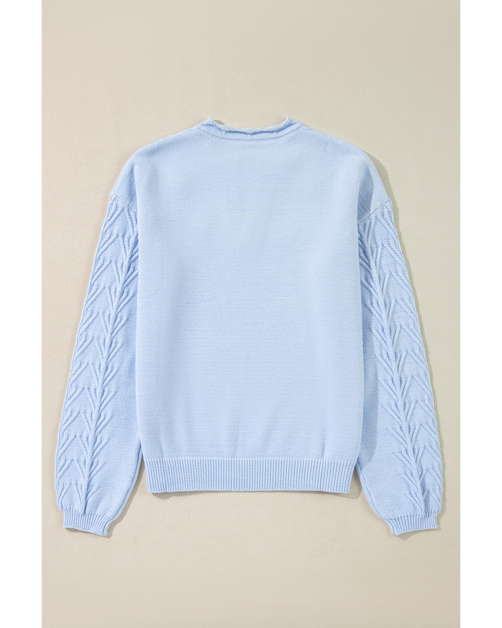 Beau Blue Flower Detail Knitted Notched Neck Sweater – S