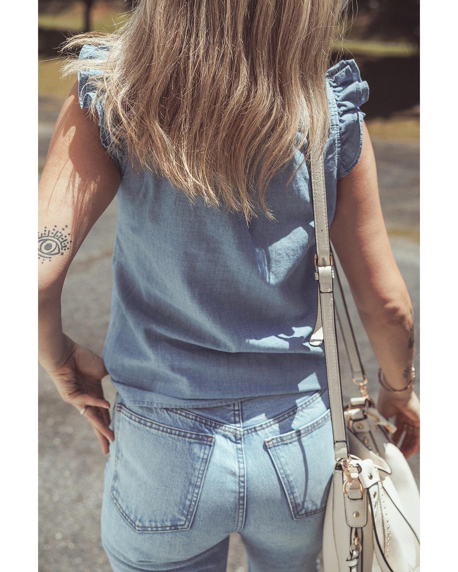 Beau Blue Frilly Ruffle Trim V Neck Chambray Tank Top – XL