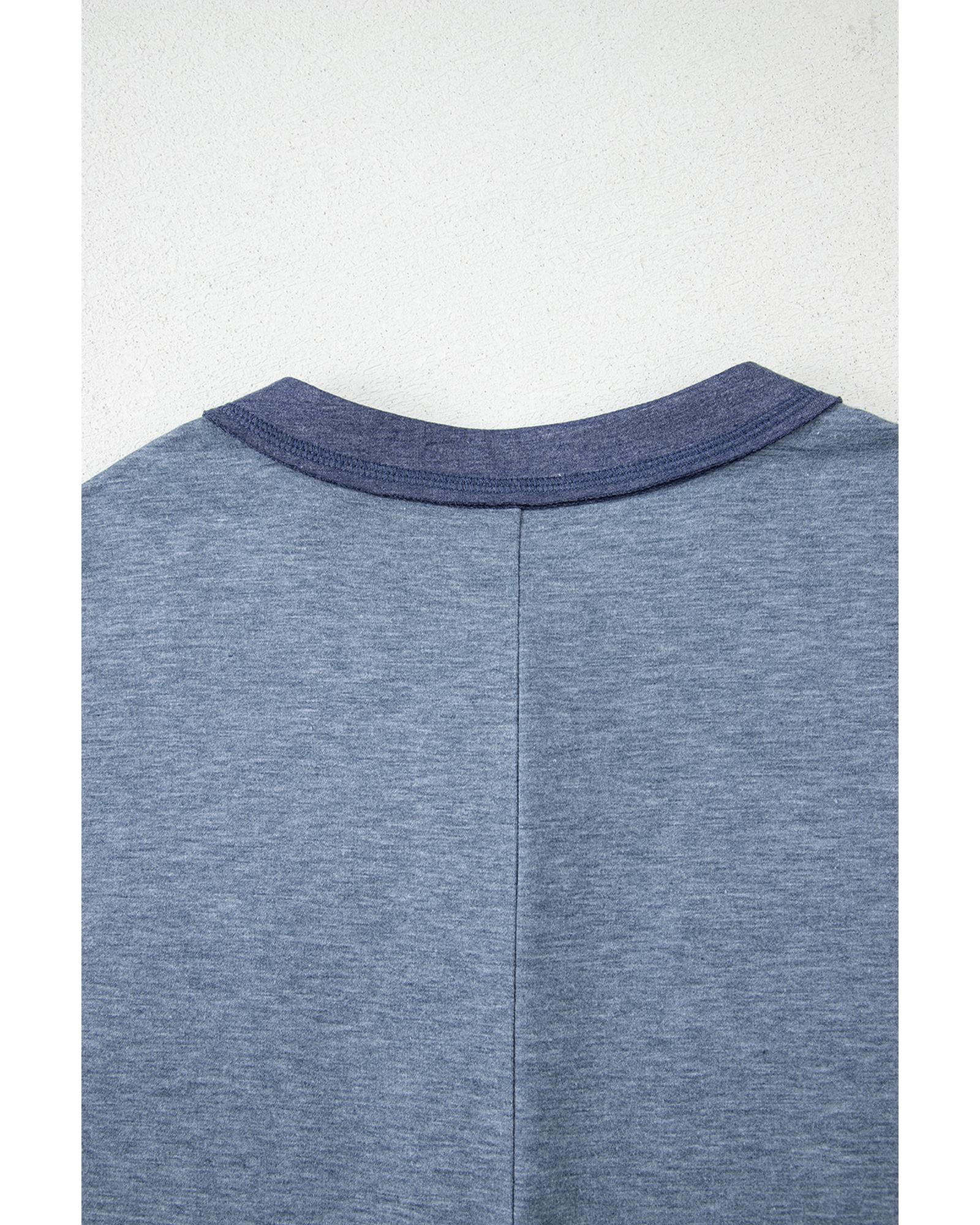 Beau Blue Half Placket Chest Pockets Short Sleeve Wide Leg Jumpsuit – XL