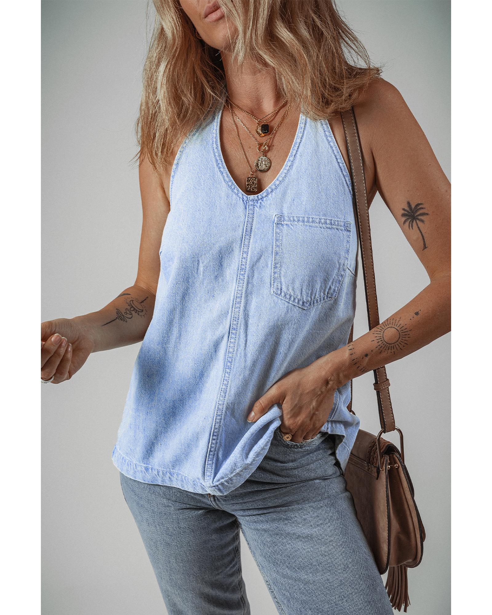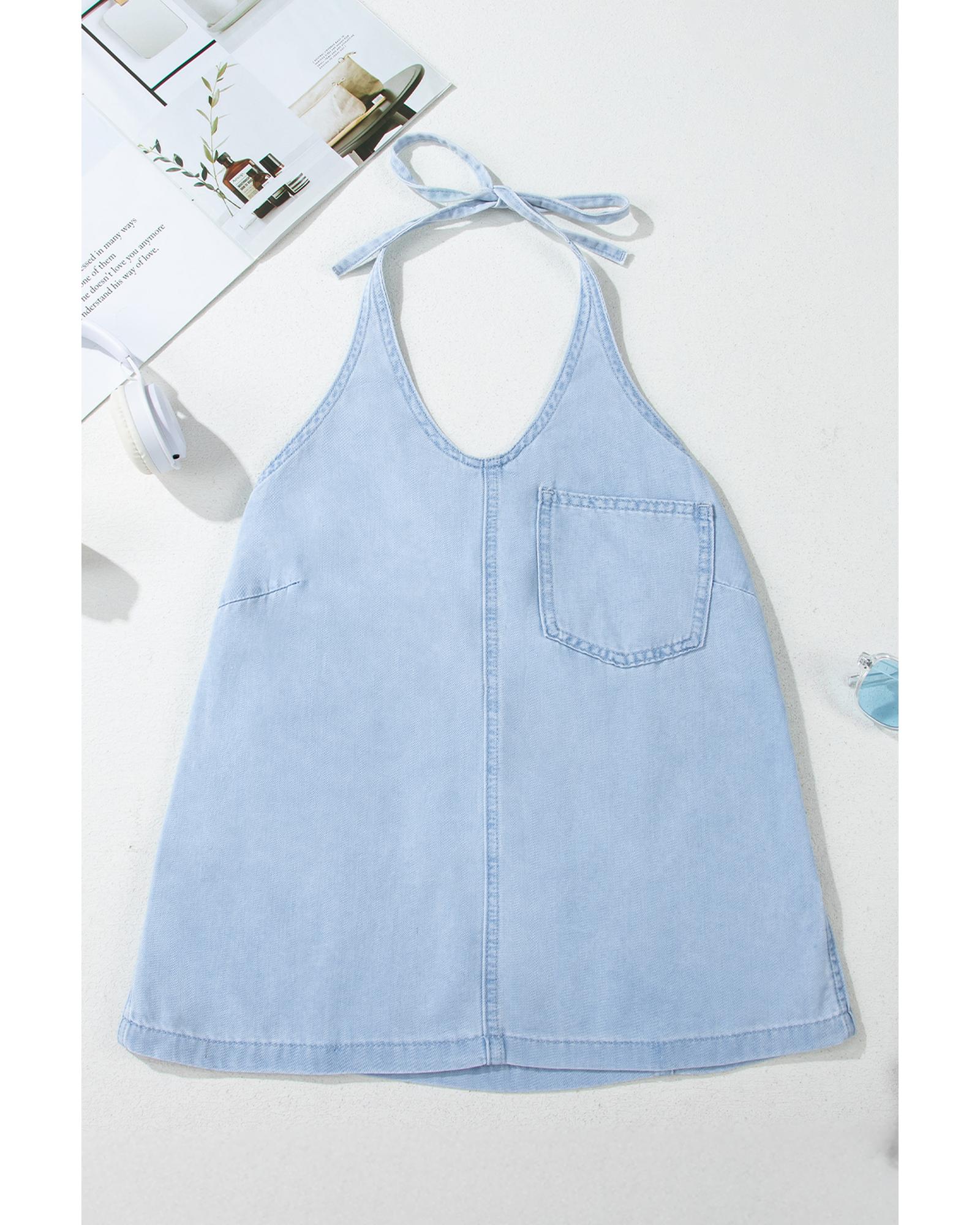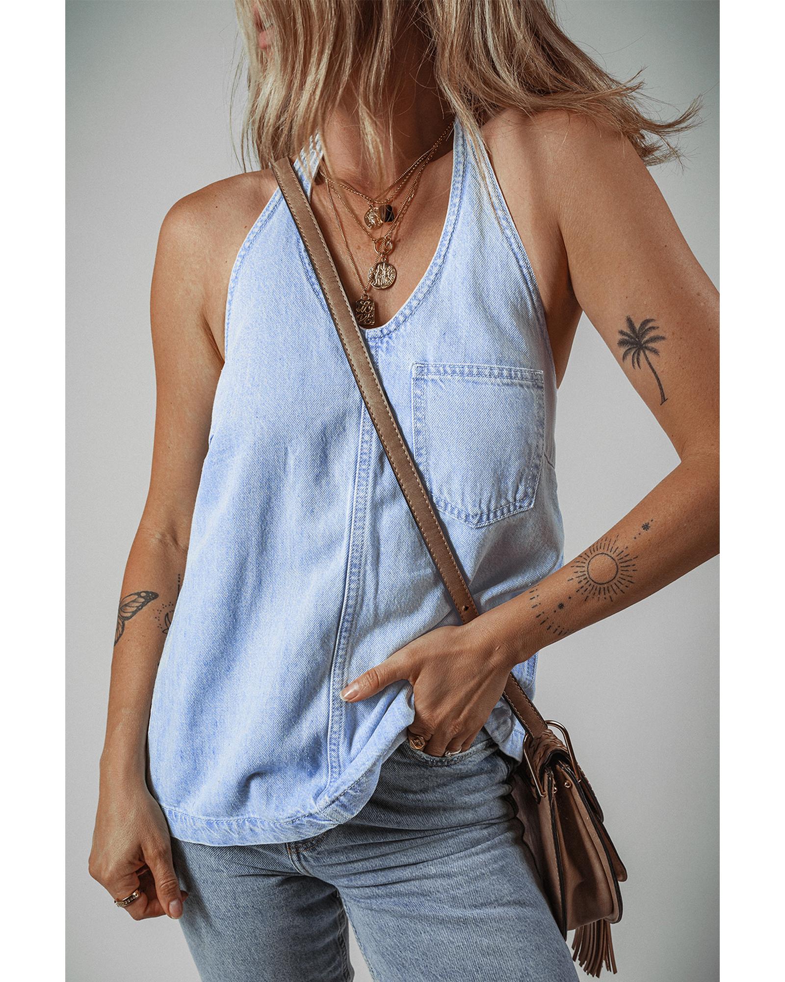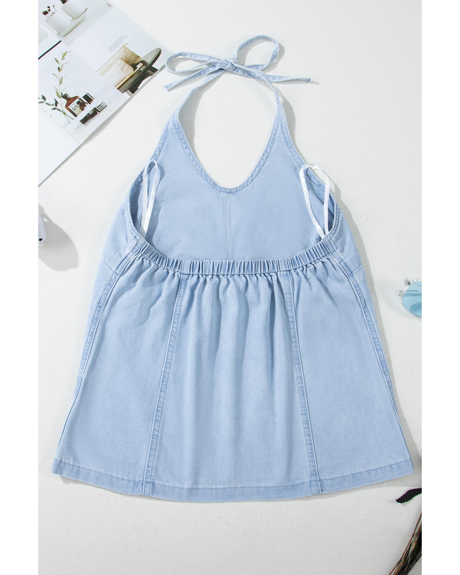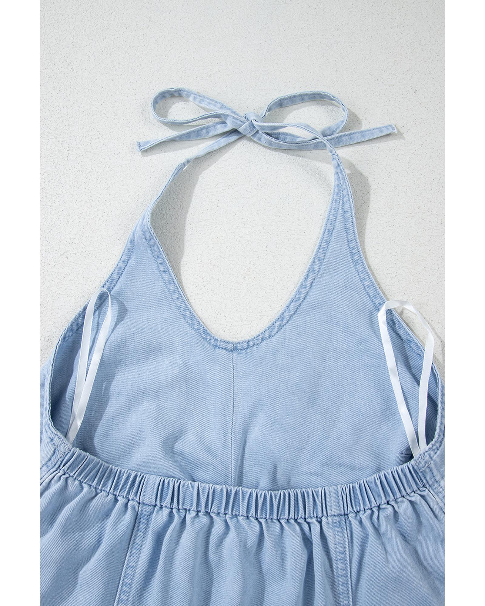 Beau Blue Knotted Open Back Halterneck Denim Tank Top – XL