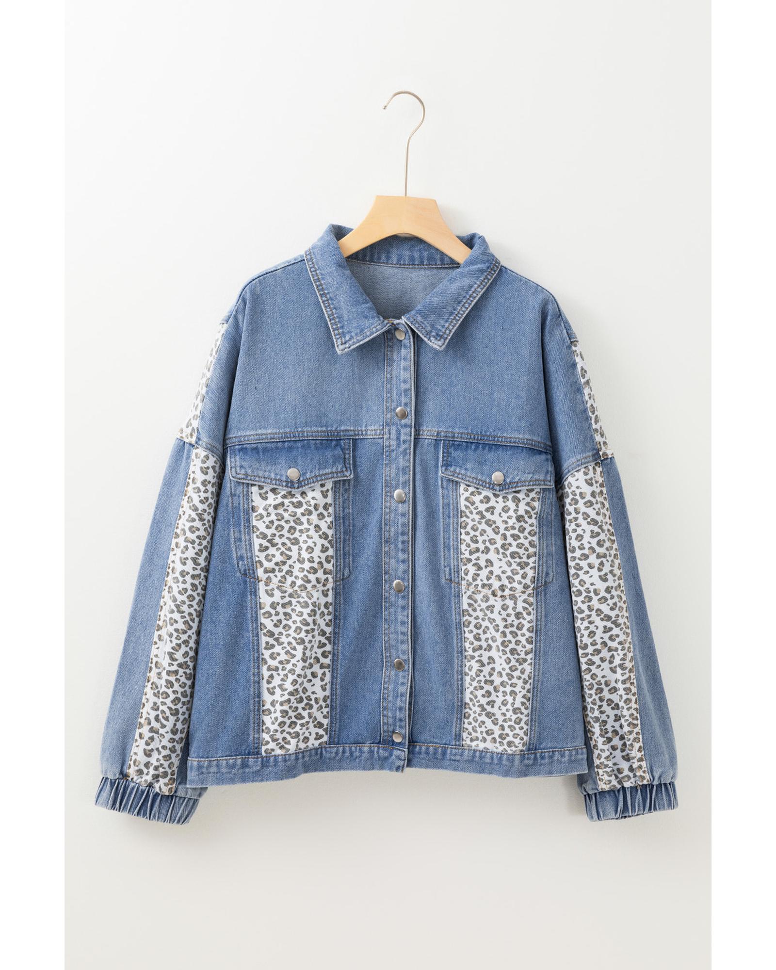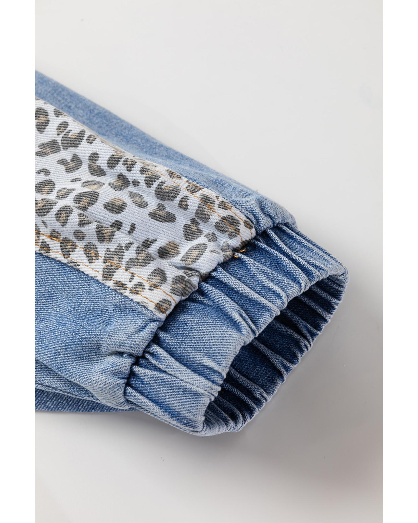 Beau Blue Leopard Patchwork Flap Detail Plus Size Denim Jacket – 4X