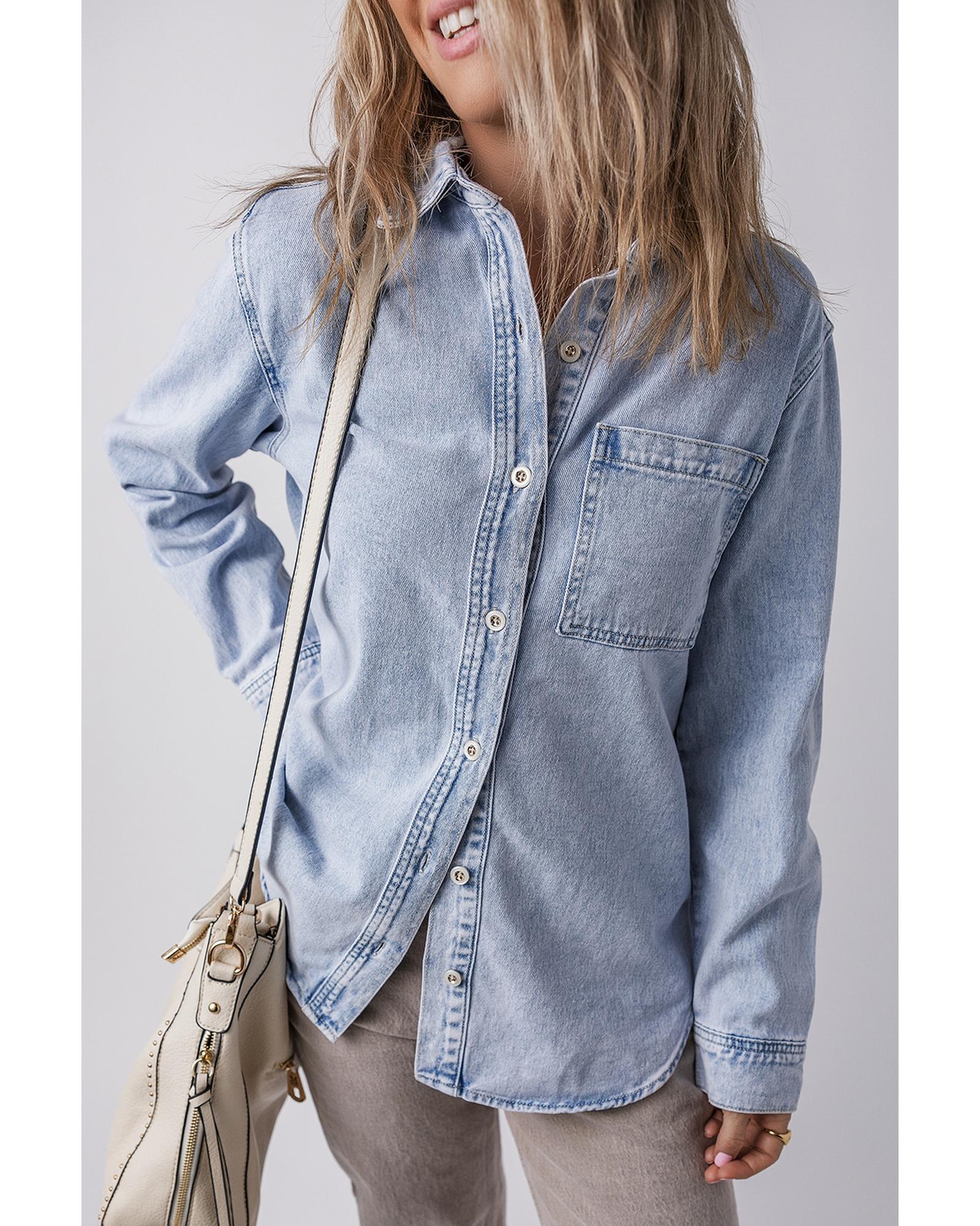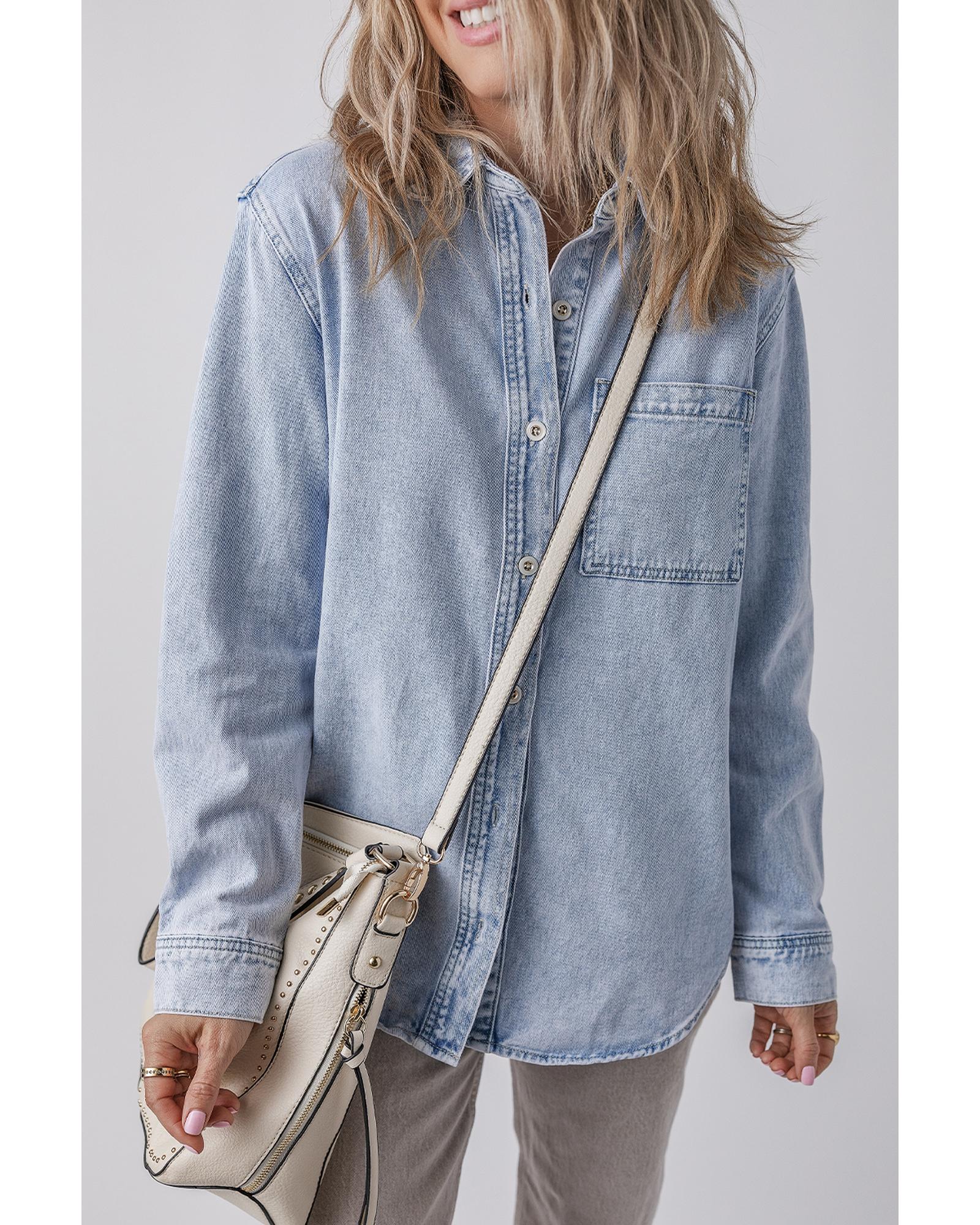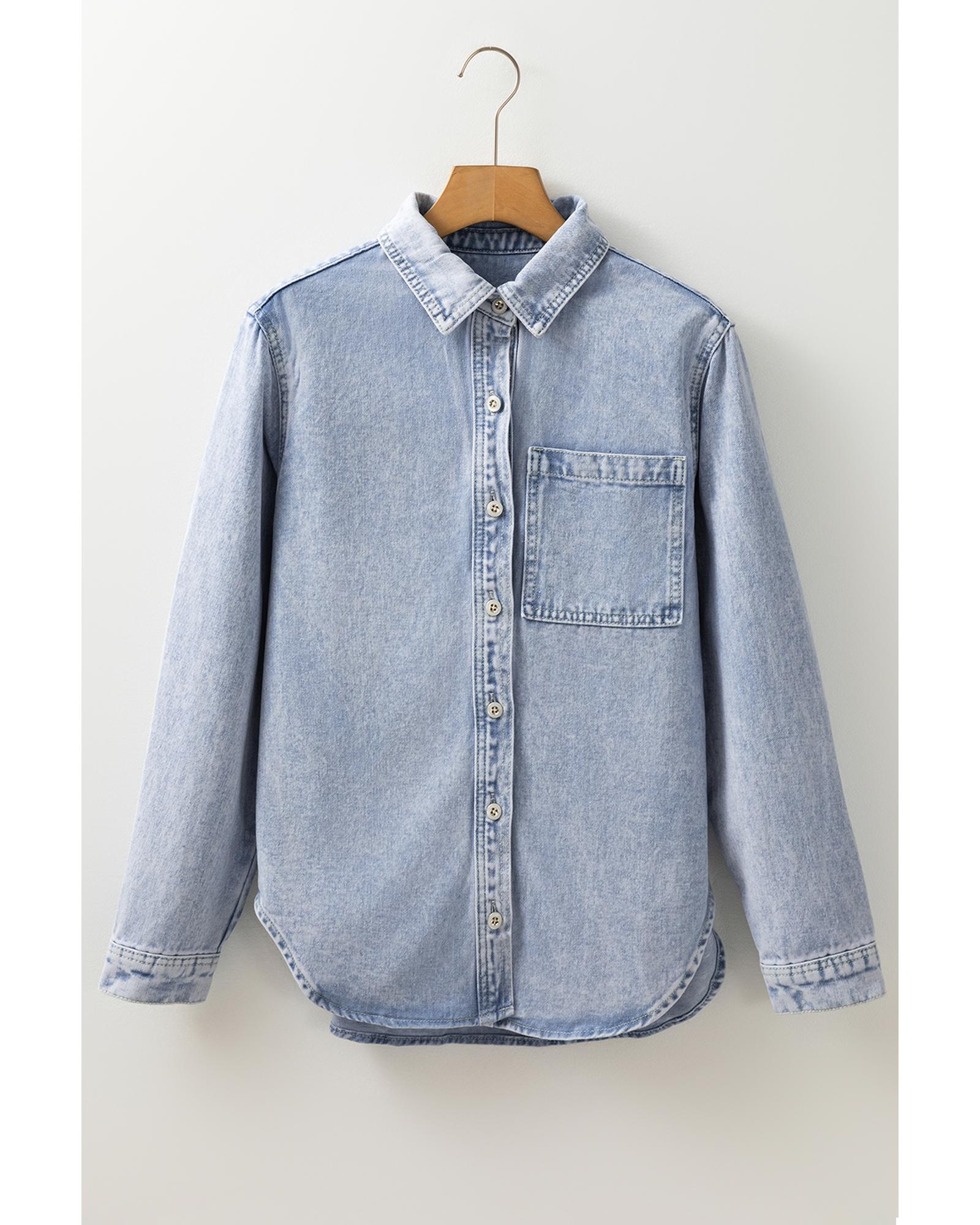 Beau Blue Long Sleeve Buttoned Chest Pocket Denim Shacket - XL Original price was: $79.99.Current price is: $43.99.