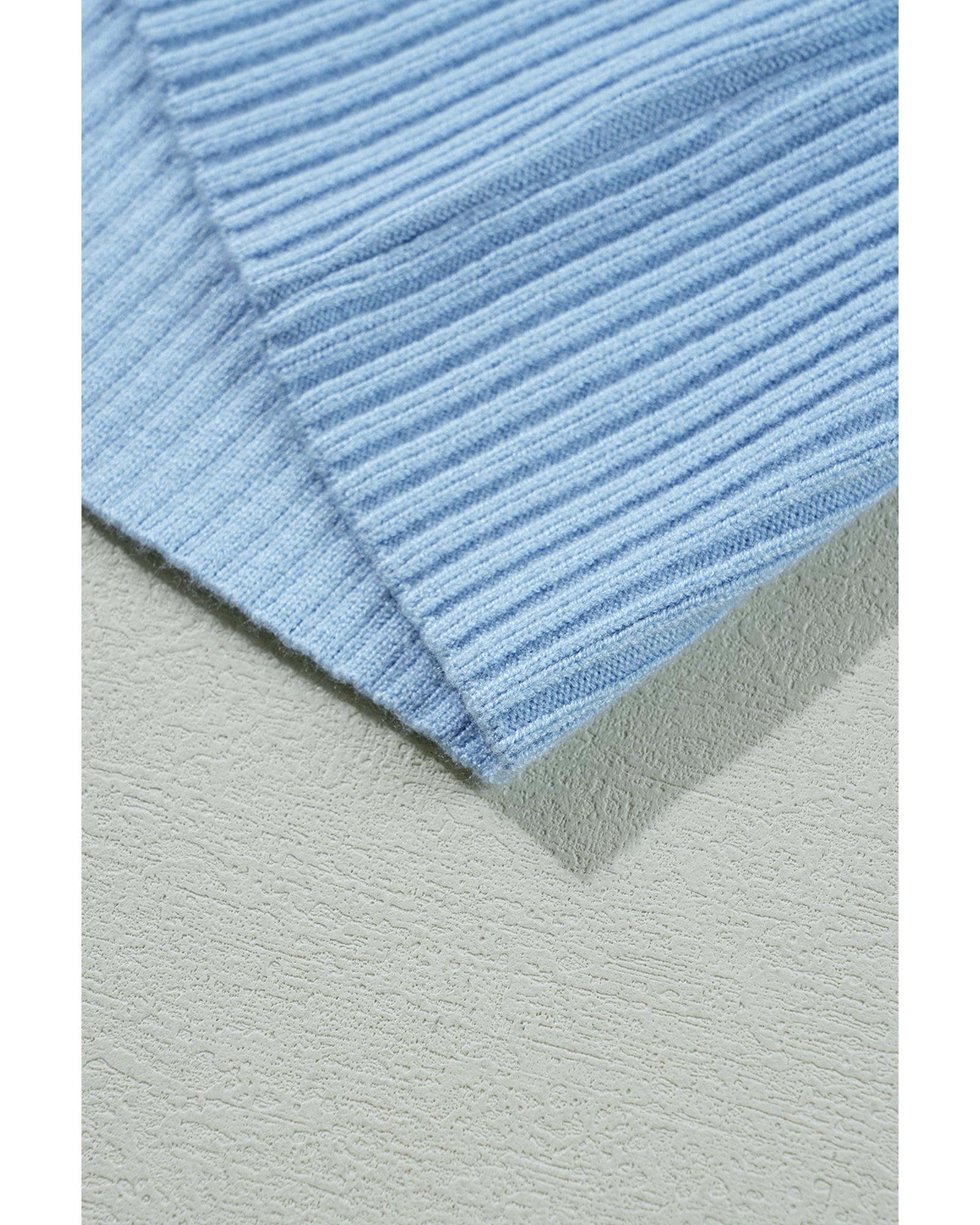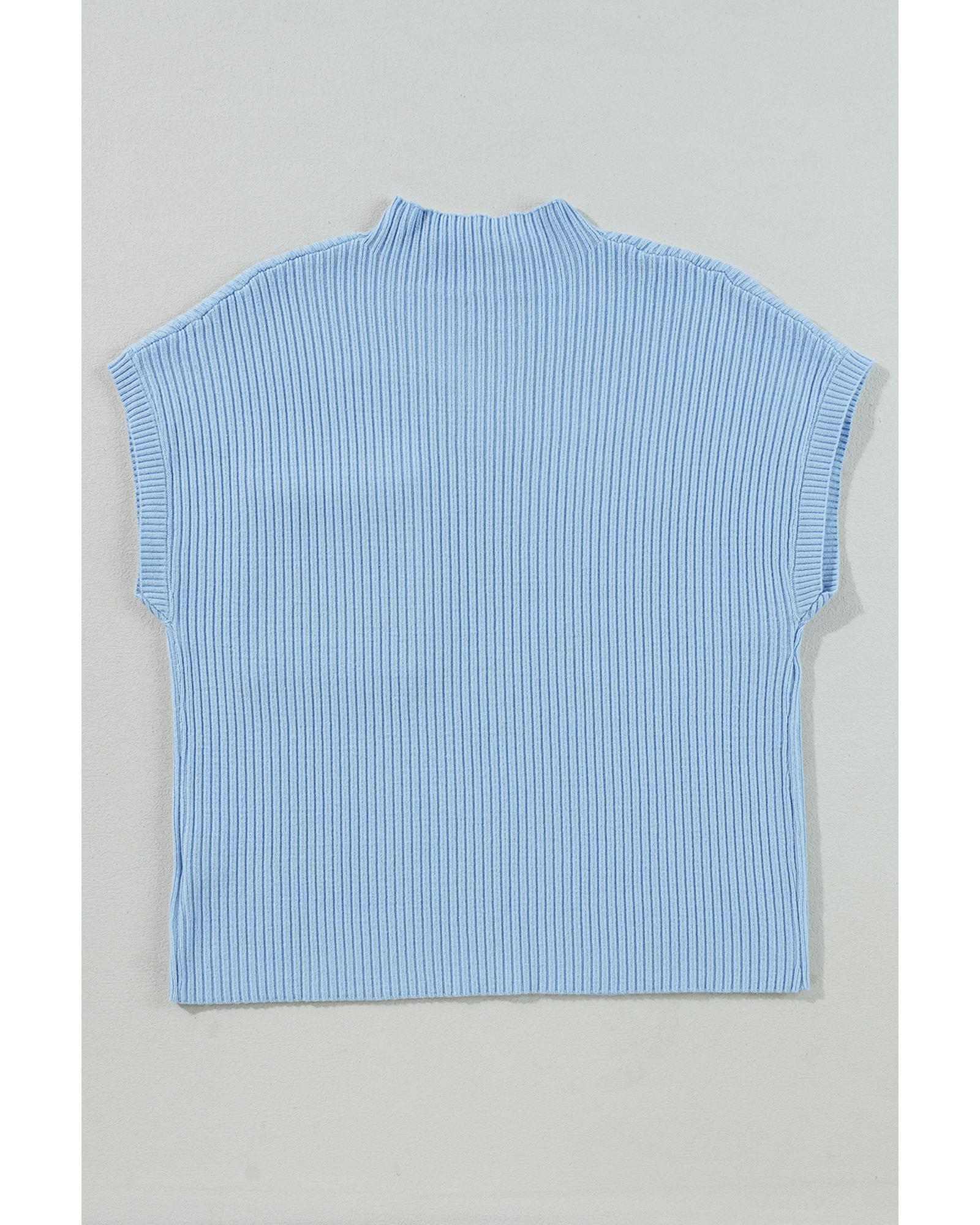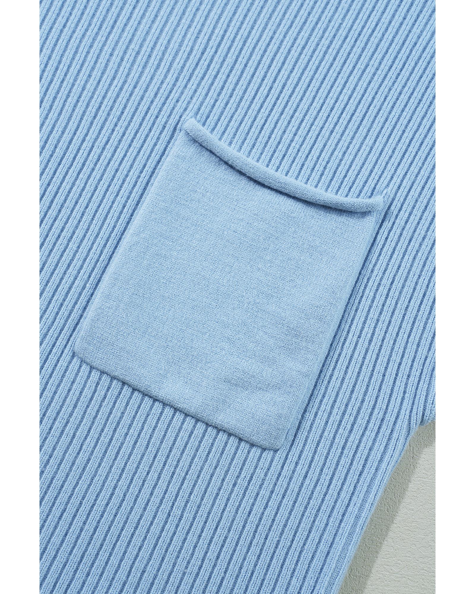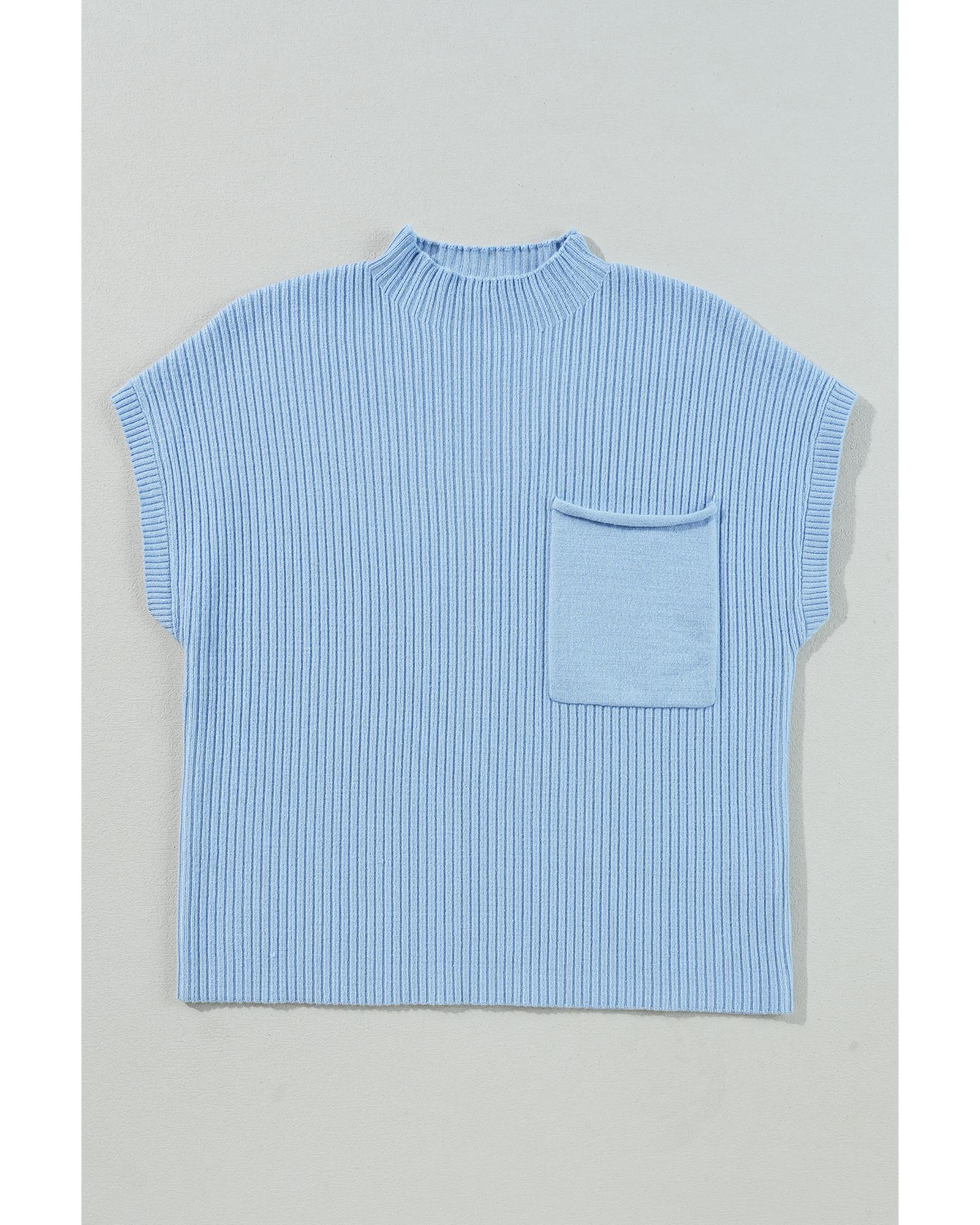 Beau Blue Patch Pocket Ribbed Knit Short Sleeve Sweater – L