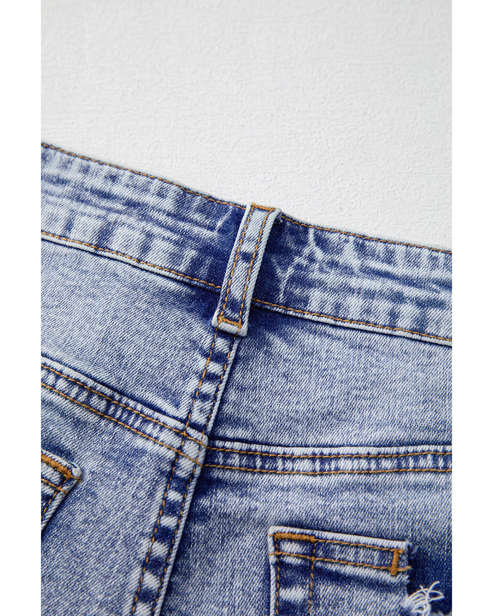 Beau Blue Pearl Studded Pockets Raw Hem Denim Shorts – 12 US