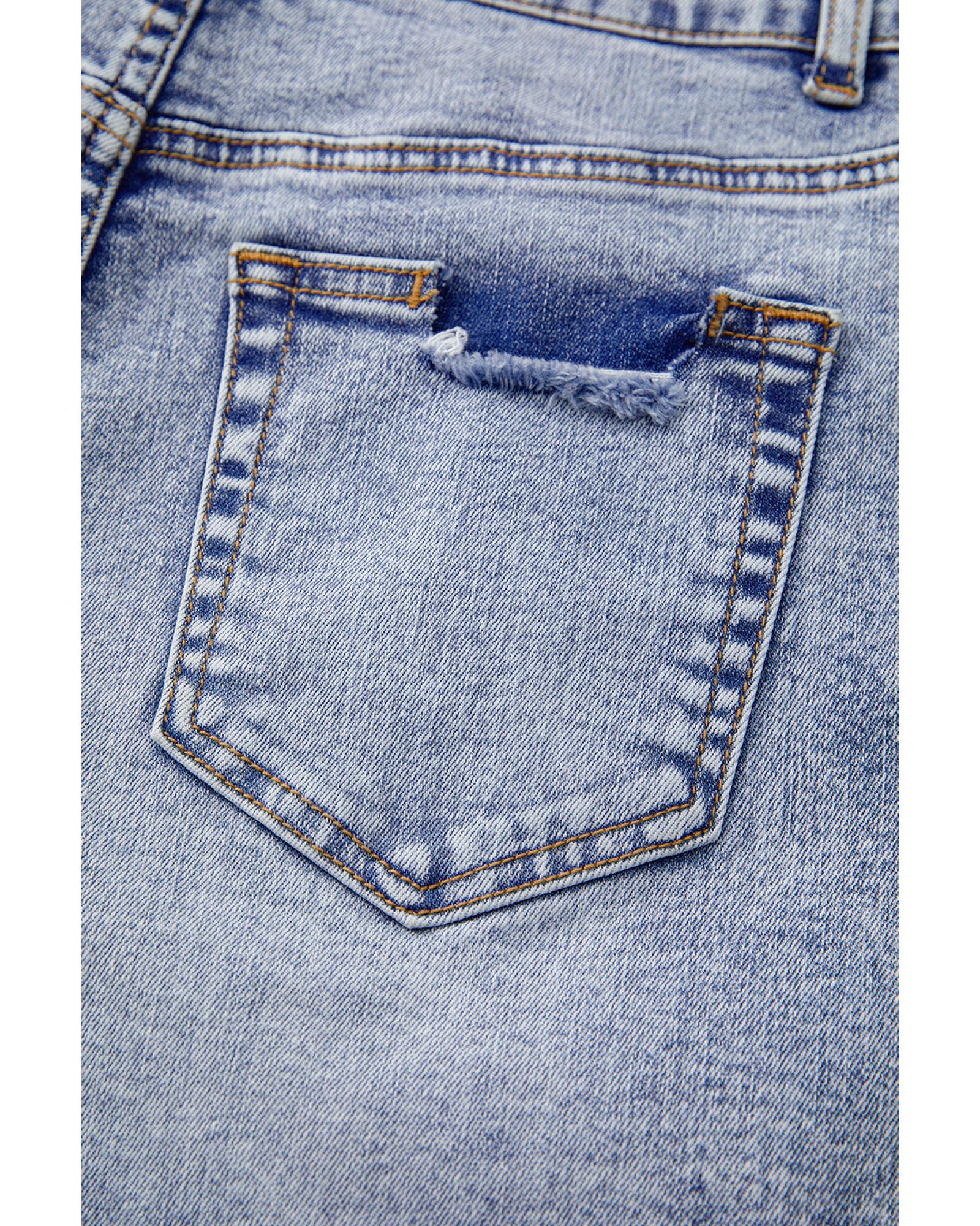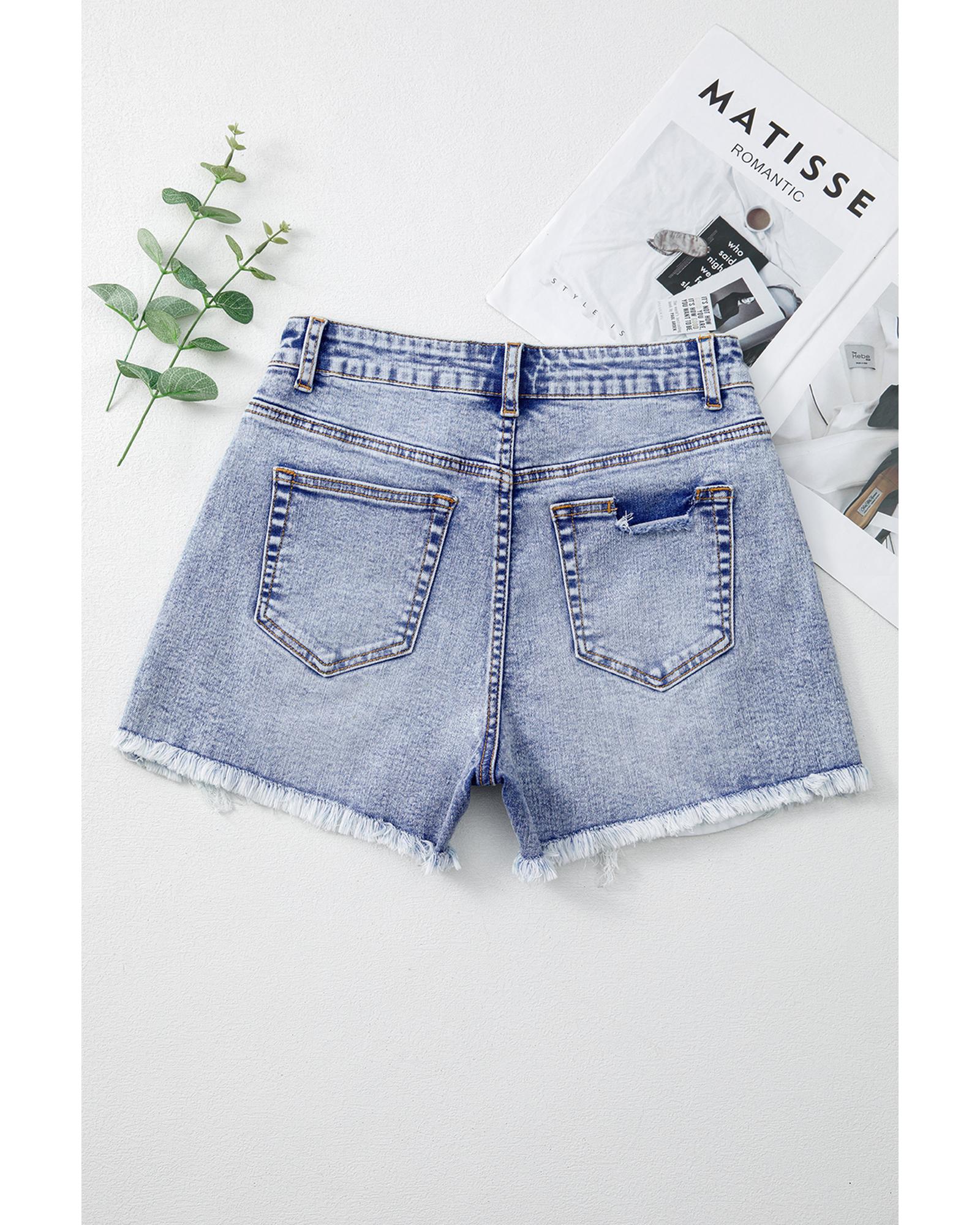 Beau Blue Pearl Studded Pockets Raw Hem Denim Shorts – 6 US