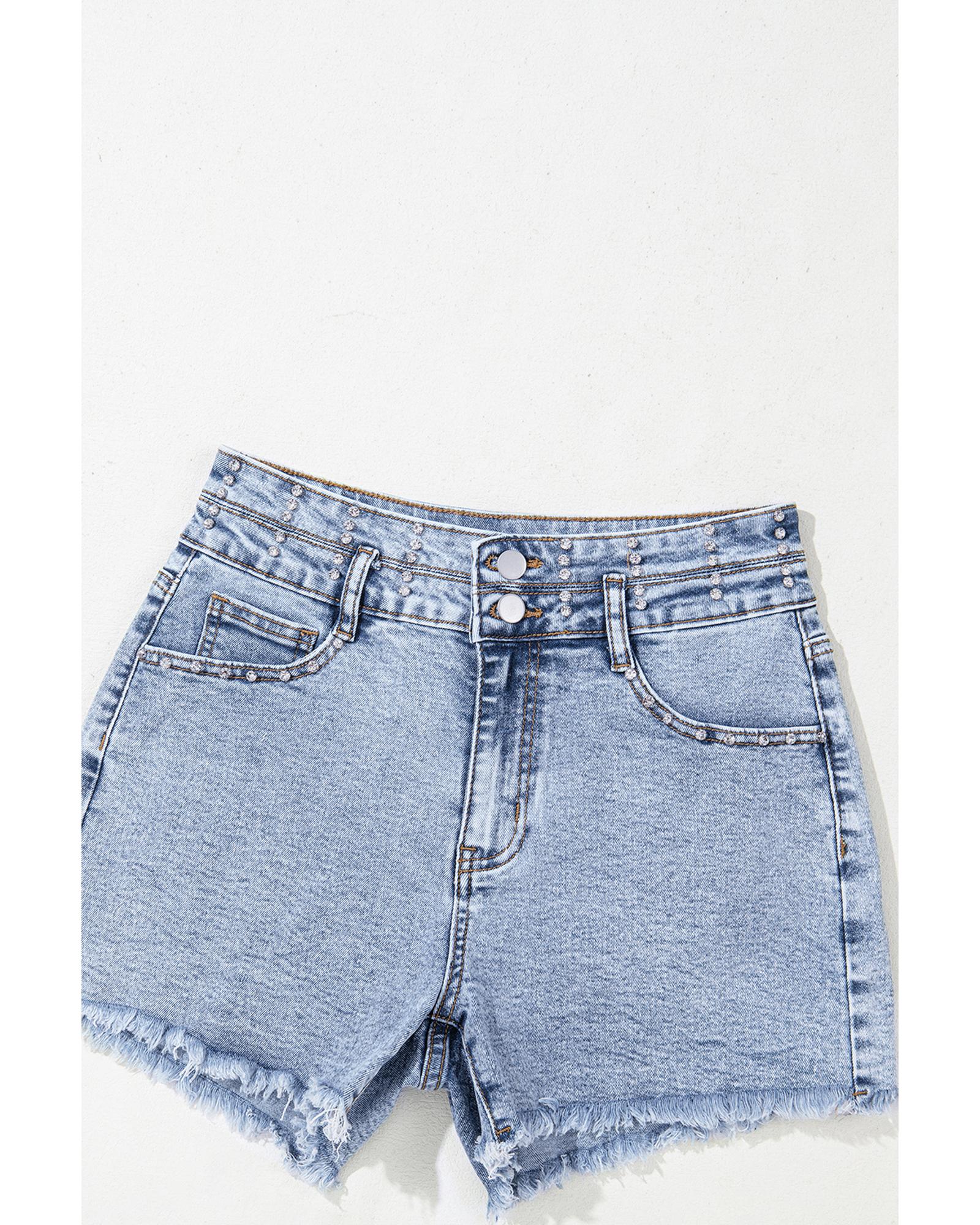 Beau Blue Rhinestone Light Wash Raw Hem High Waist Denim Shorts – 12 US
