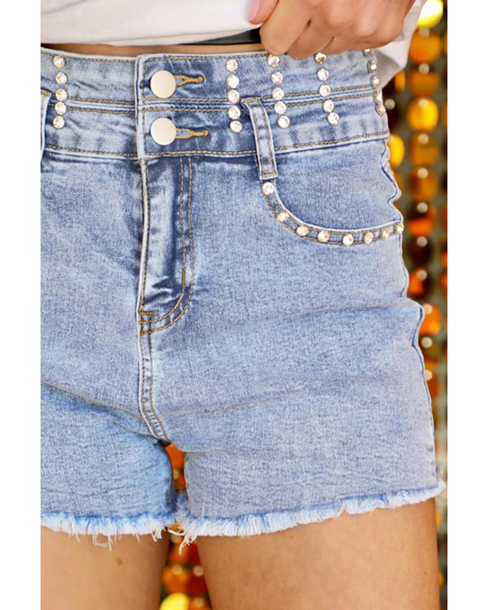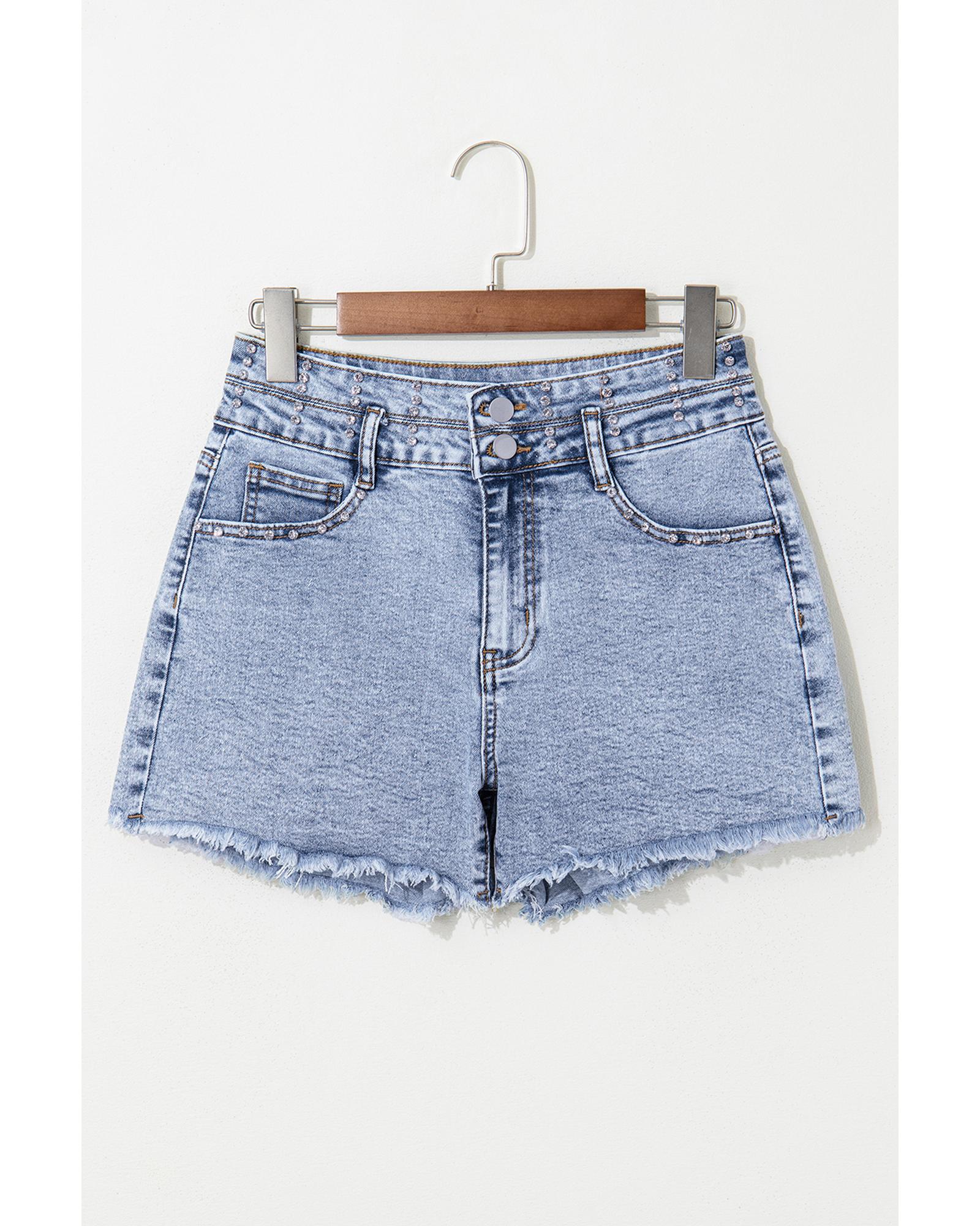 Beau Blue Rhinestone Light Wash Raw Hem High Waist Denim Shorts – 16 US