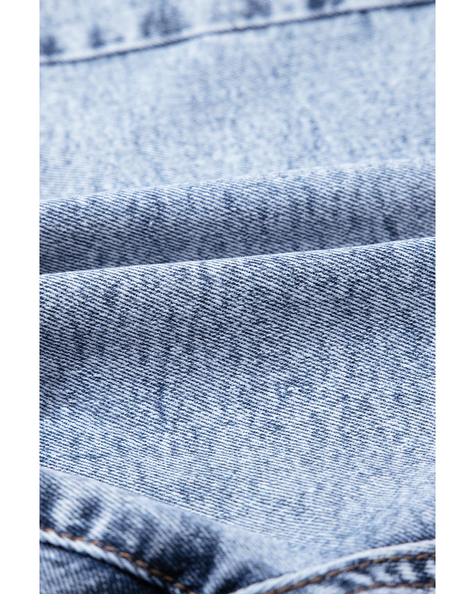 Beau Blue Rhinestone Light Wash Raw Hem High Waist Denim Shorts – 4 US