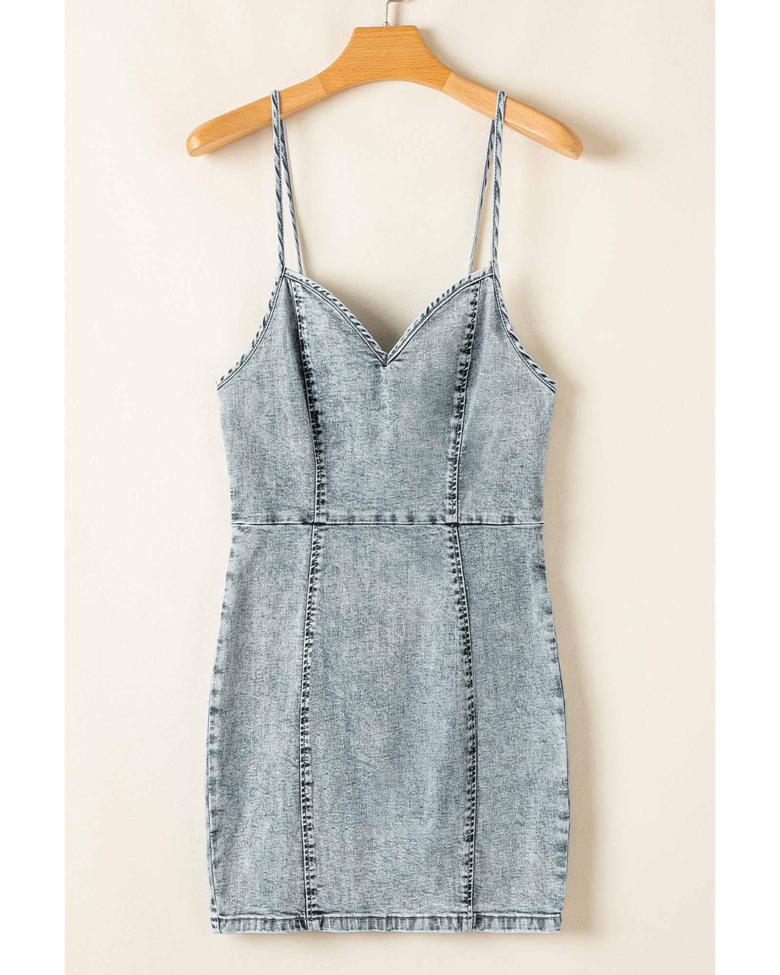 Beau Blue Sleeveless V Neck Back Zipped Denim Dress – L