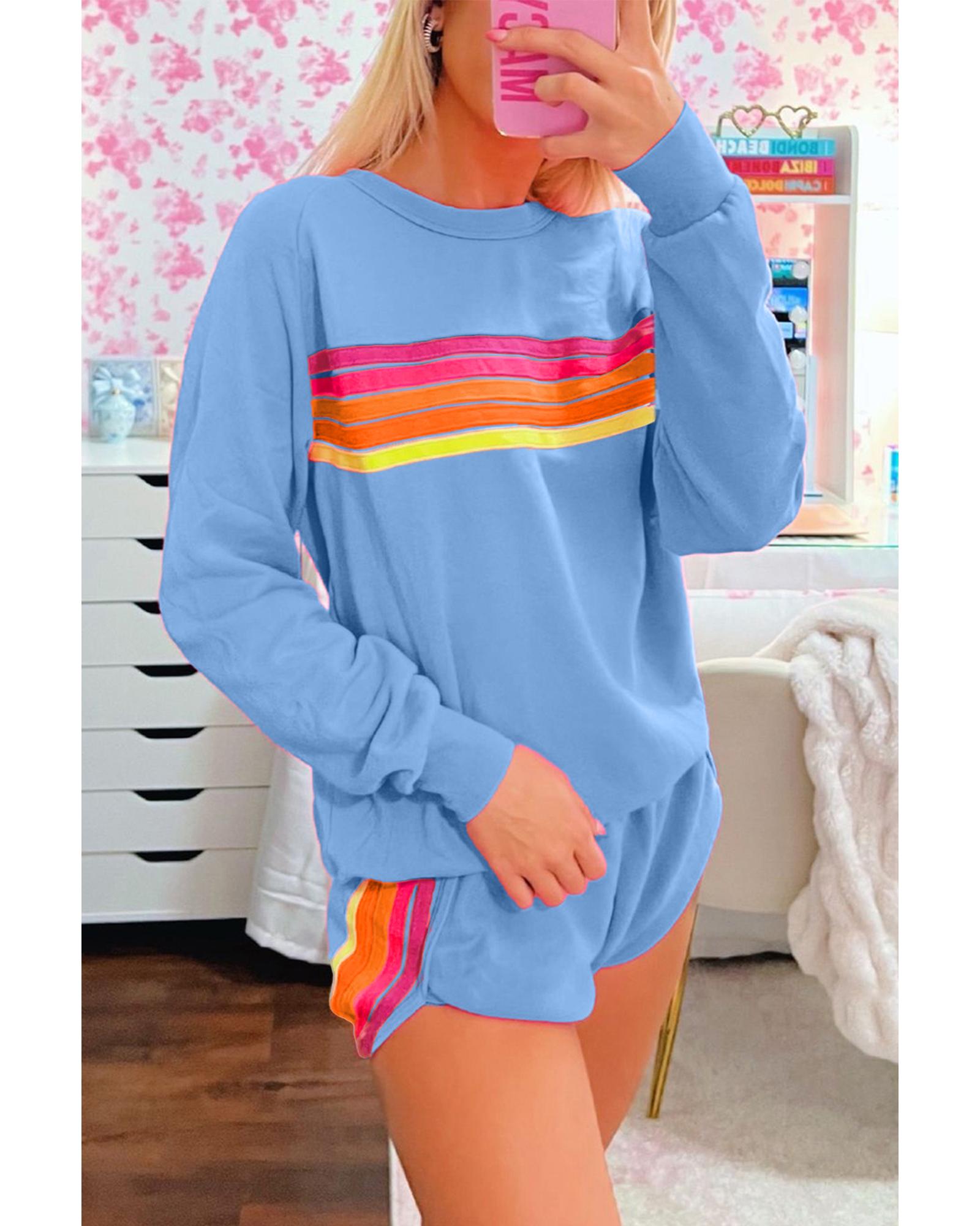 Beau Blue Striped Accent Pullover and Shorts Two Piece Casual Set – S