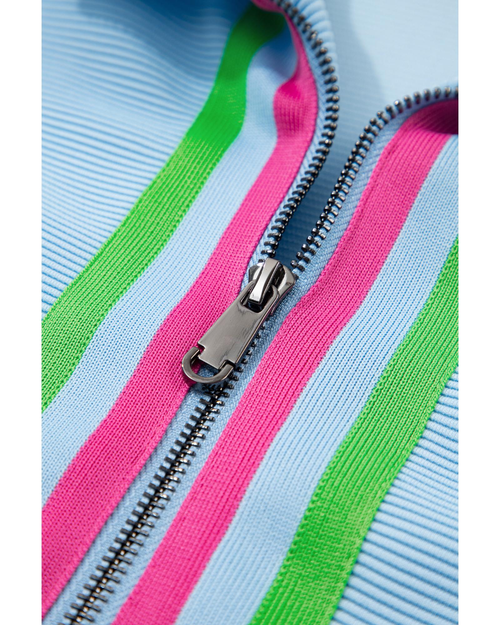 Beau Blue Striped Detail Flutter Sleeve Zipped Collar Short Set – L