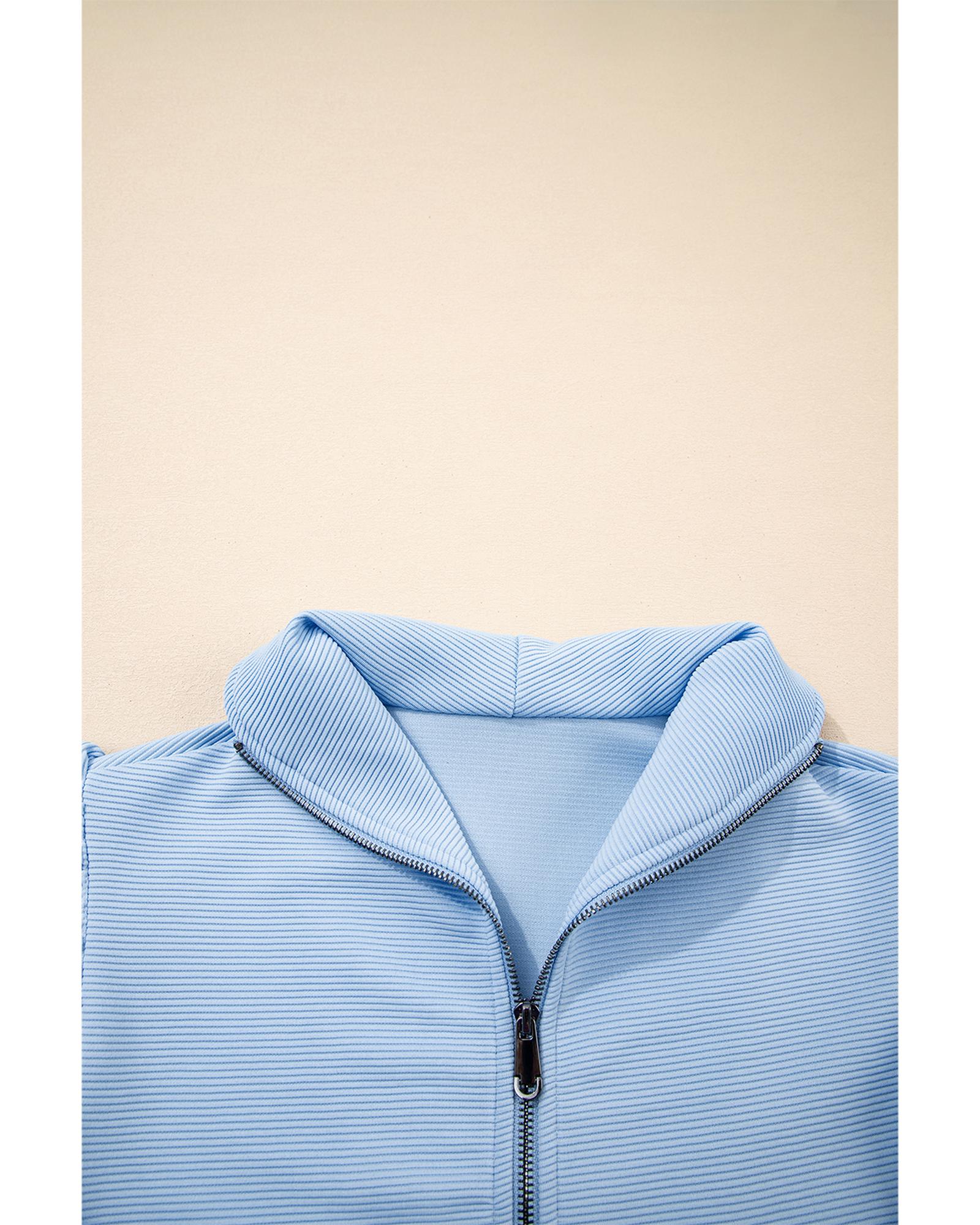 Beau Blue Textured Ruffled Sleeve Zipped Top and Wide Leg Pants Set - XL