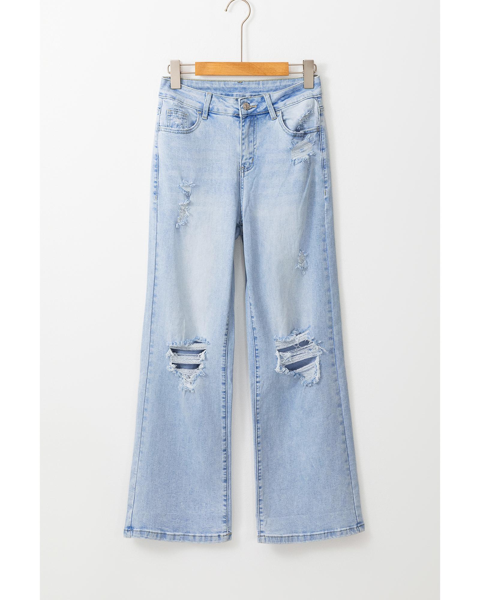 Beau Blue Light Wash Distressed Flare Jeans - 8 US