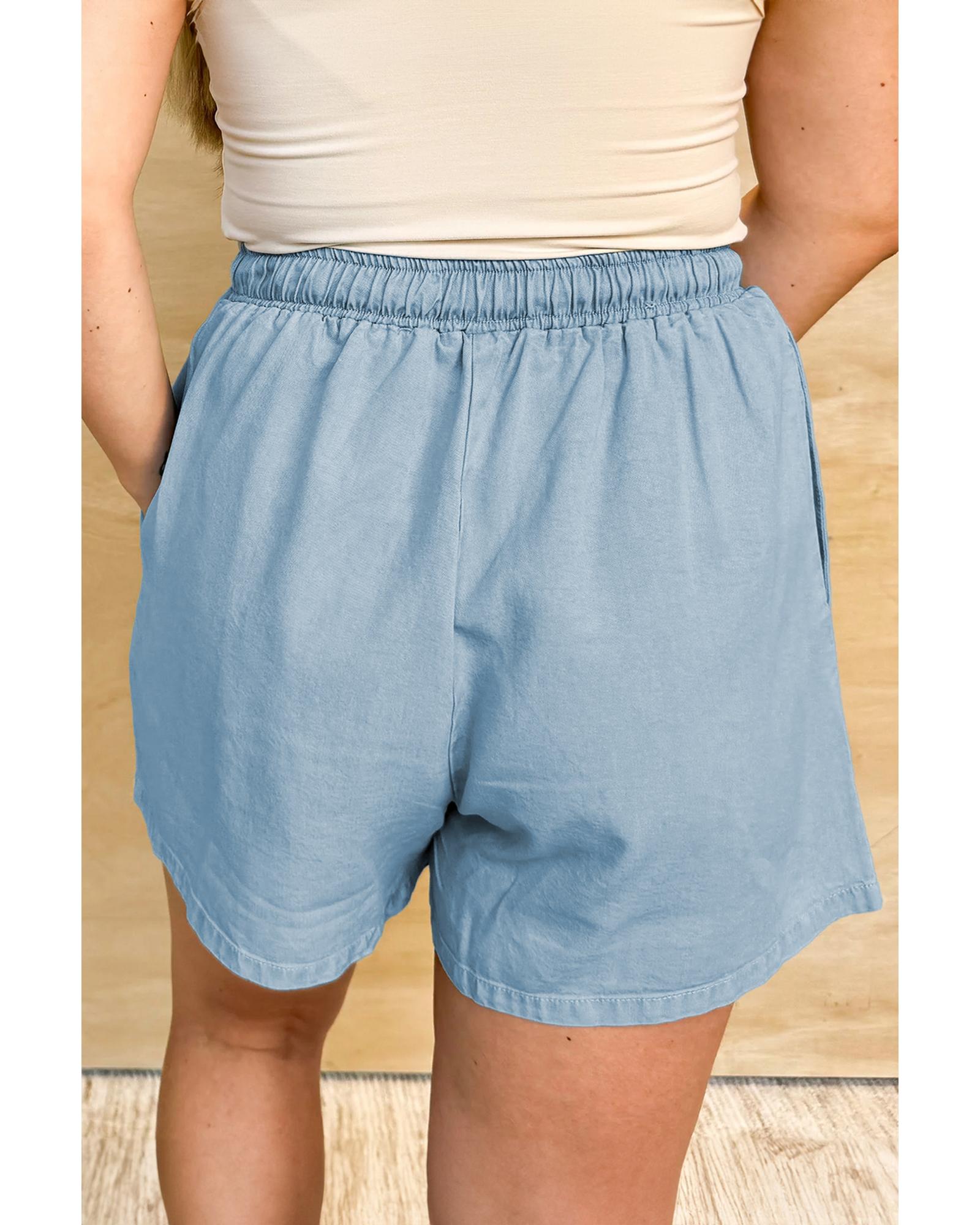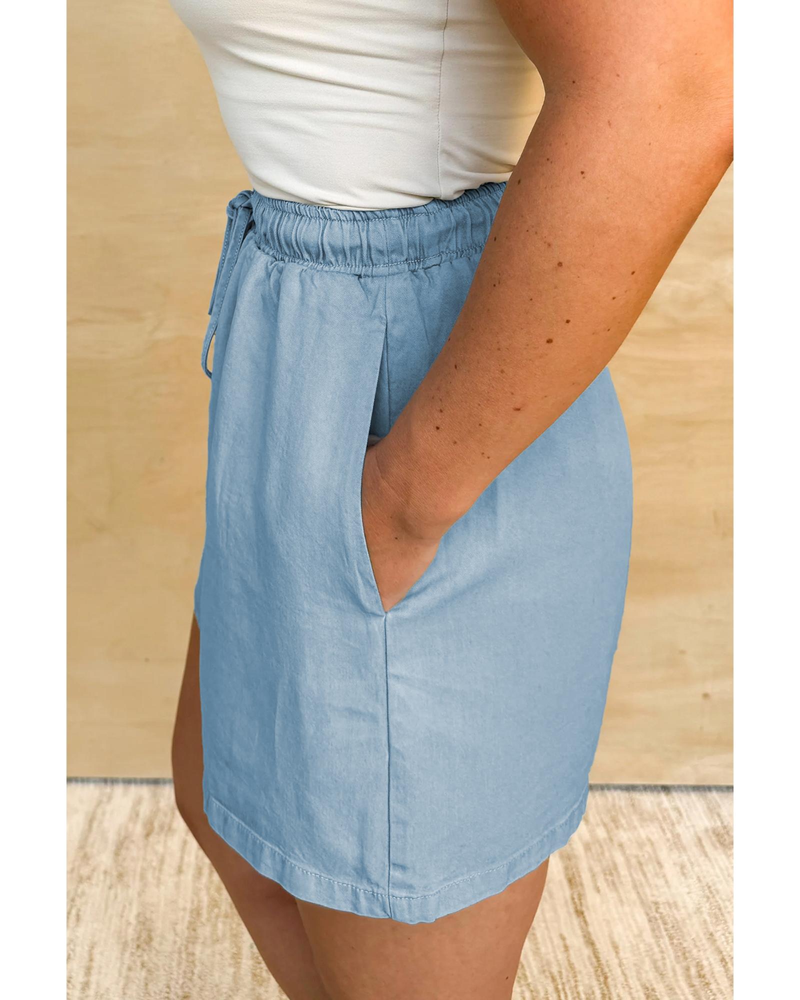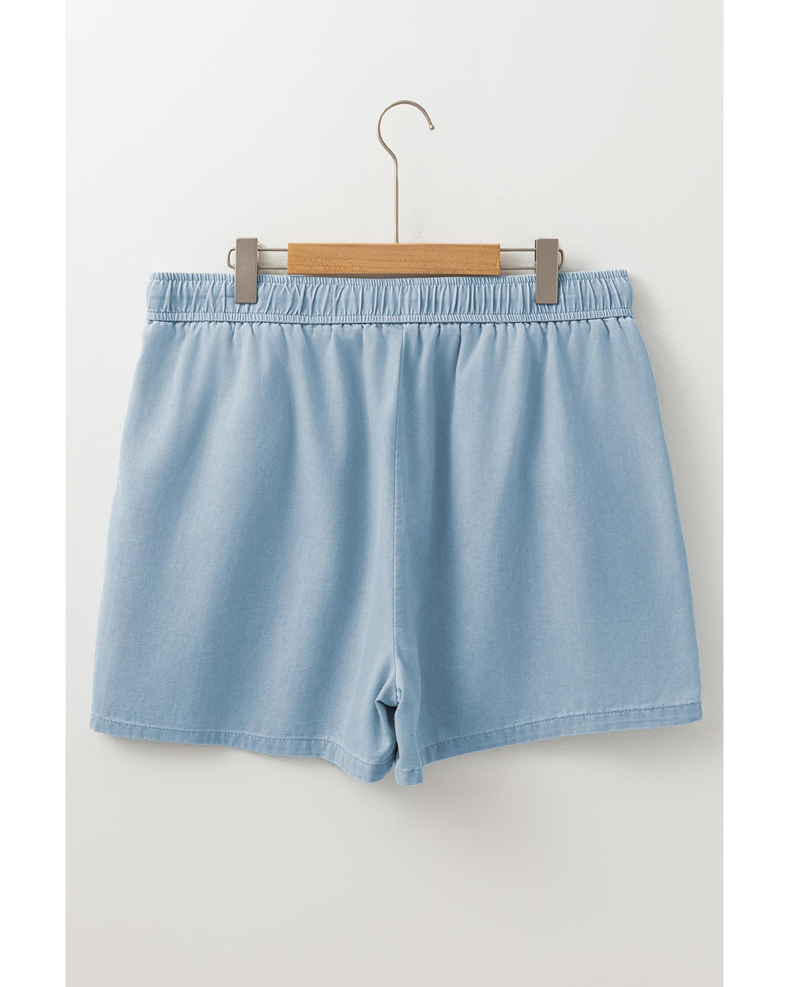 Beau Blue Washed Chambray Drawstring Elastic Waist Plus Size Shorts – 2X