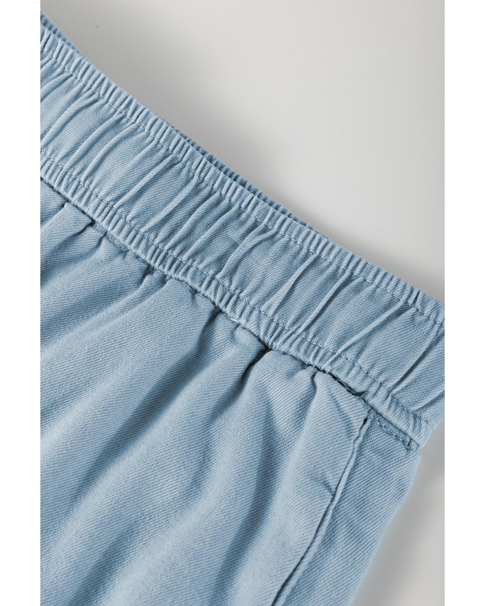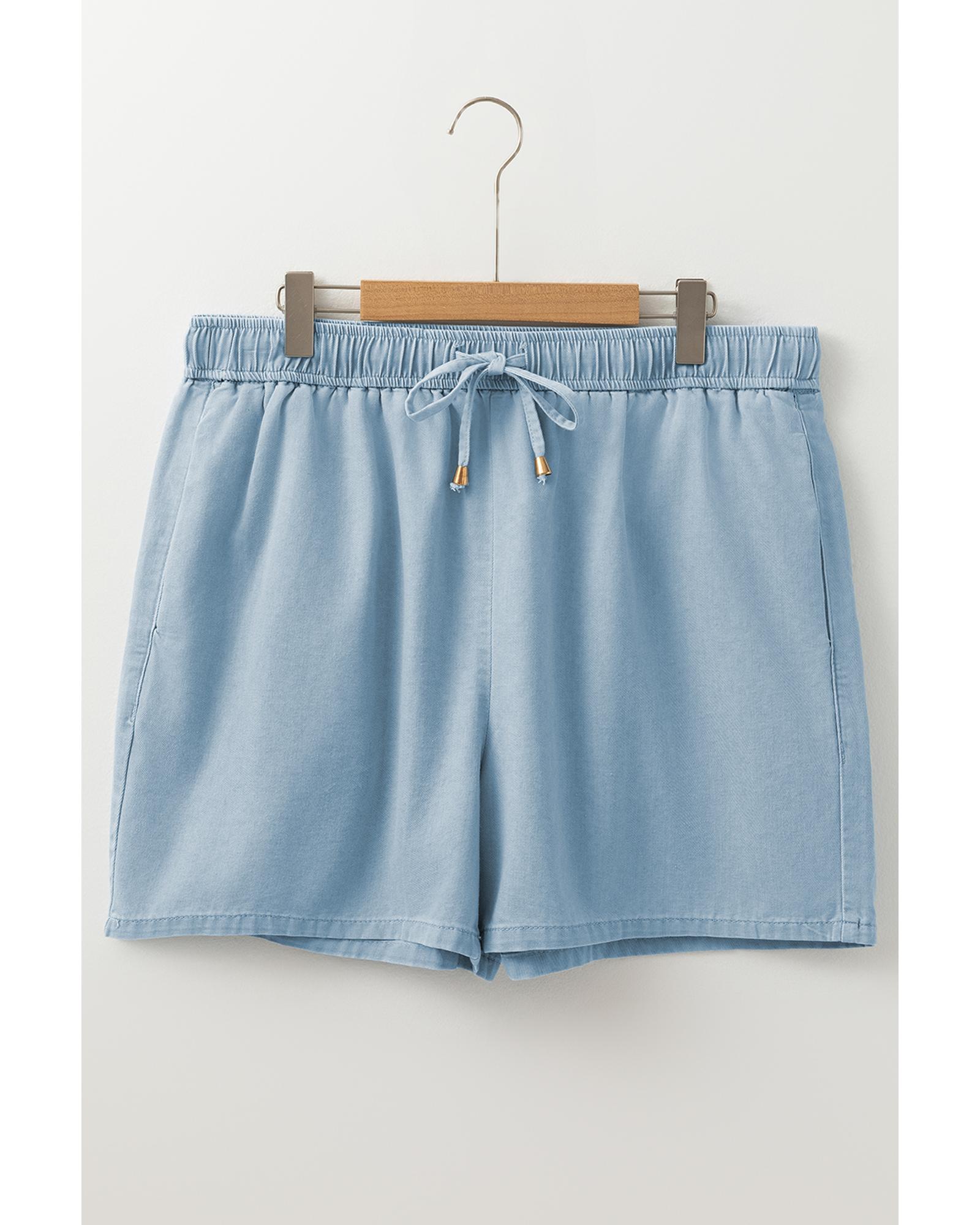 Beau Blue Washed Chambray Drawstring Elastic Waist Plus Size Shorts – 4X