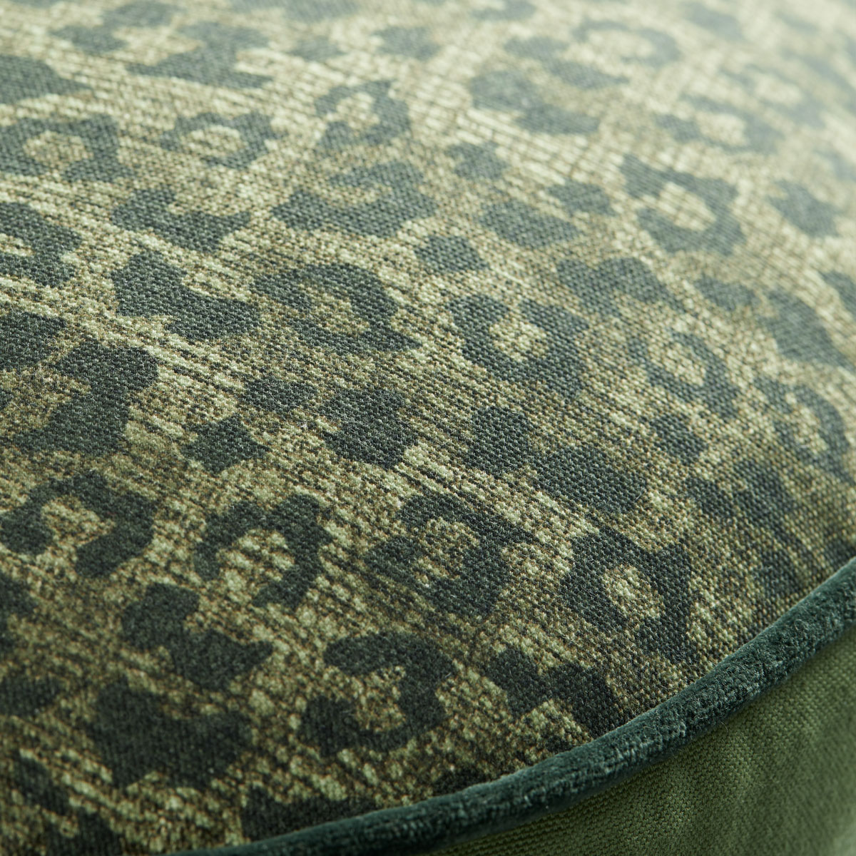 With it’s trendy round shape, panther print in shades of green and red velvet piping, decorative cushion Pardus Luxury Cotton Round Filled Cushion 40 cm Diameter by Bedding House is a must have for every living and/or bedroom. The back of the cushion is plain green. The decorative cushion Pardus is made from 100% cotton and with a diameter of 40 cm. The cushion comes with a resilient polyester inner cushion. The cushion cannot be washed in the washing machine and is not suitable for tumble drying.
