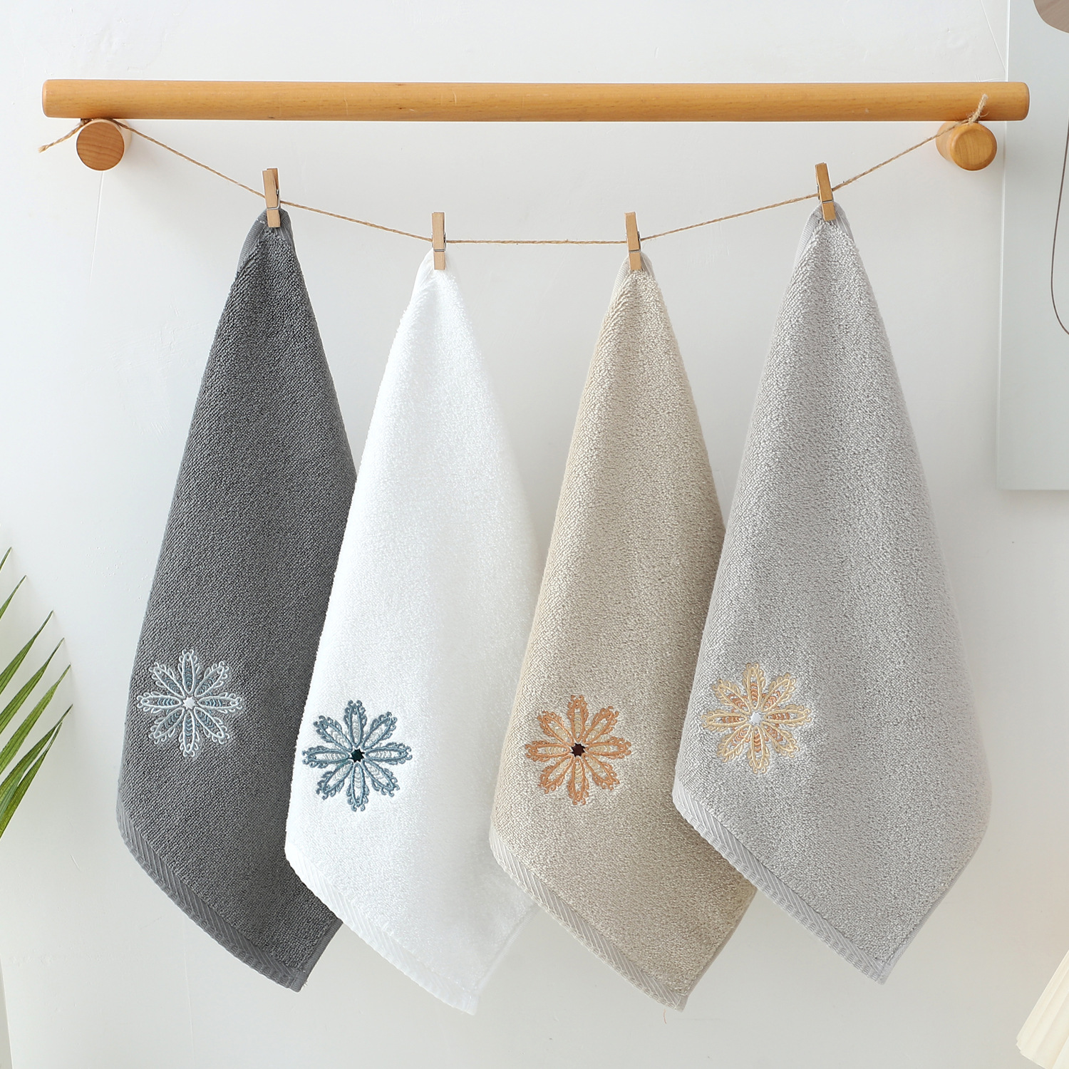 • Set Includes: 4 x Embroidered Cotton Hand Towels