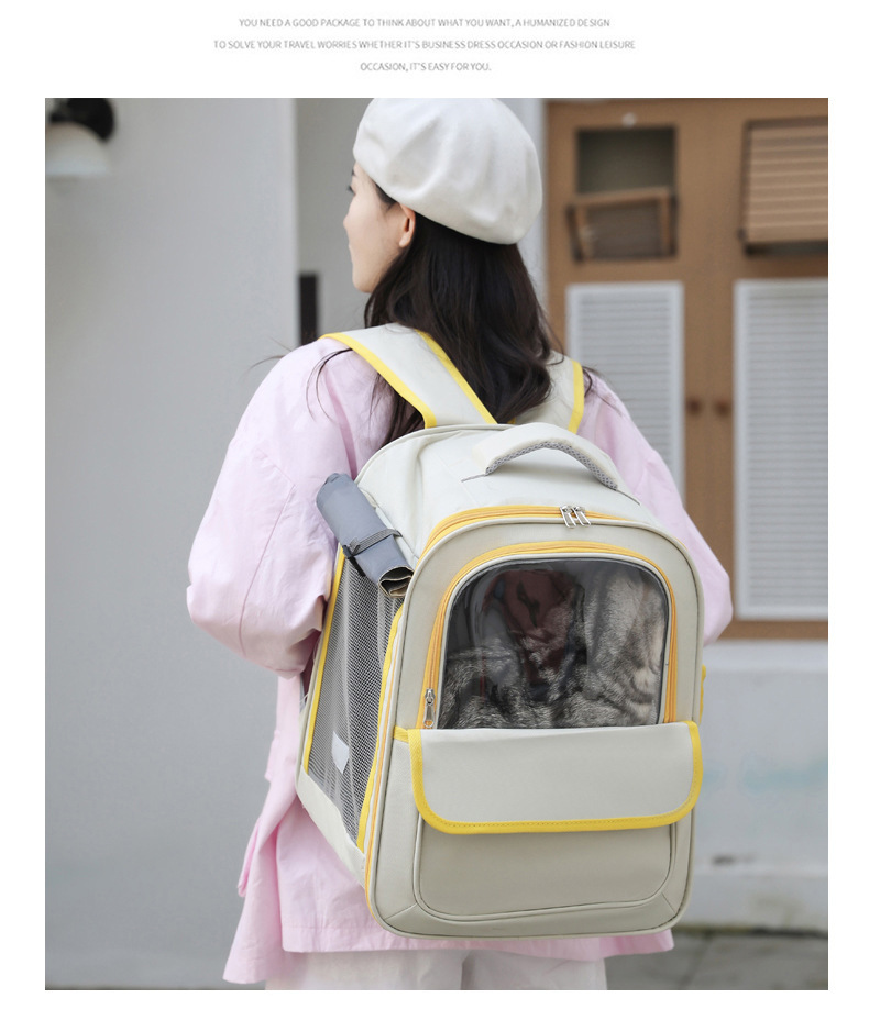 Beige And Black Spacious Pet Carrier Backpack with Clear Window – Comfortable Travel Bag for Cats & Small Dogs