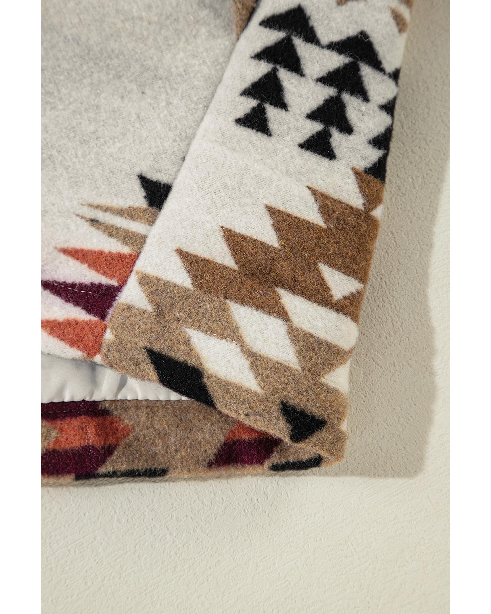 Beige Aztec Printed Stand Neck Zip Up Jacket – M