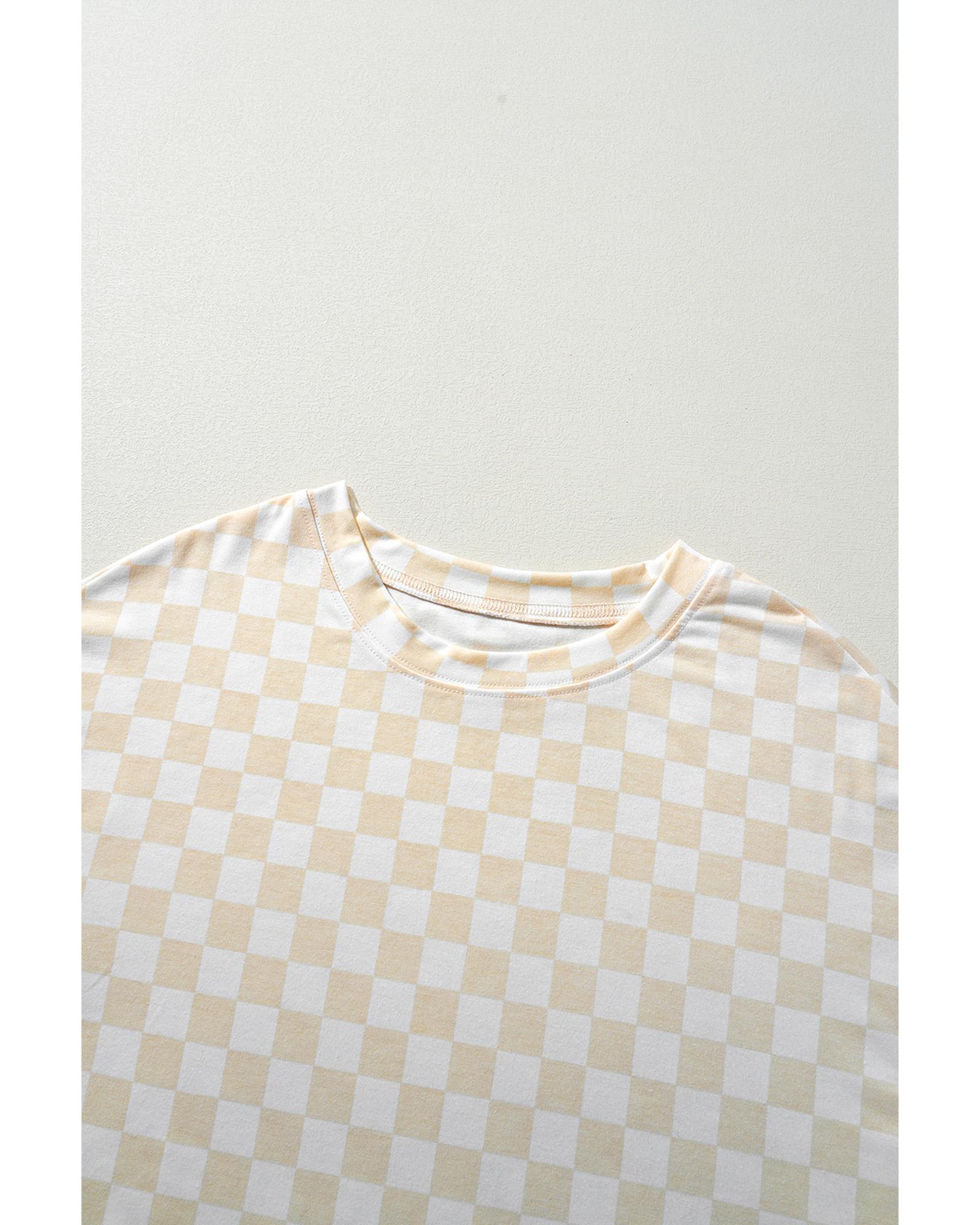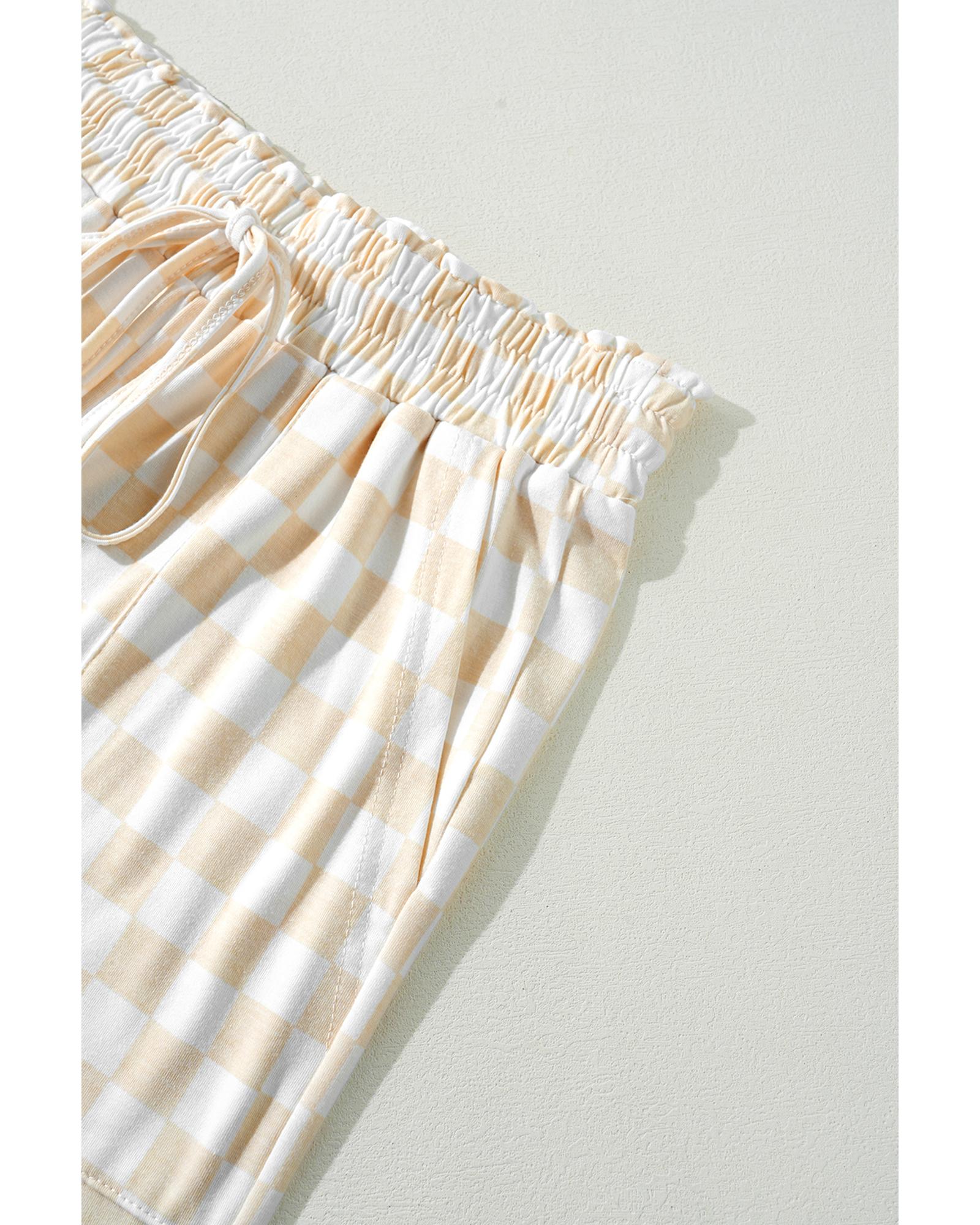 Beige Checkered Print Long Sleeve Top and Pants Lounge Set – XL