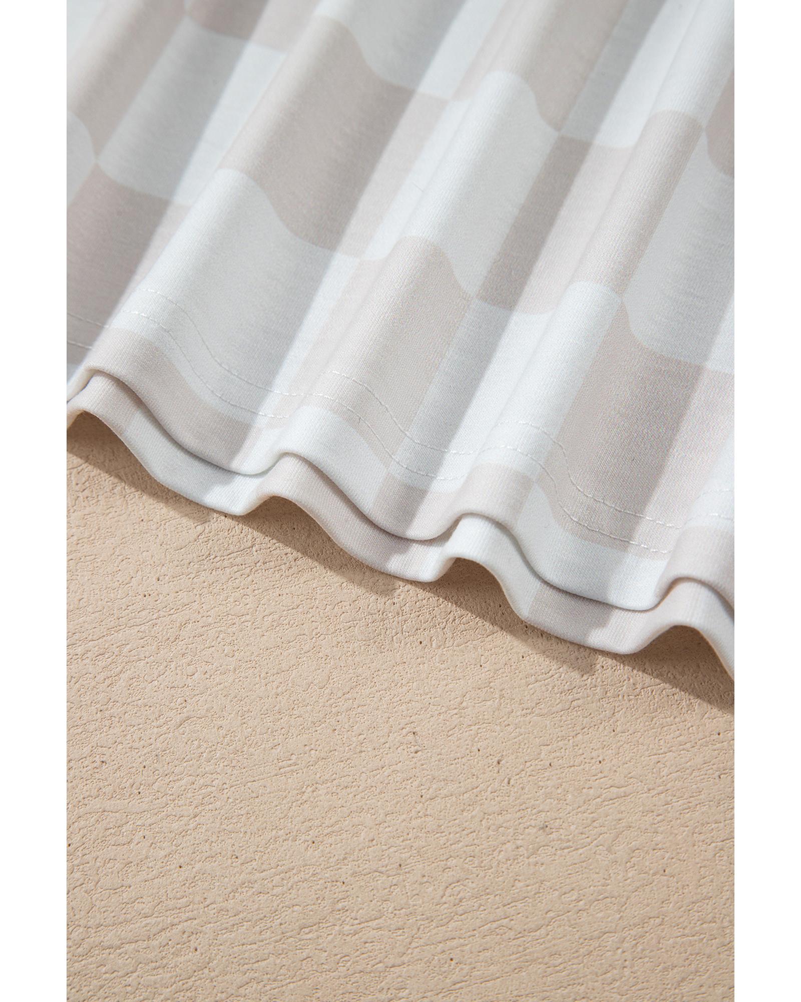 Beige Checkered V Neck Tee Drawstring Shorts Lounge Set – S