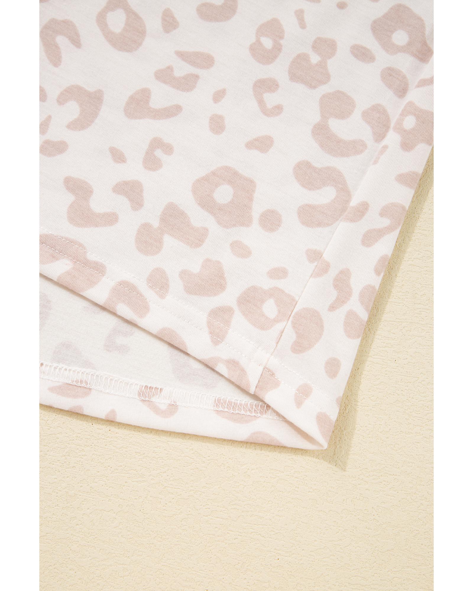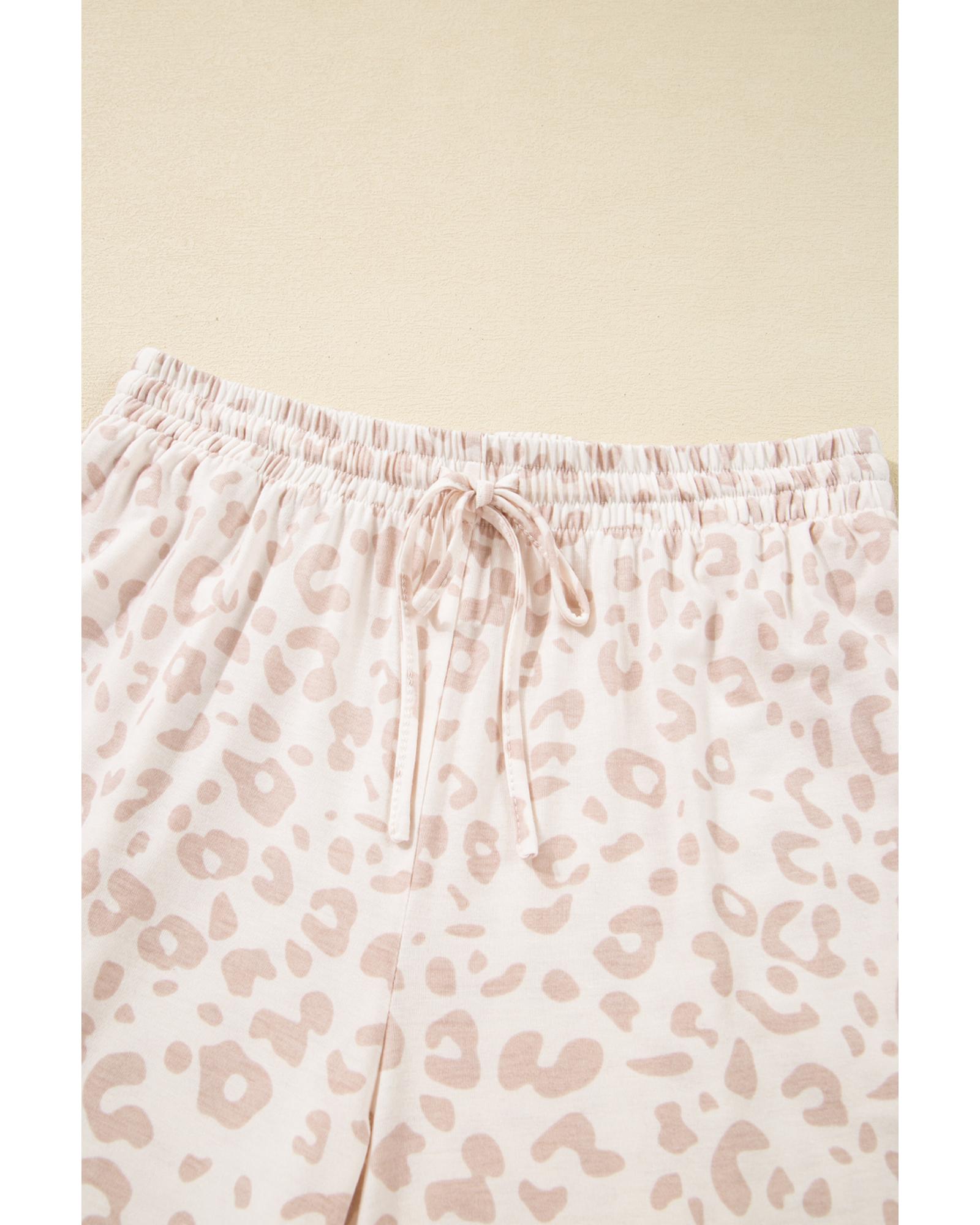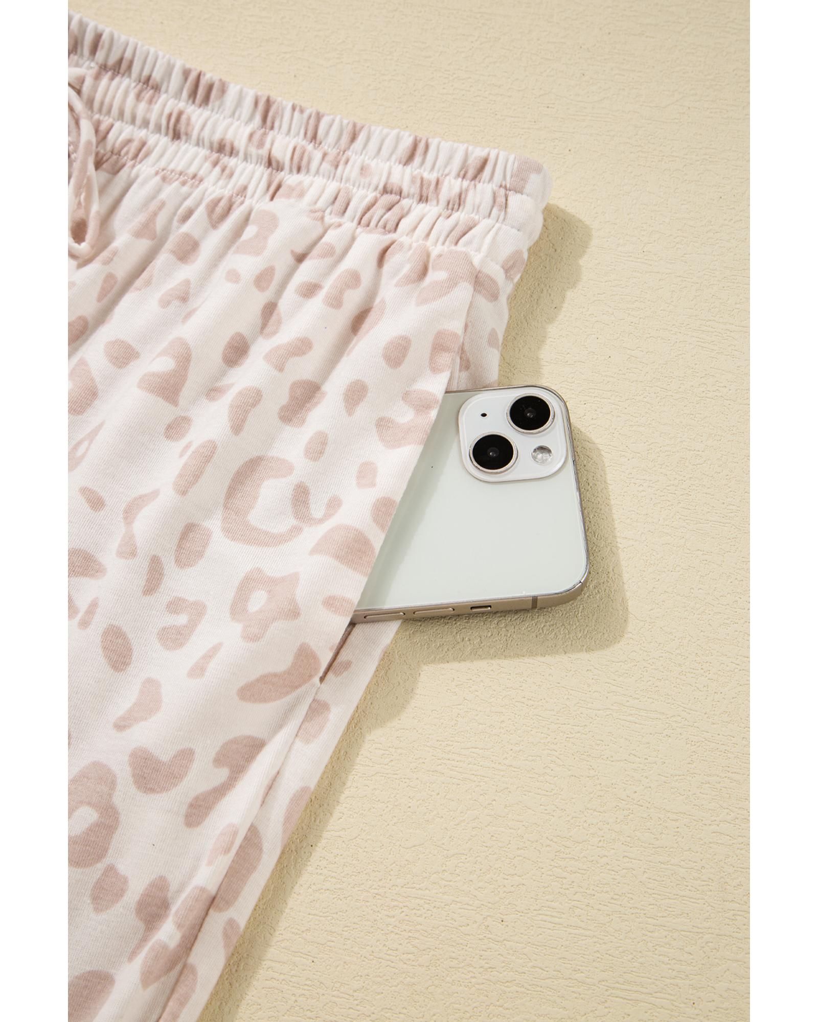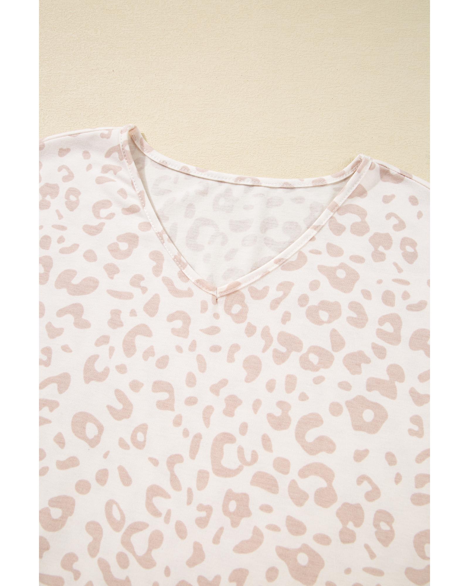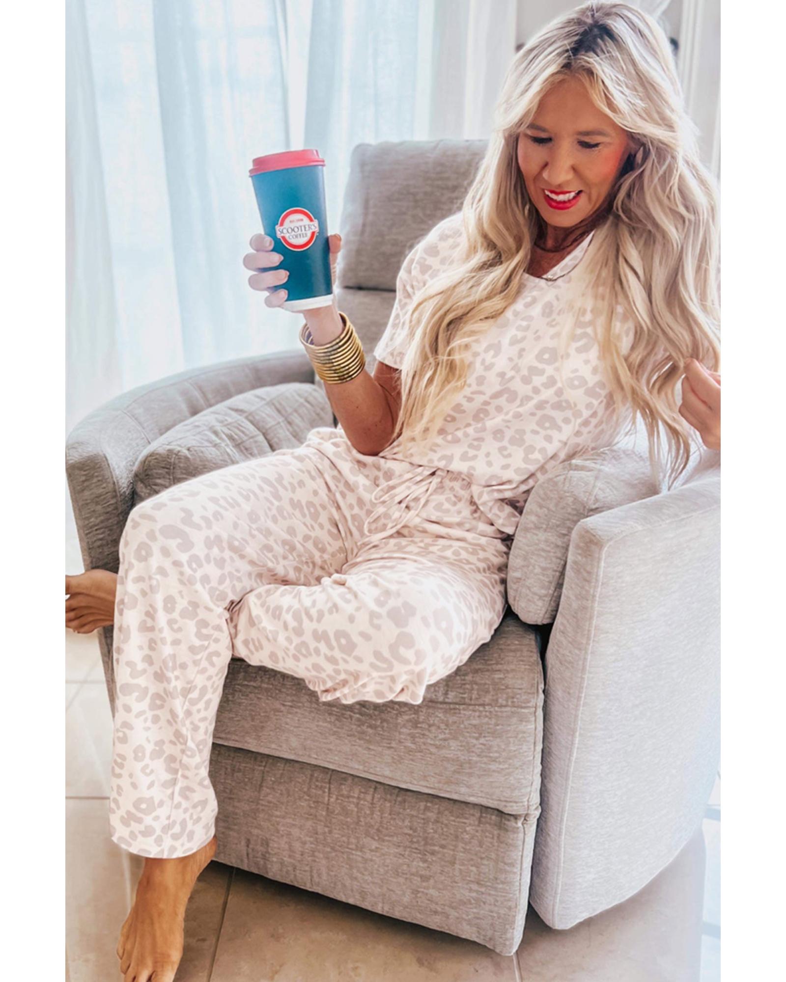 Beige Cheetah V Neck Tee and Pants Lounge Set – S