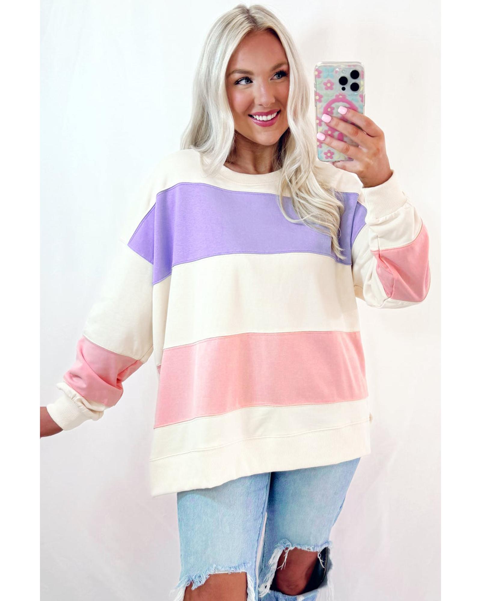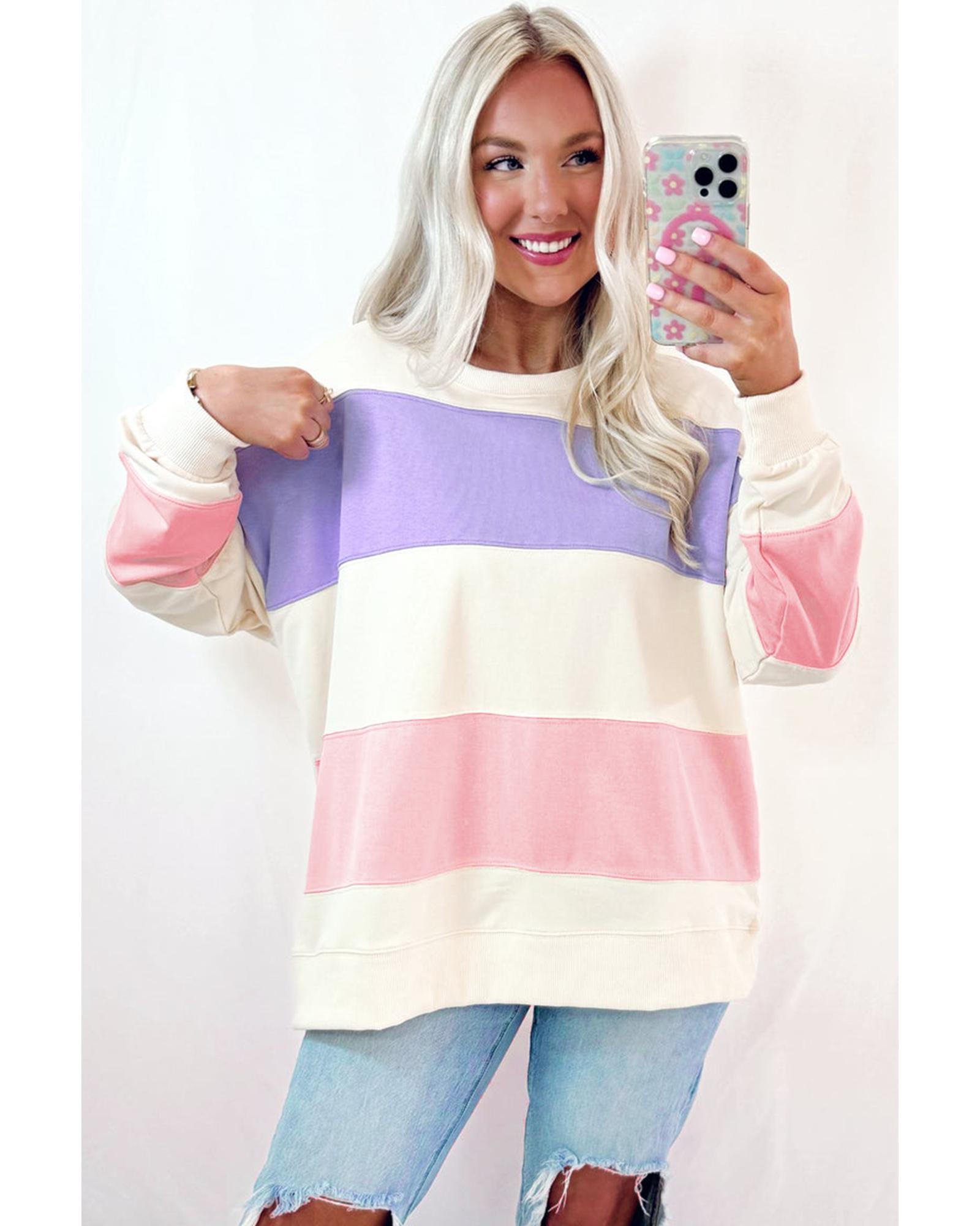 - Beige Colorblock Patchwork Drop Shoulder Crewneck Sweatshirt