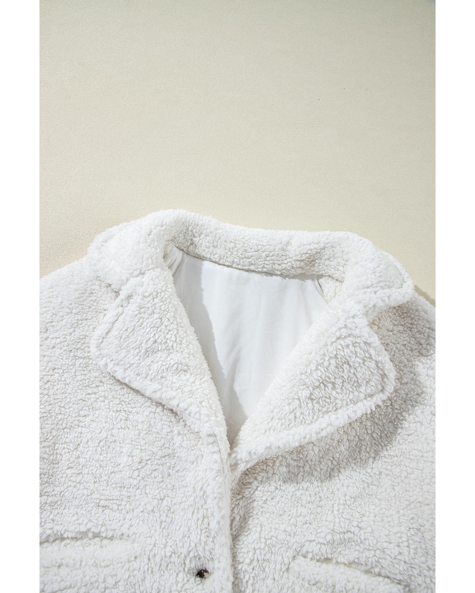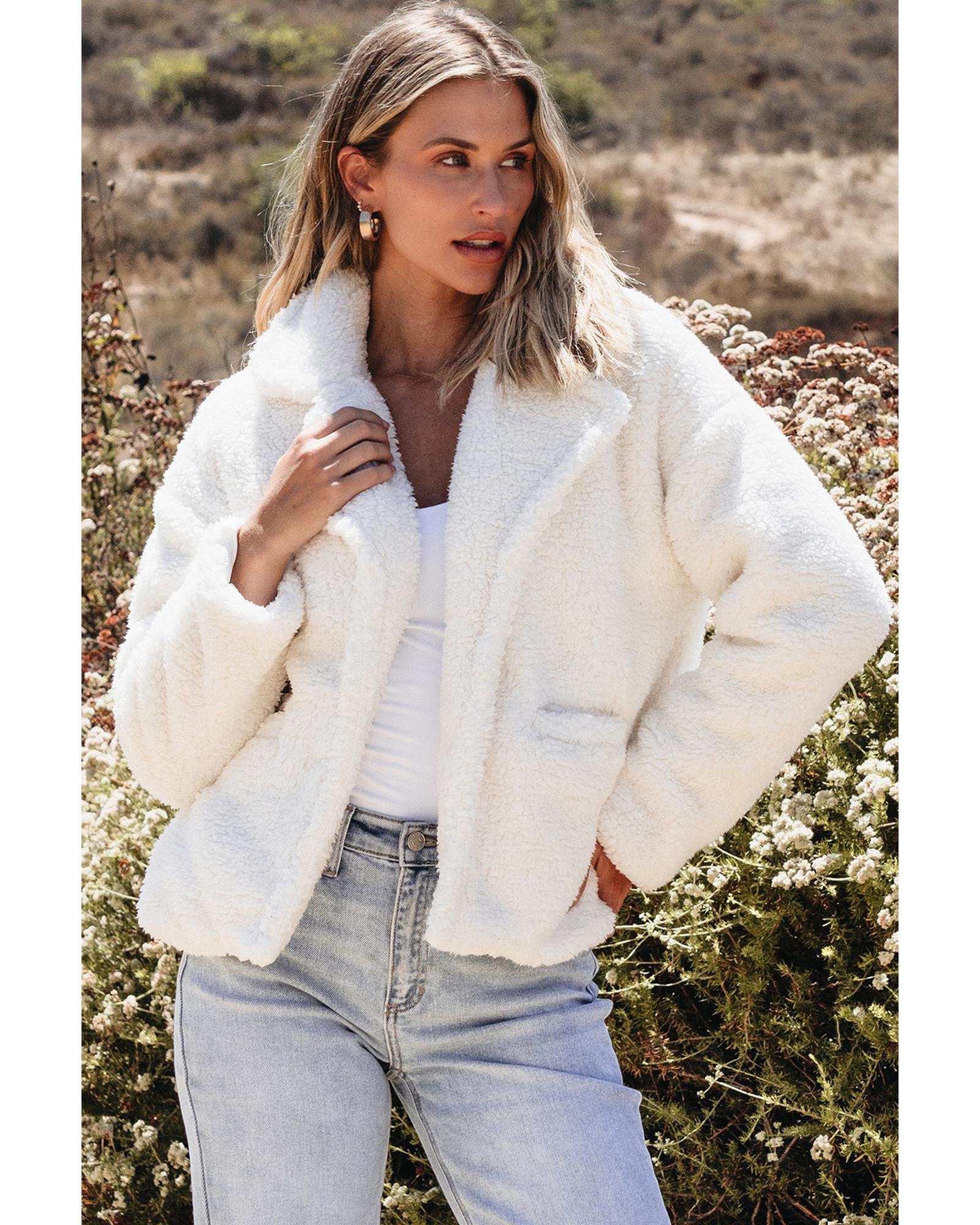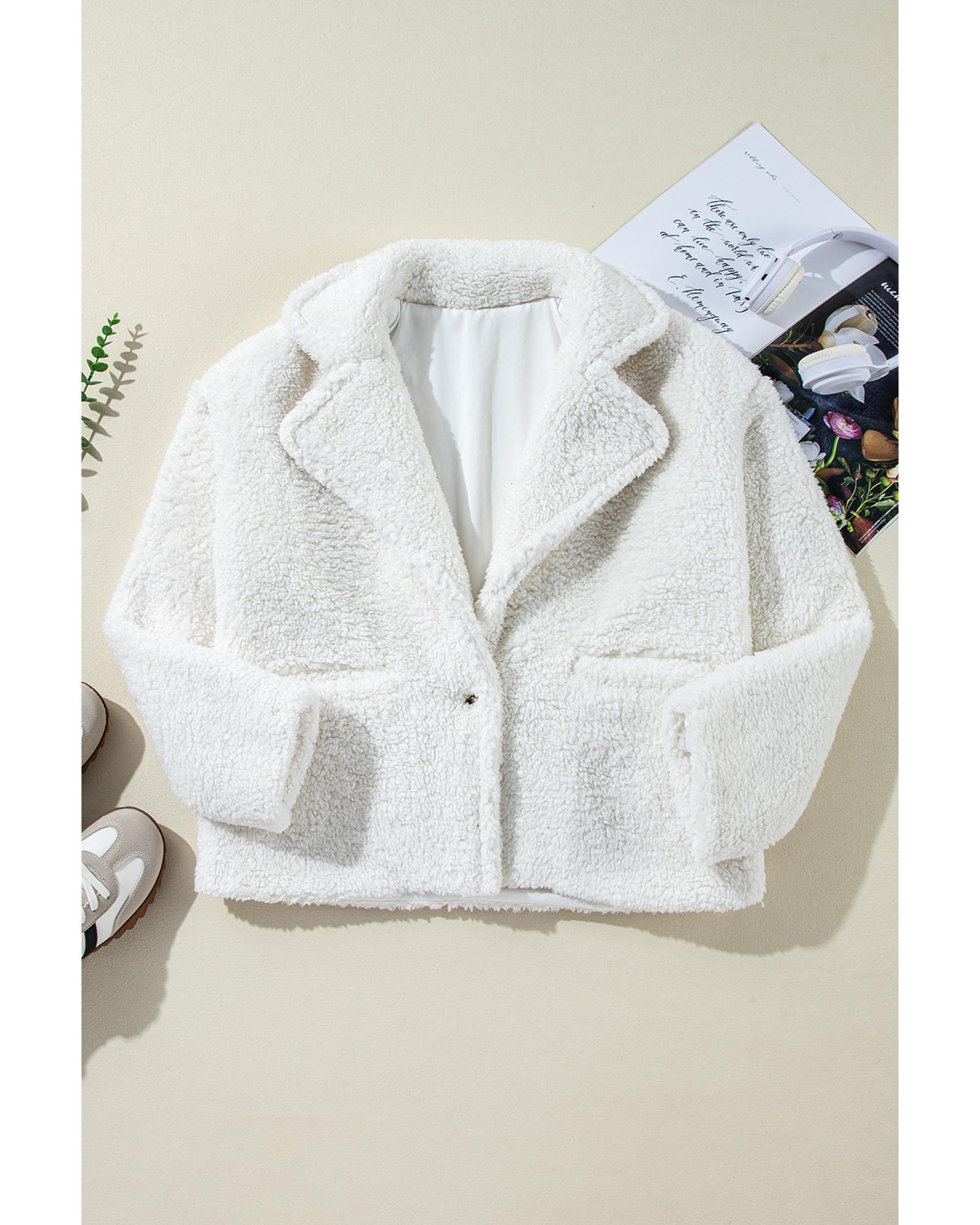Beige Faux Fur Button Pocketed Lapel Collar Jacket – S