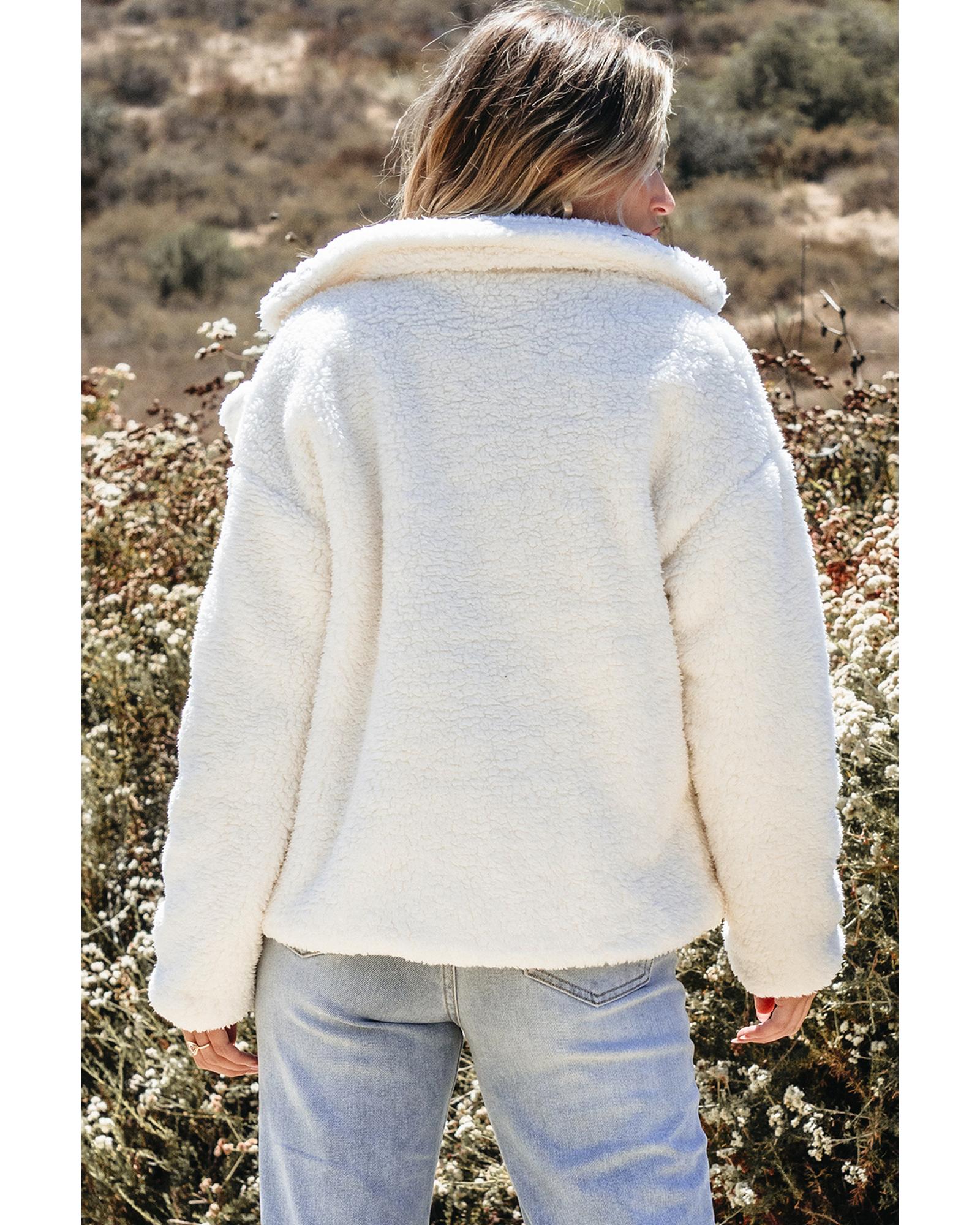 Beige Faux Fur Button Pocketed Lapel Collar Jacket – XL