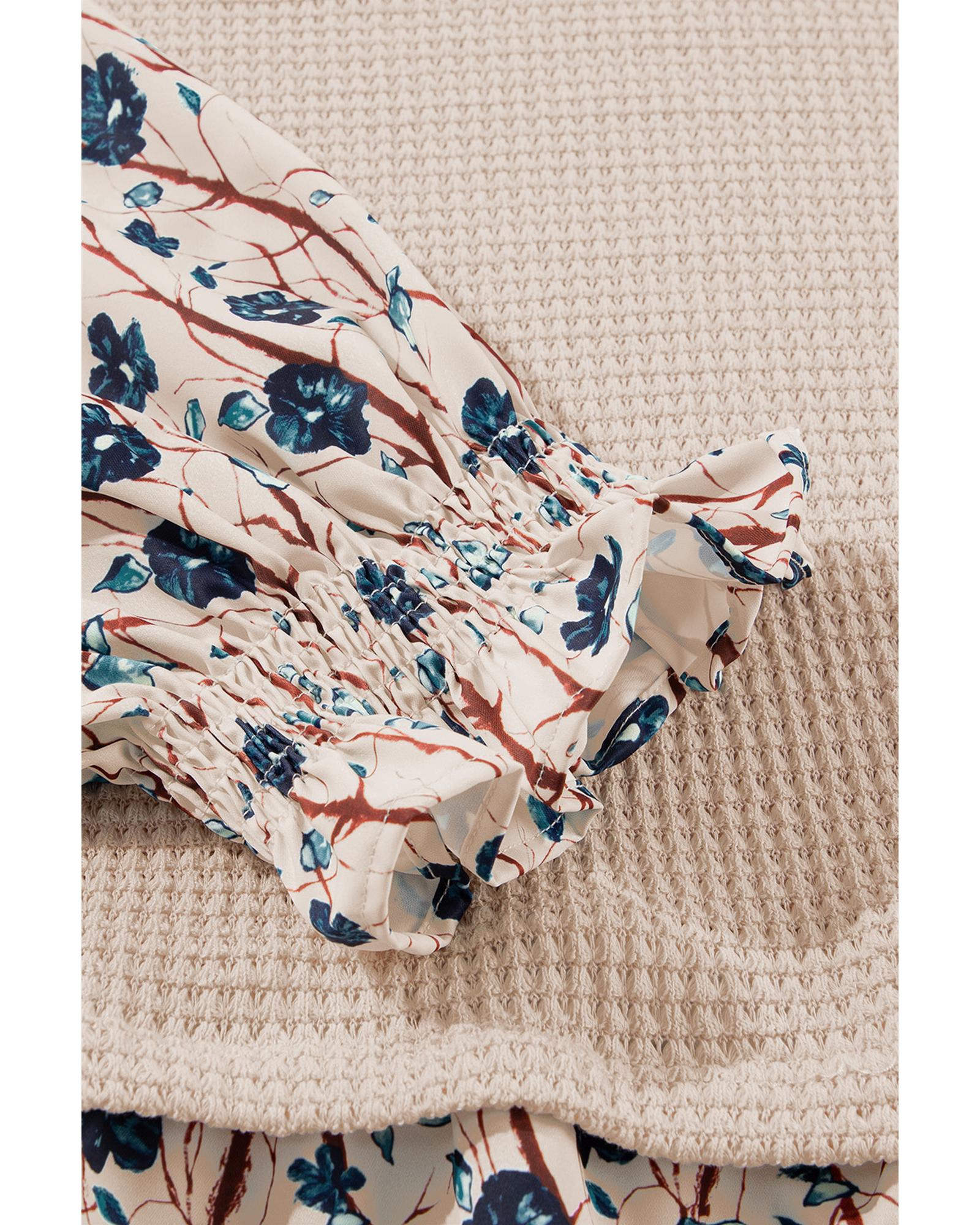 Beige Faux Two Piece Knit Patchwork Floral Print Plus Size Top – 2X