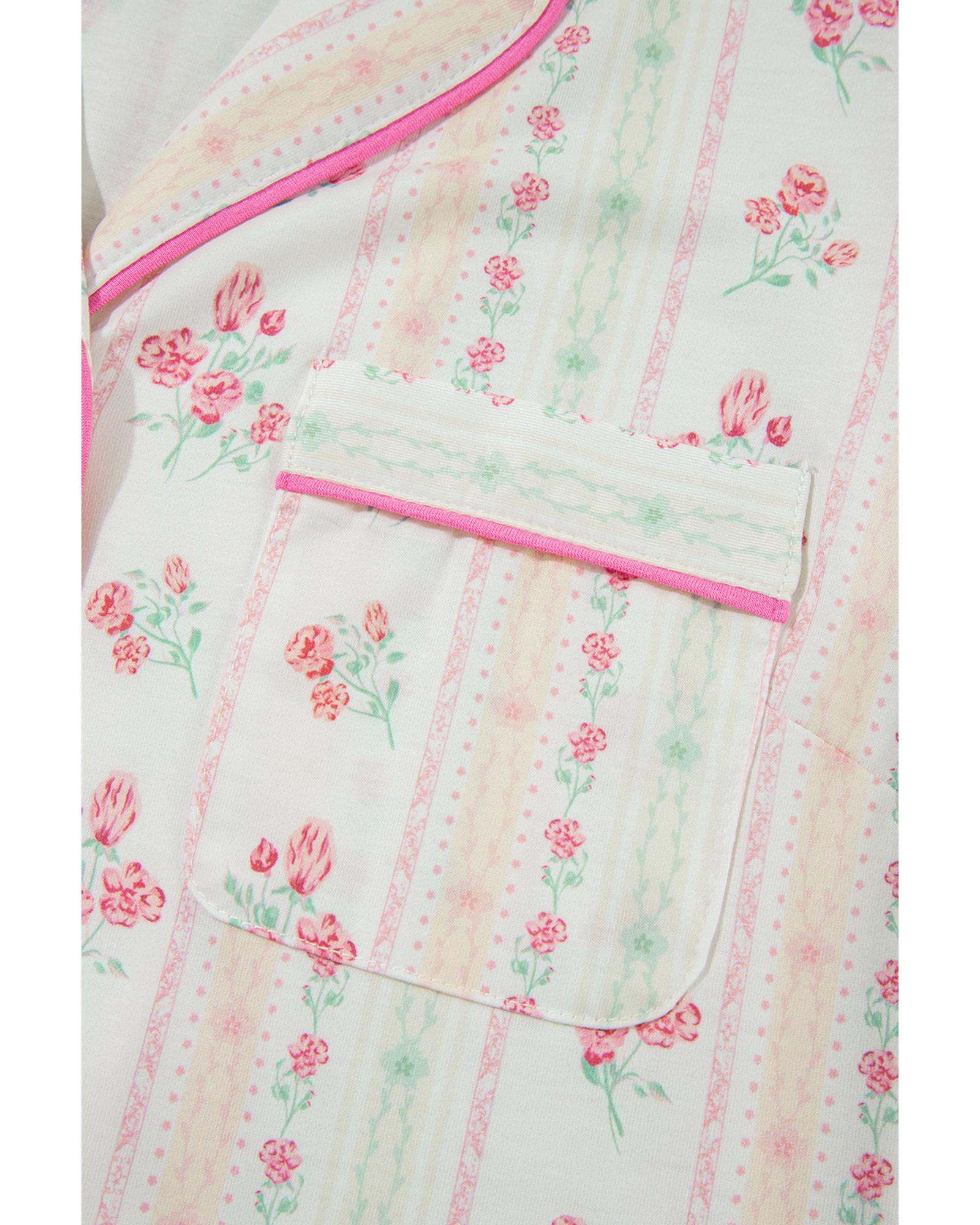 Beige Floral Print Contrast Pipping Short Pajamas Set – L