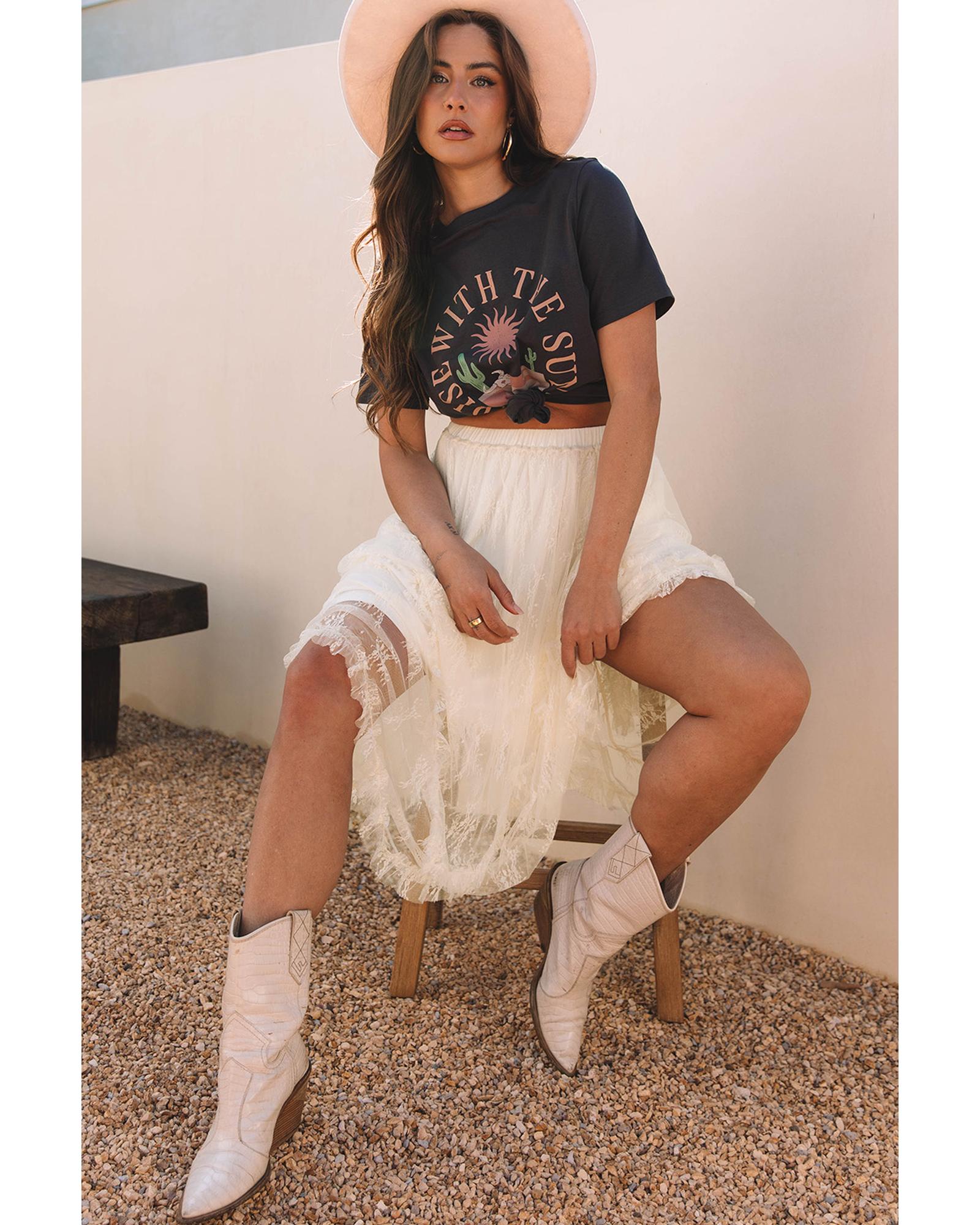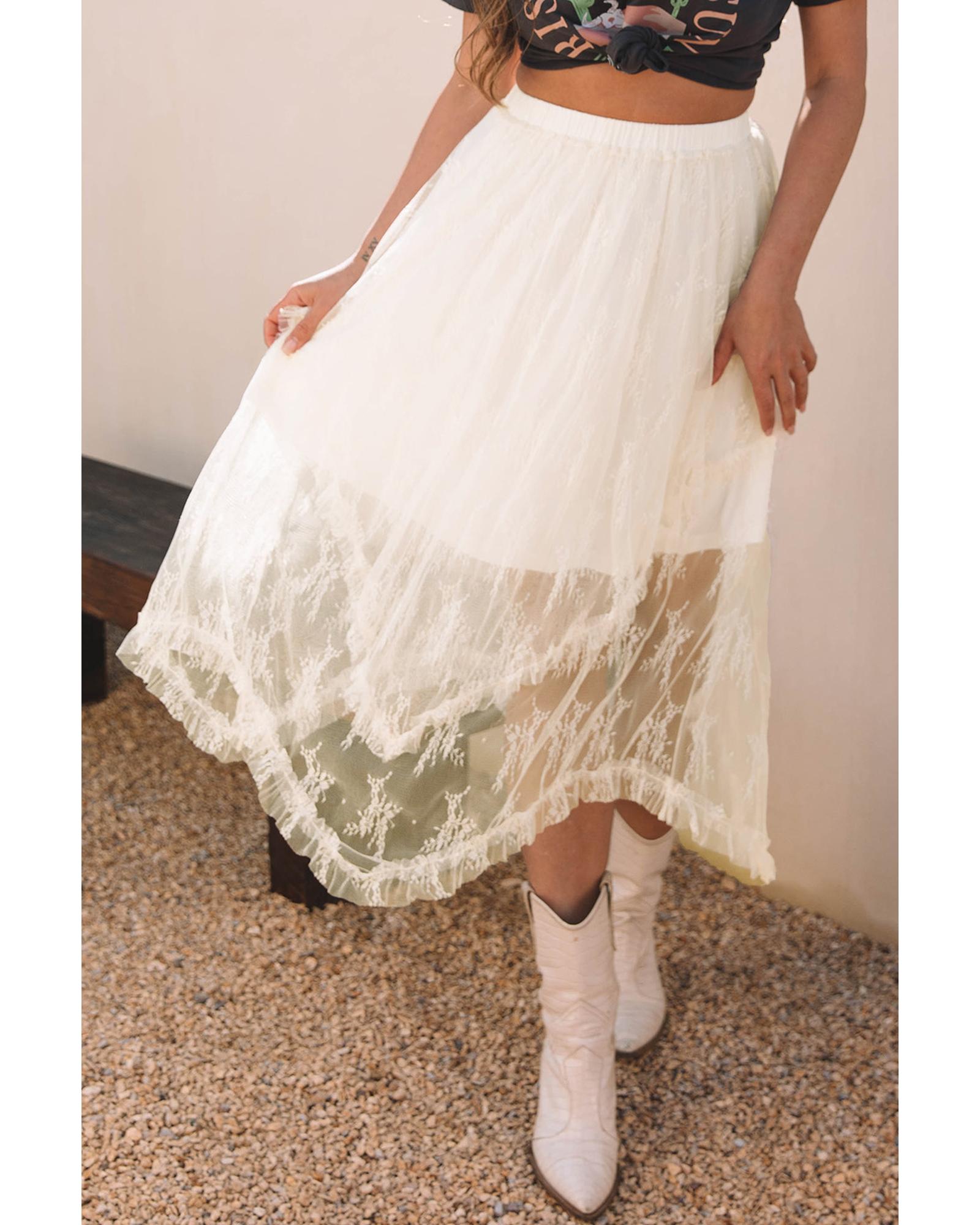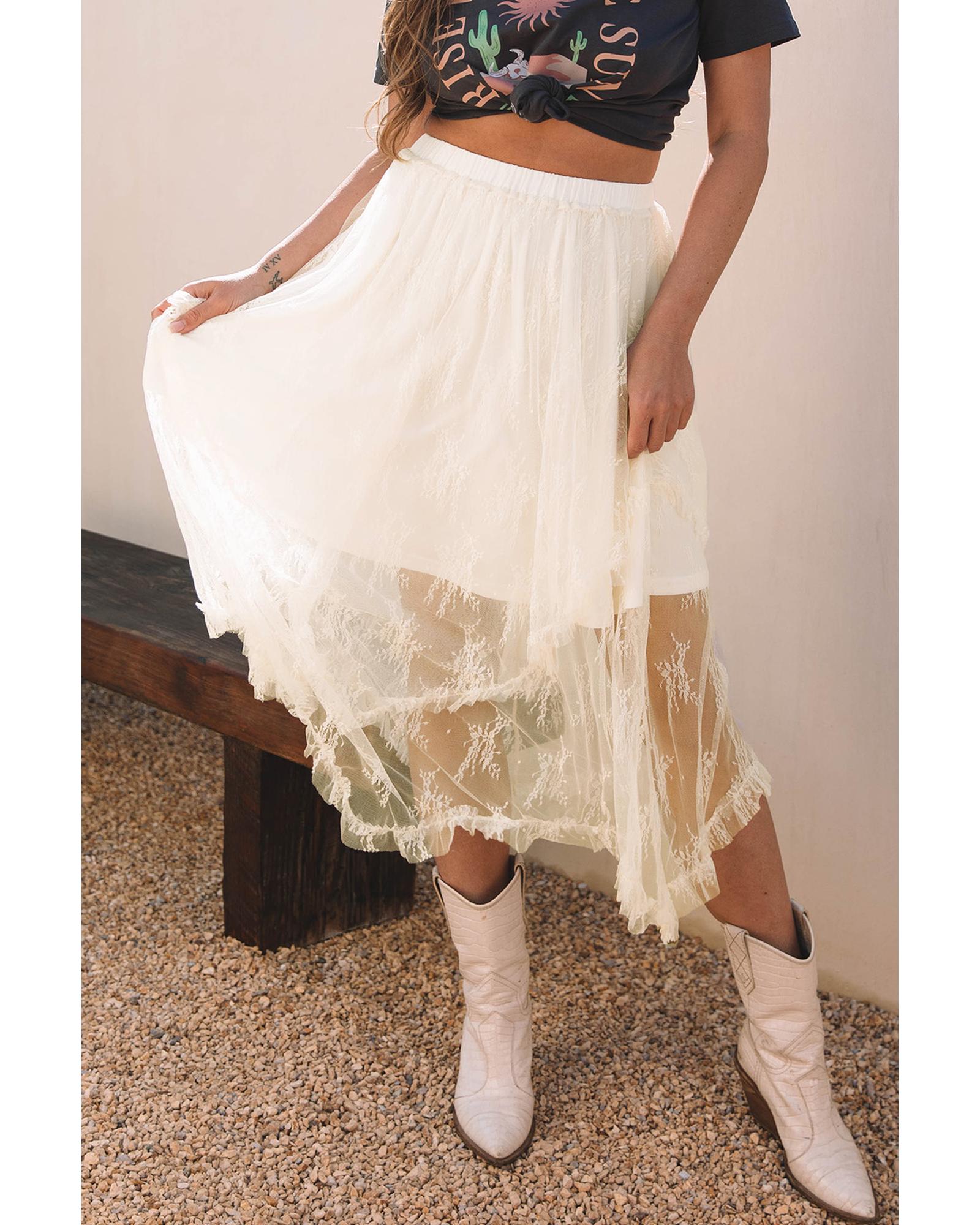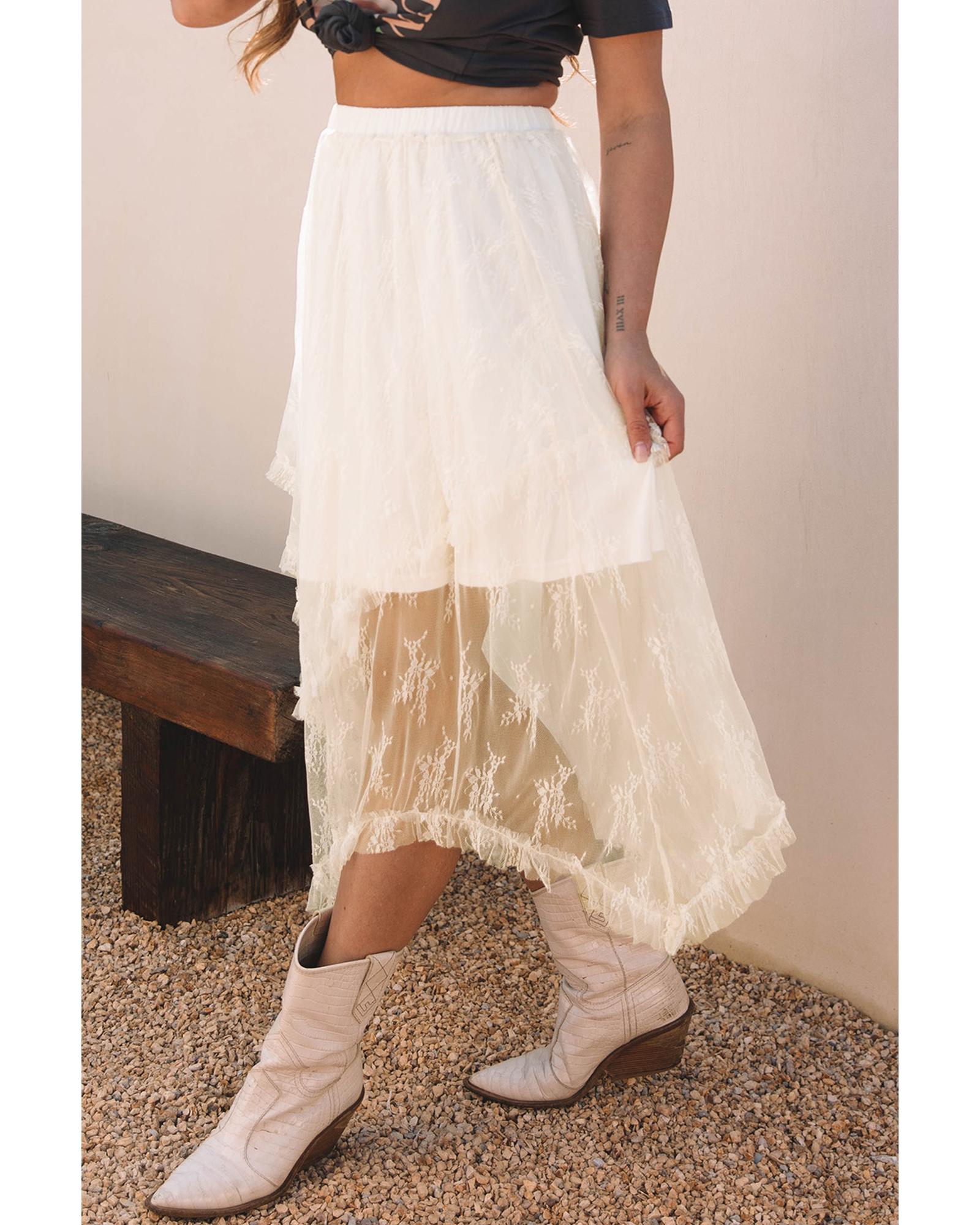 Beige Lace Cascading Tiered High Waist Maxi Skirt – XL