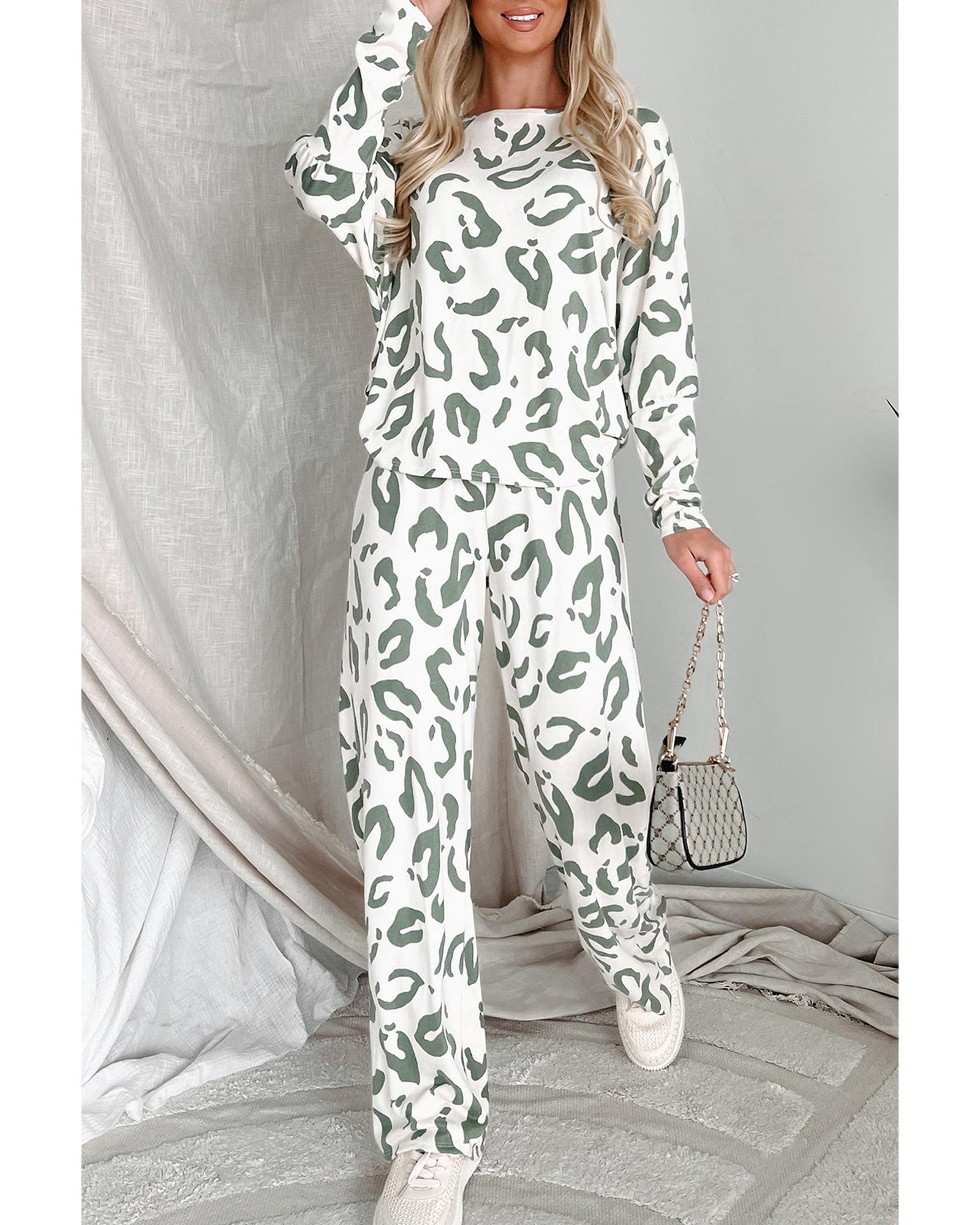 Beige Leopard Animal Print Long Sleeve and Pants Loungewear Set – S