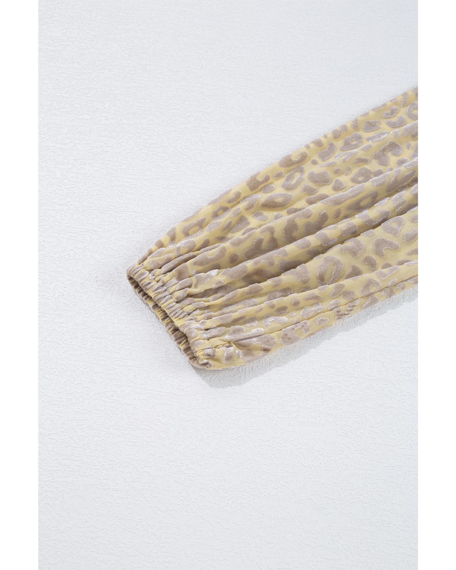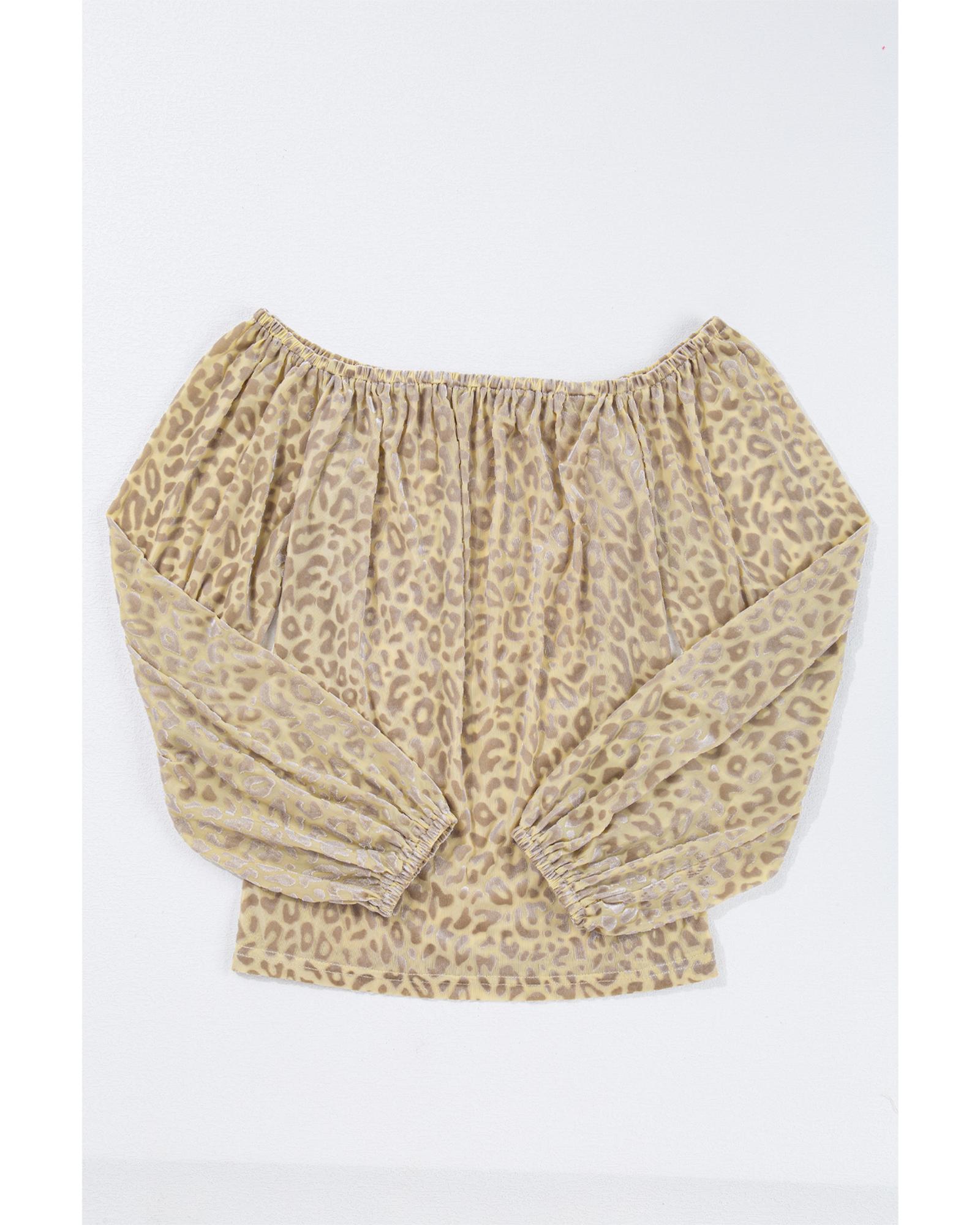 Beige Leopard Velvet Burnout Off Shoulder Long Sleeve Blouse – XL
