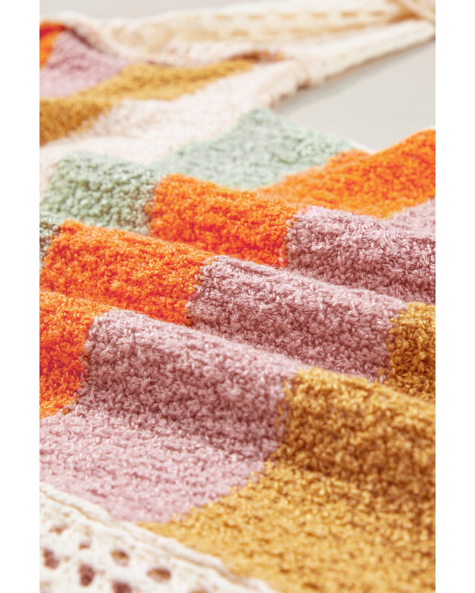 Beige Oversized Colorblock V Neck Hooded Sweater – M