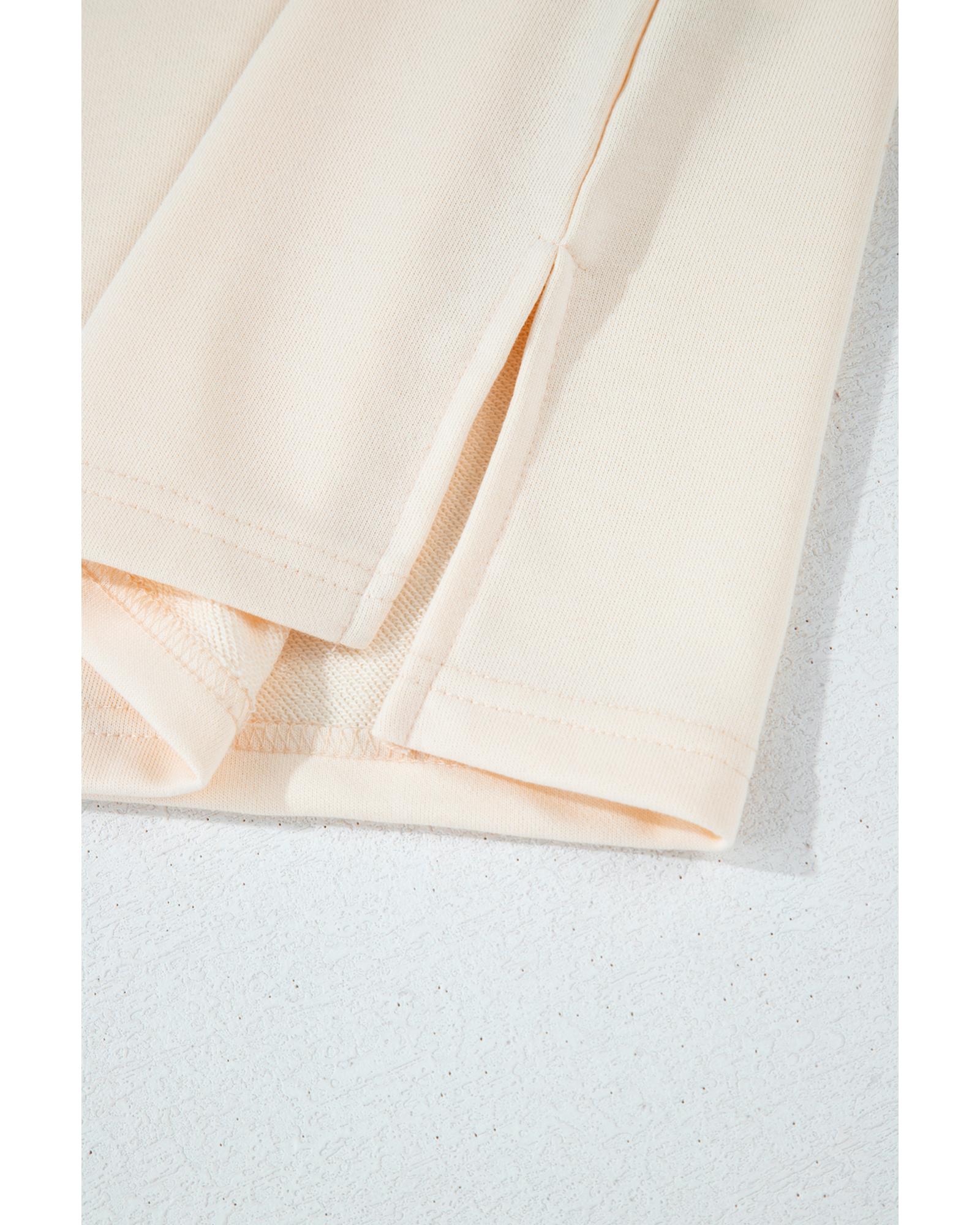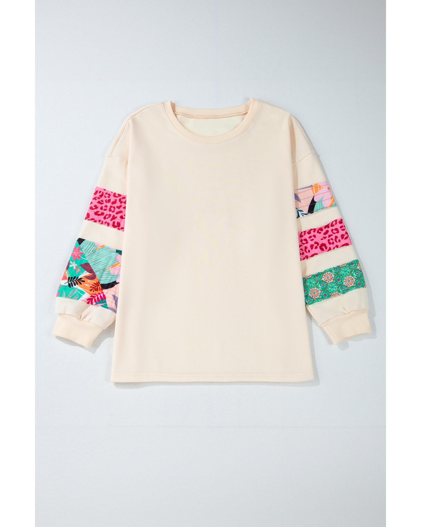 Beige Plus Size Printed Patchwork Sleeve Split Sweatshirt – 2X