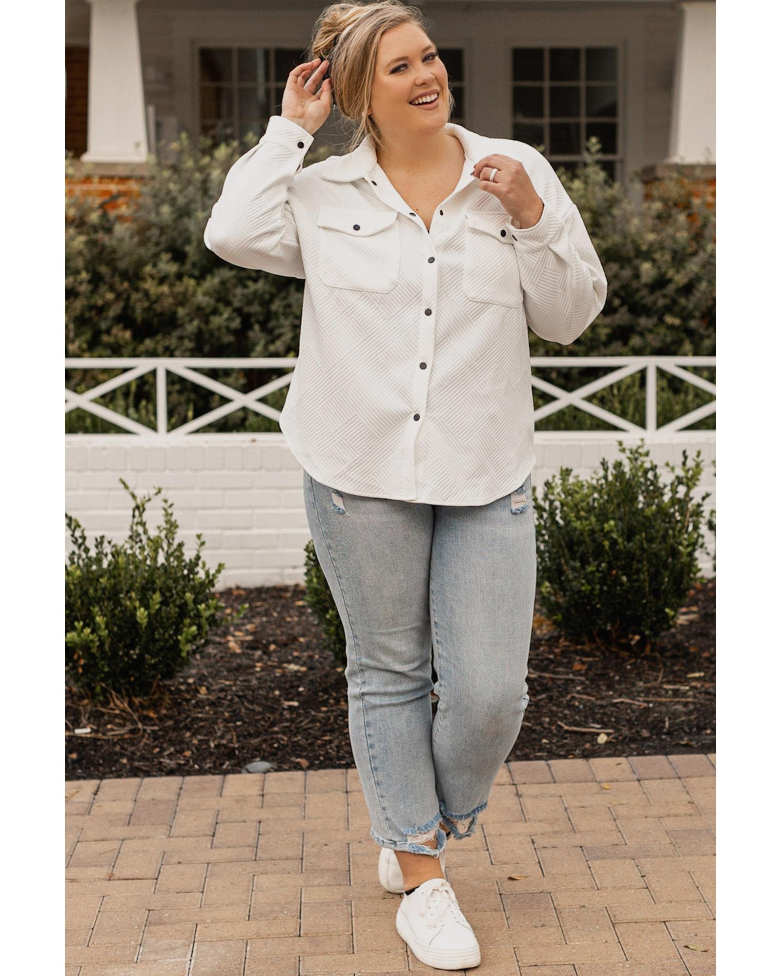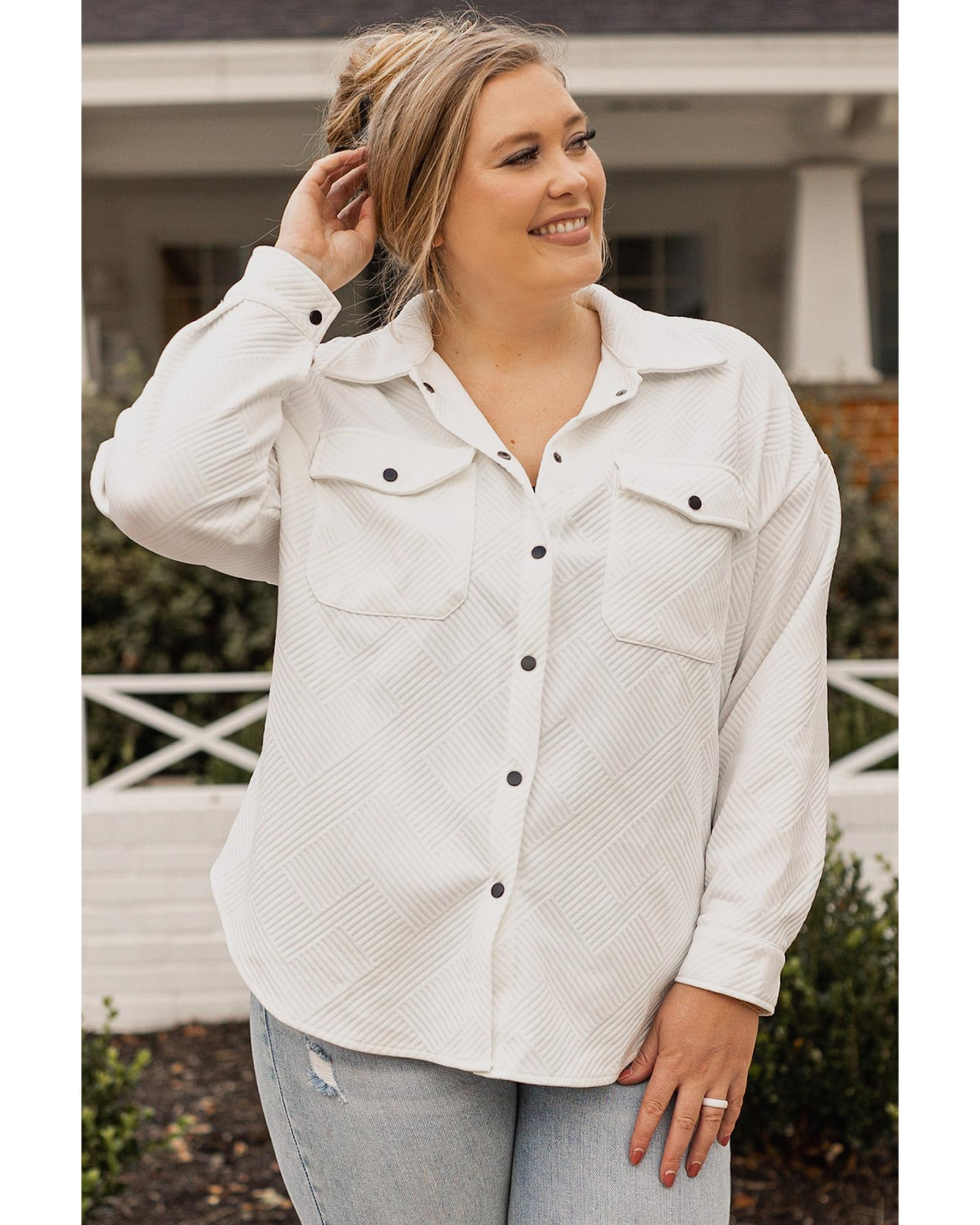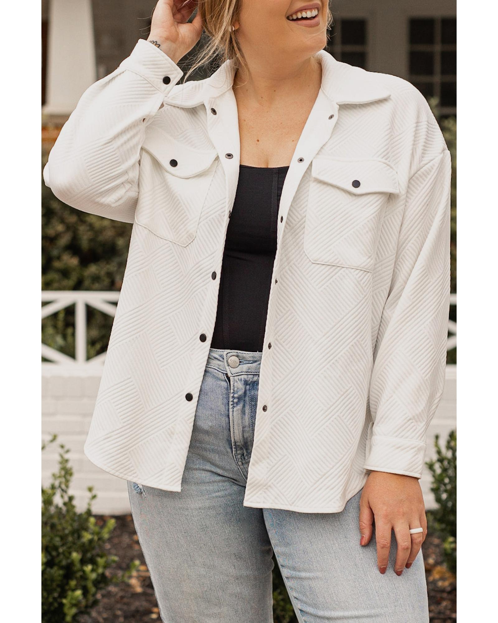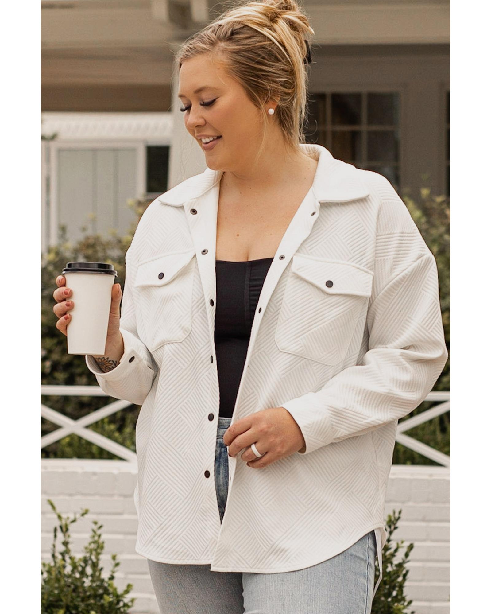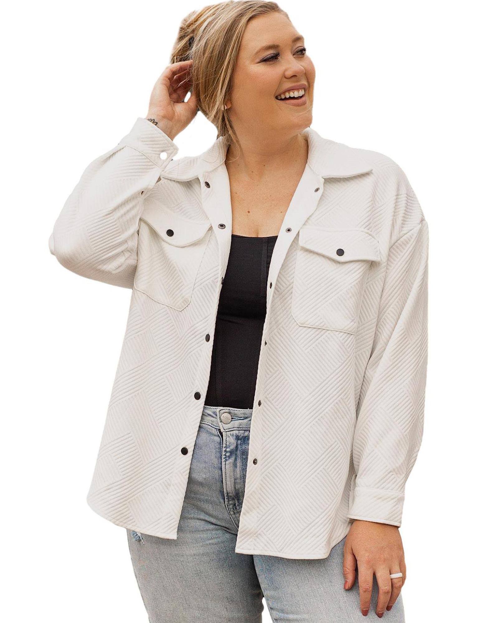 Beige Plus Size Textured Flap Pockets Jacket – 1X