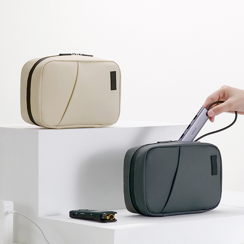 Beige Premium PU Leather Multi-Functional Travel Cable Organizer – Waterproof Digital Storage Pouch