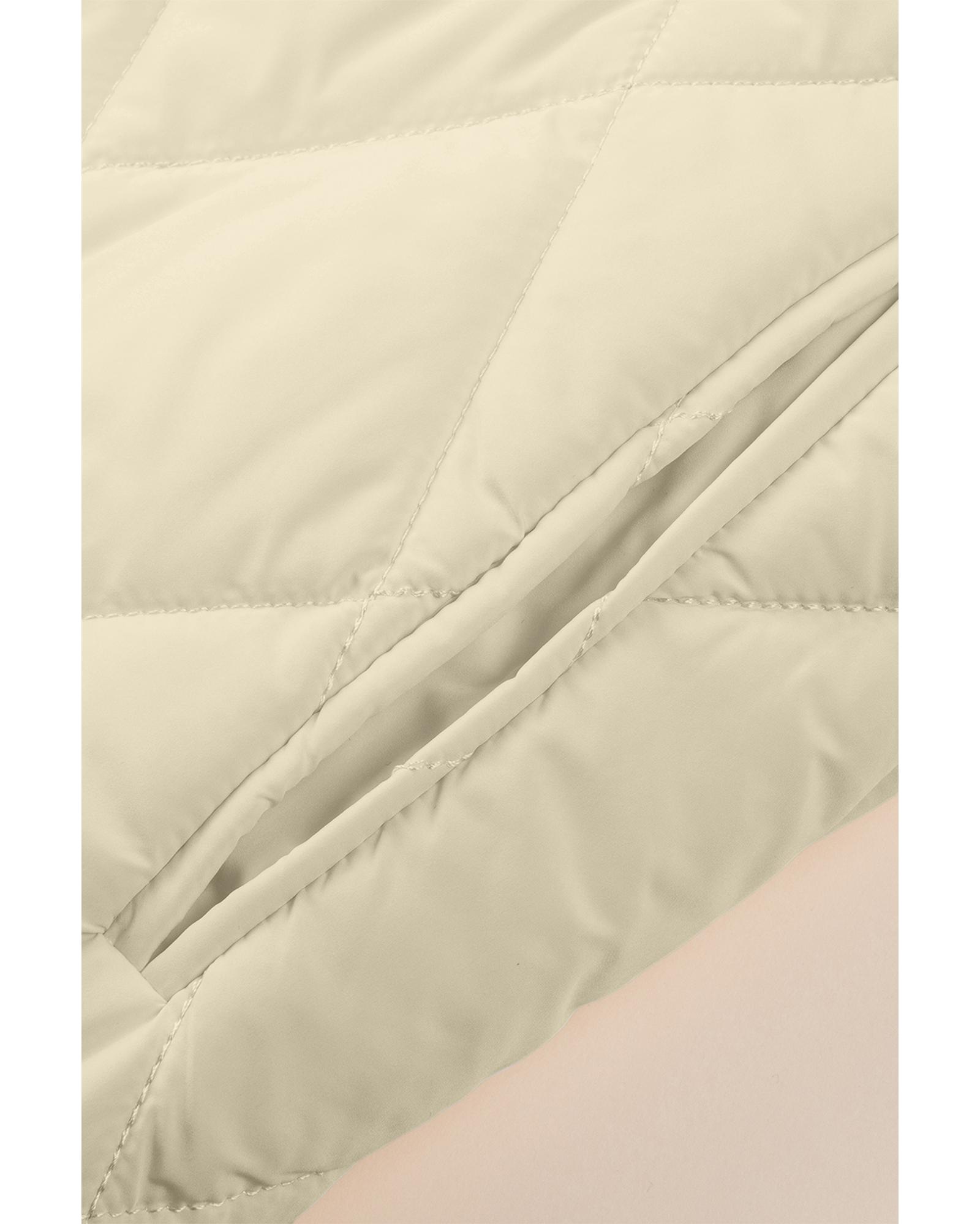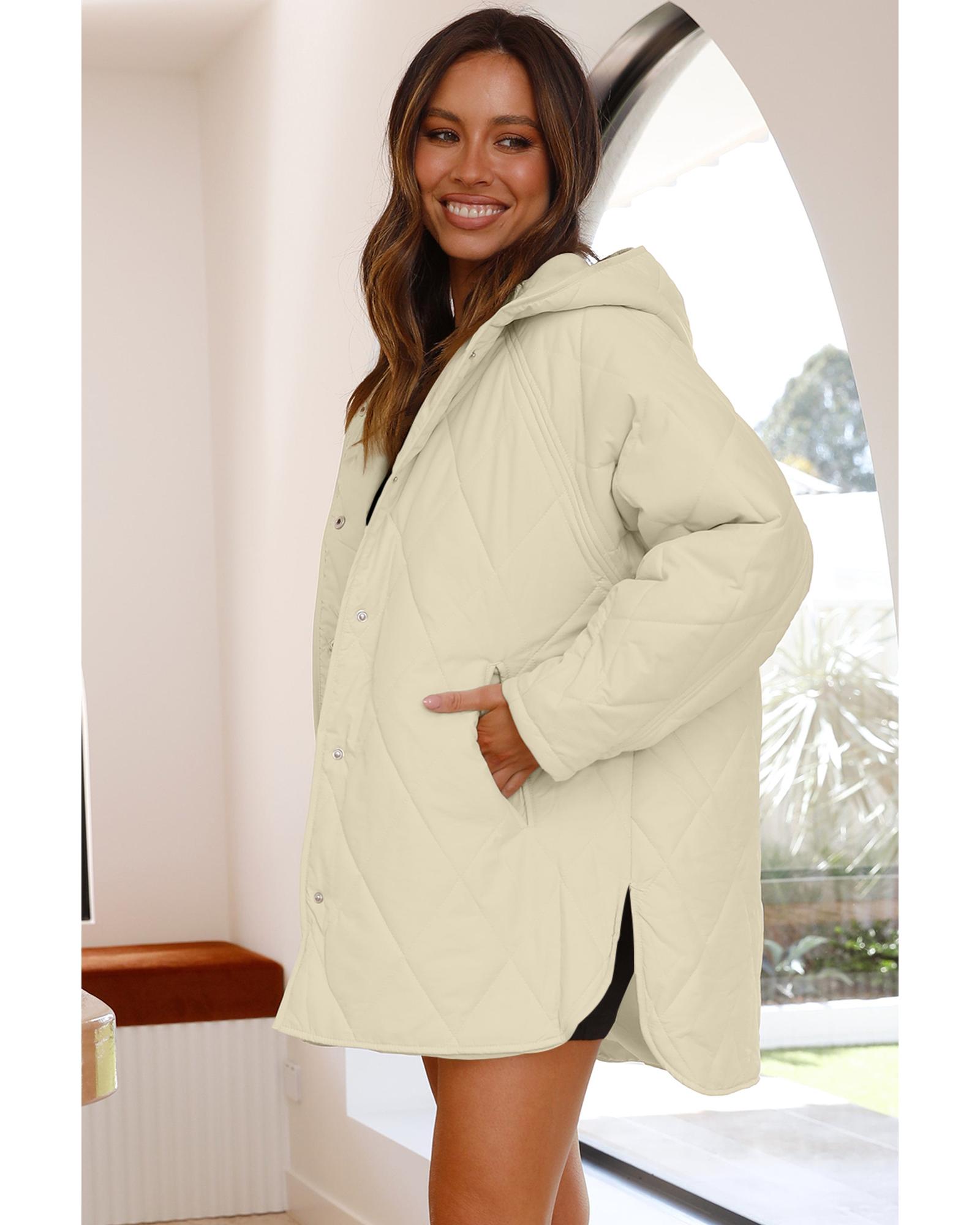 • Beige quilted snap button hooded coat
