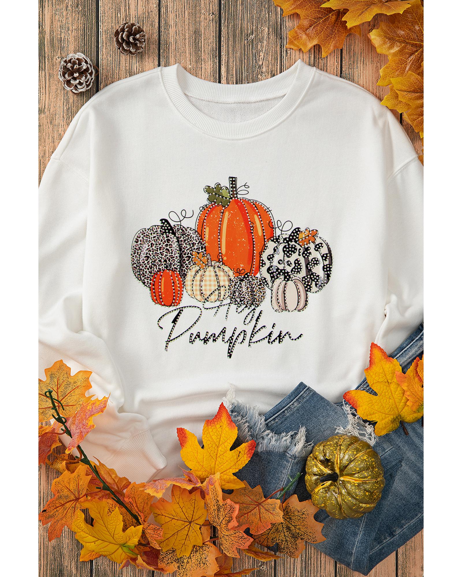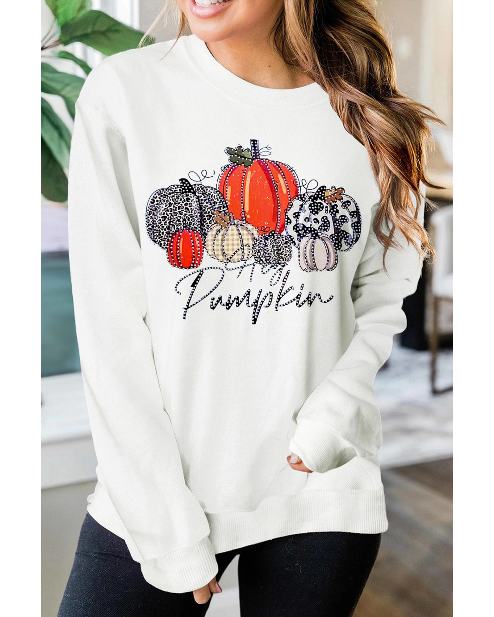 Beige Rhinestone Pumpkin Graphic Crewneck Thanksgiving Sweatshirt – 2XL