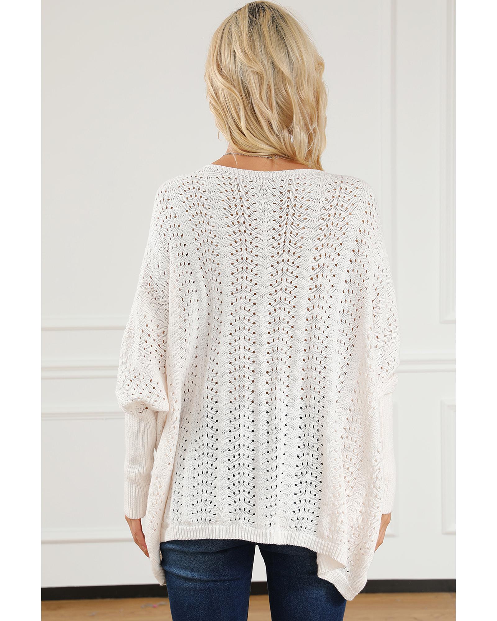 Beige Ribbed Hollow Knit Dolman Sleeve Sweater – M