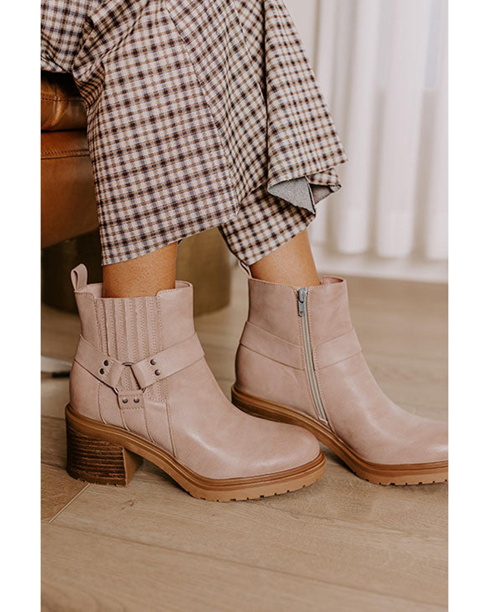 Beige Ring Linked Zipper Chunky Heel Ankle Boots – 37 EU