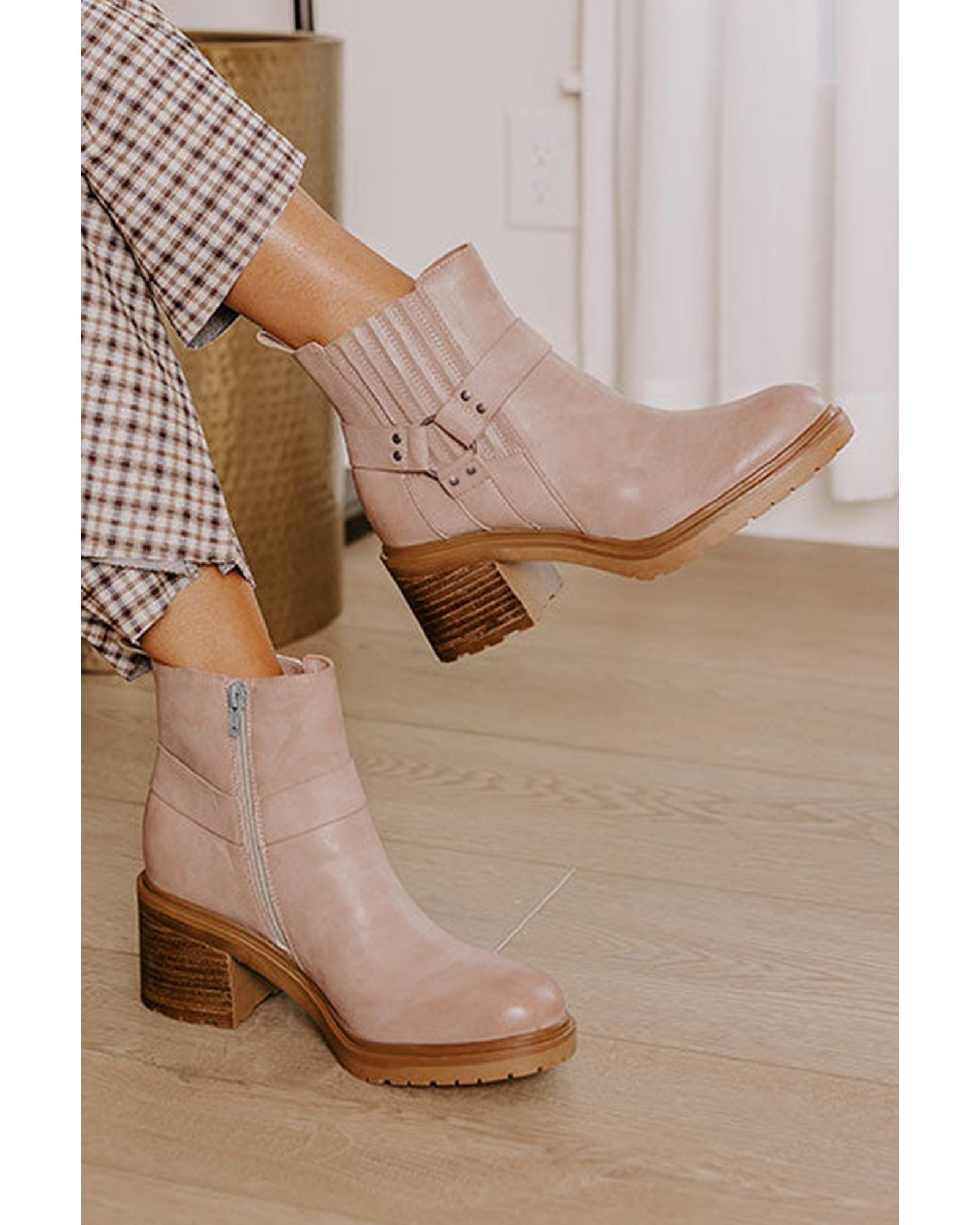 Beige Ring Linked Zipper Chunky Heel Ankle Boots – 38 EU