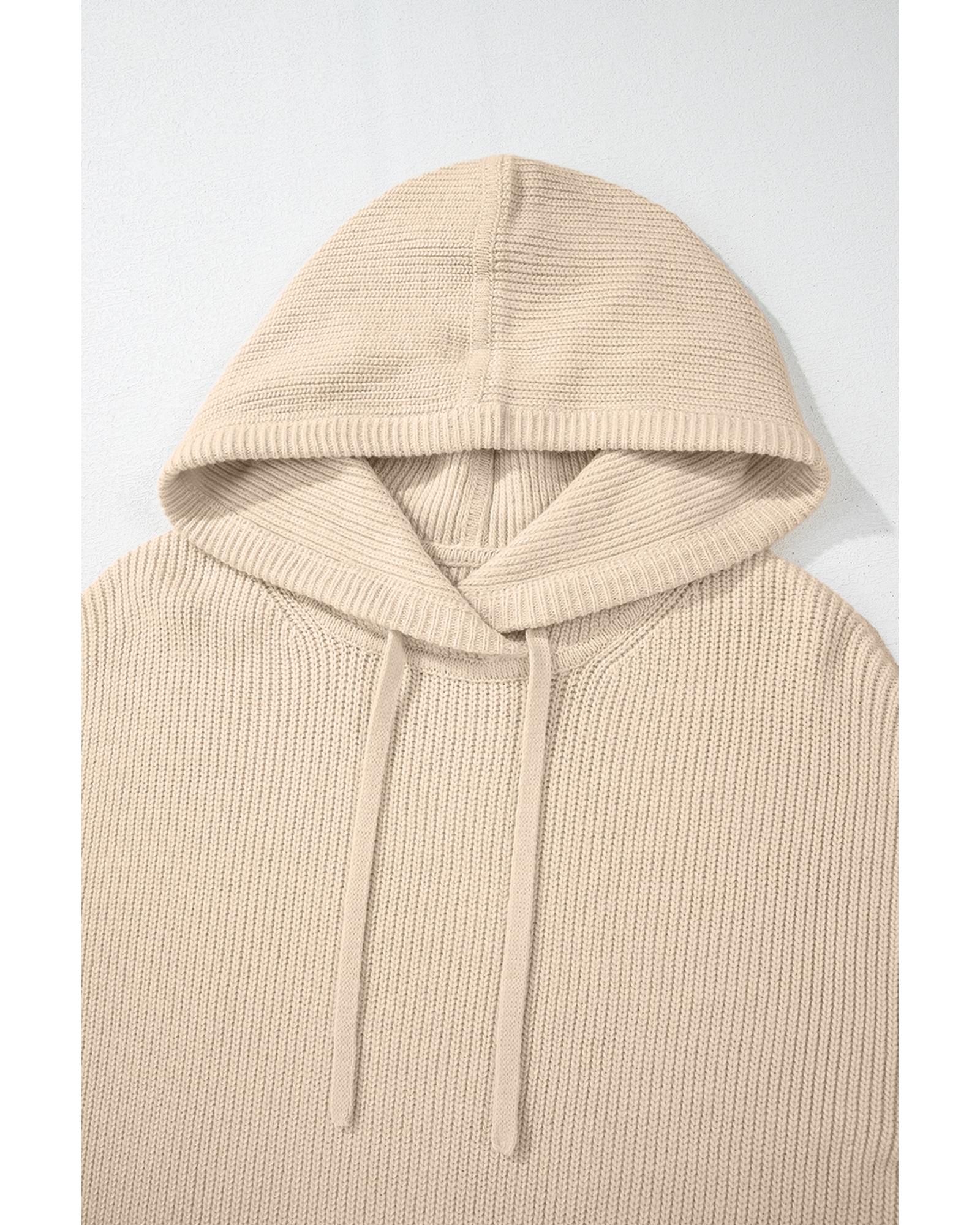 Beige Solid Color Drawstring Hooded Drop Shoulder Pullover Sweater – XL