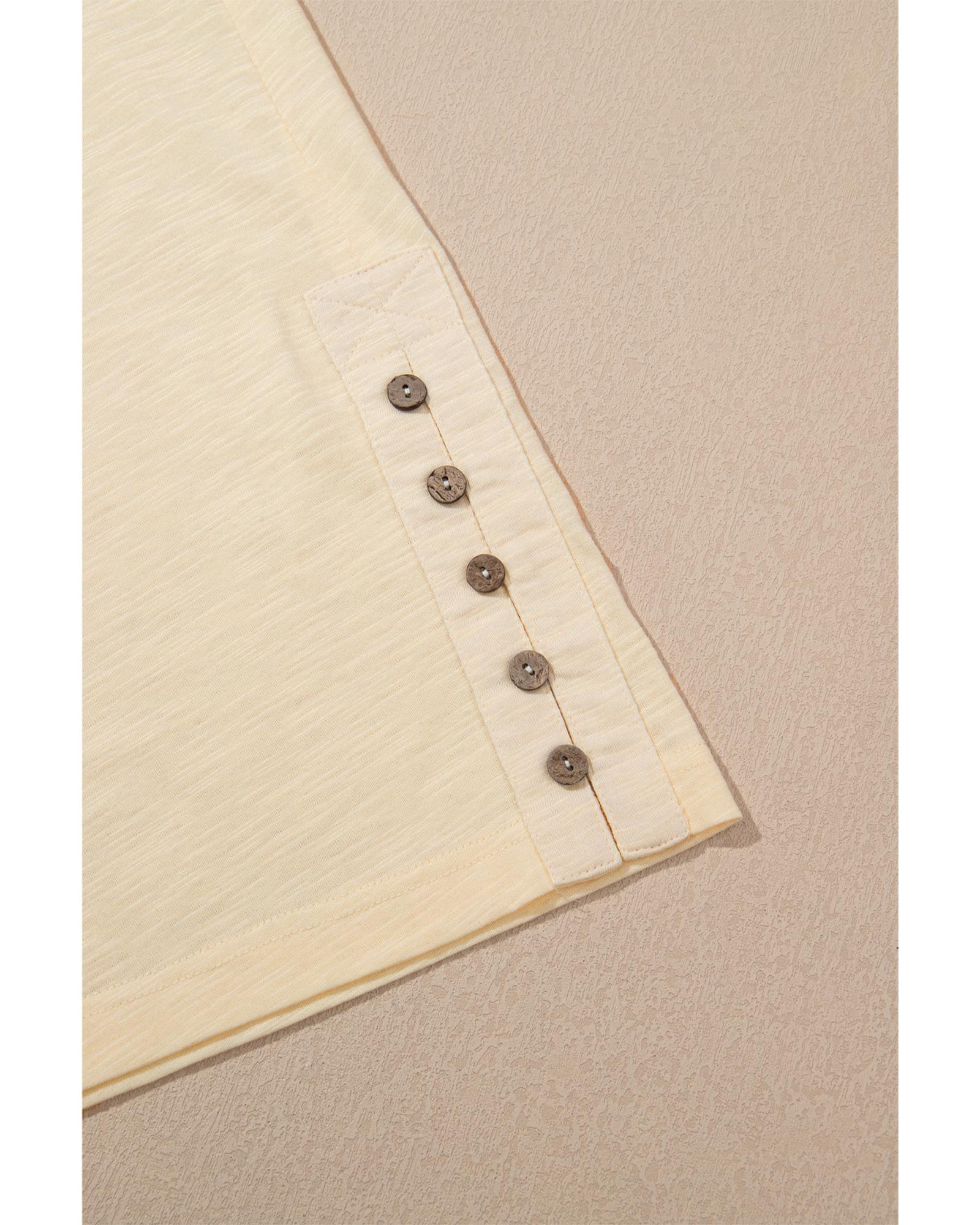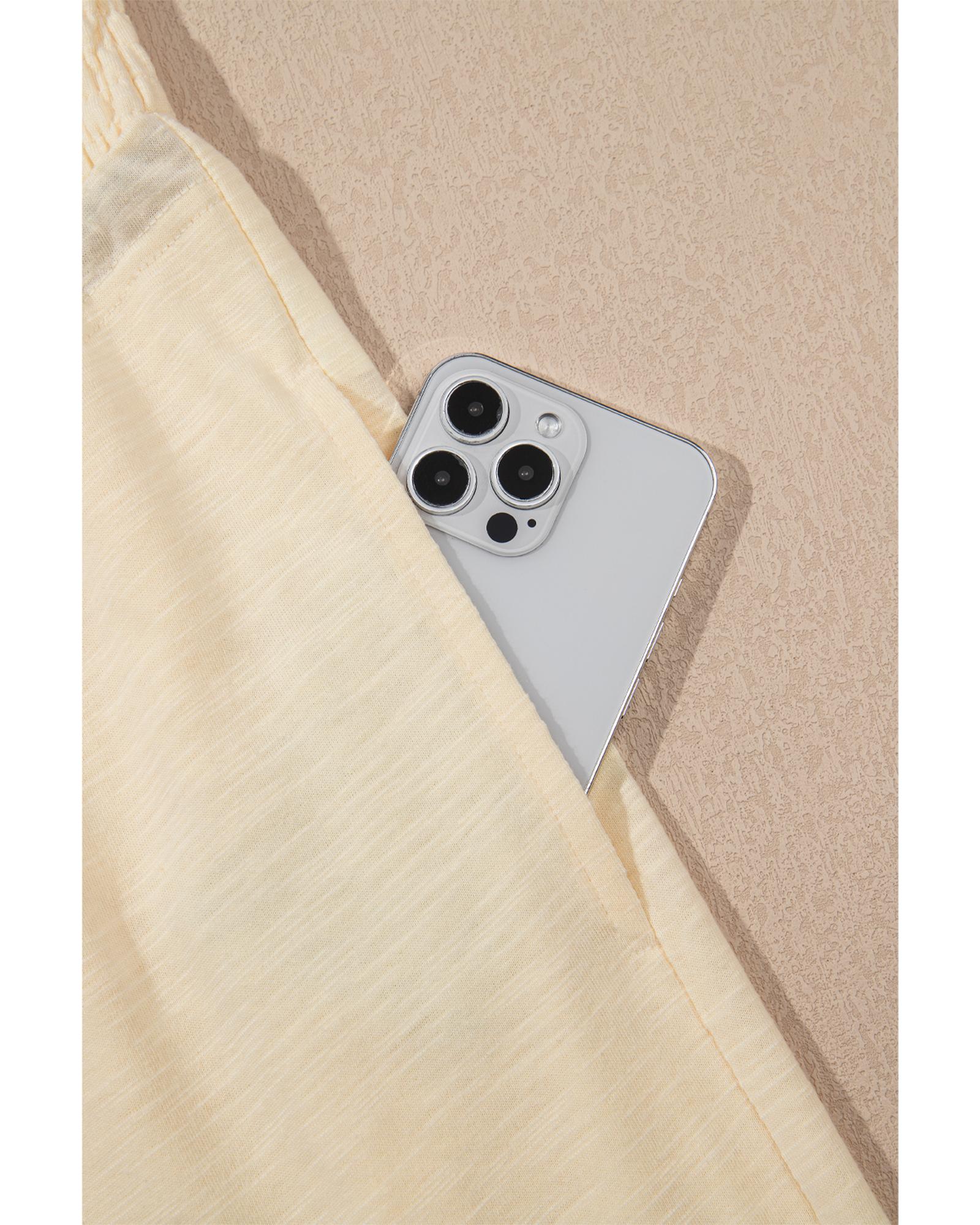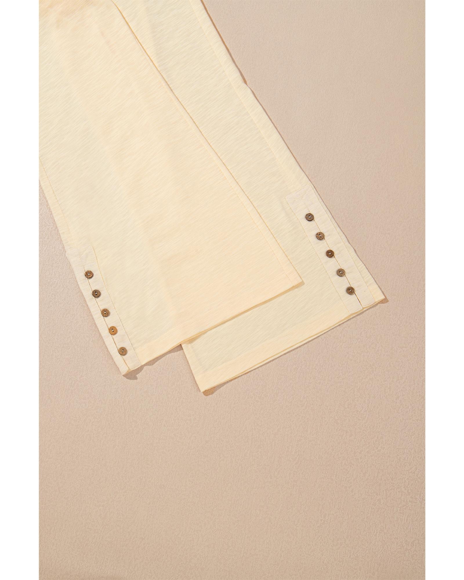 Beige Solid Color Tank Top and Smocked Waist Pants Set – L