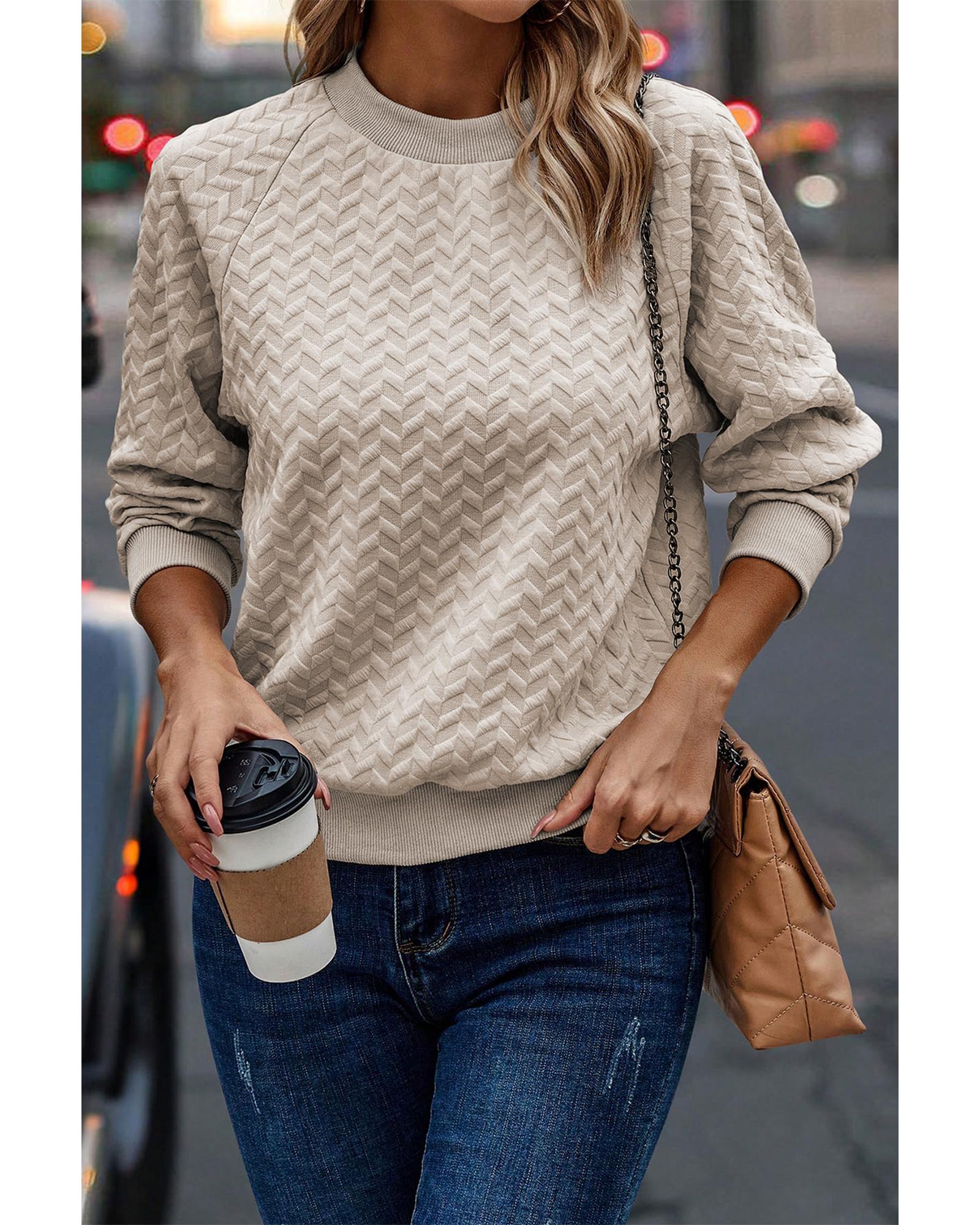 Beige Solid Textured Raglan Sleeve Pullover Sweatshirt – XL
