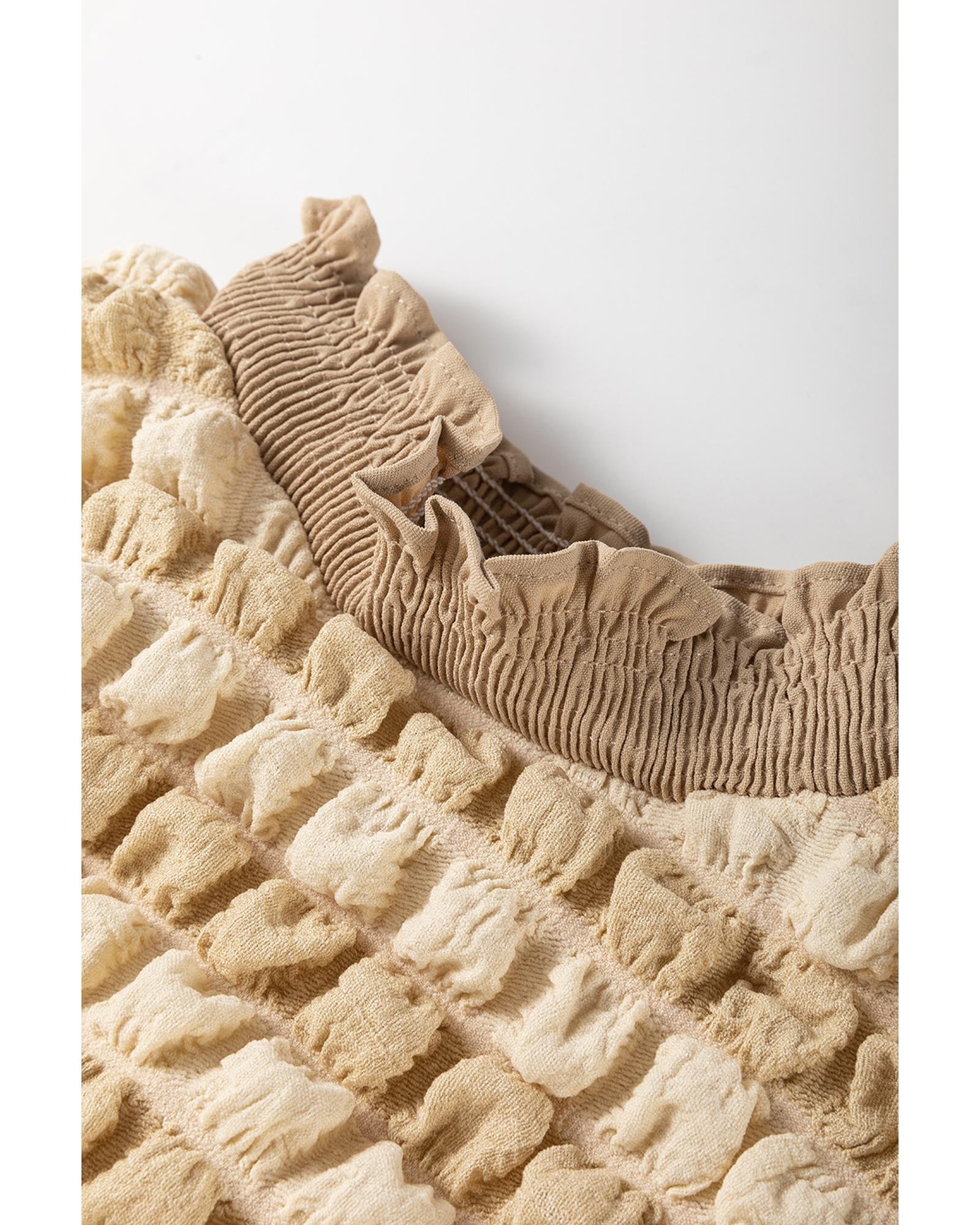 Beige Textured Mock Neck Short Sleeve Blouse – L